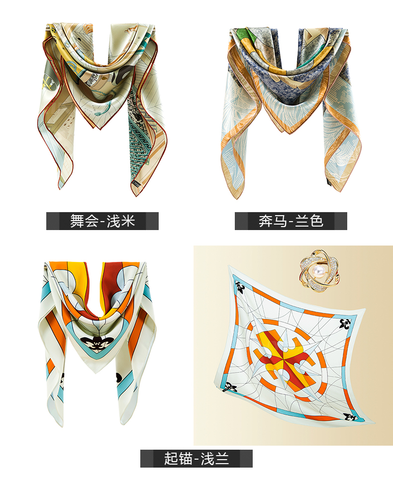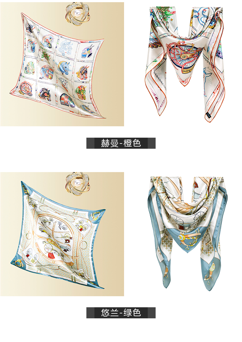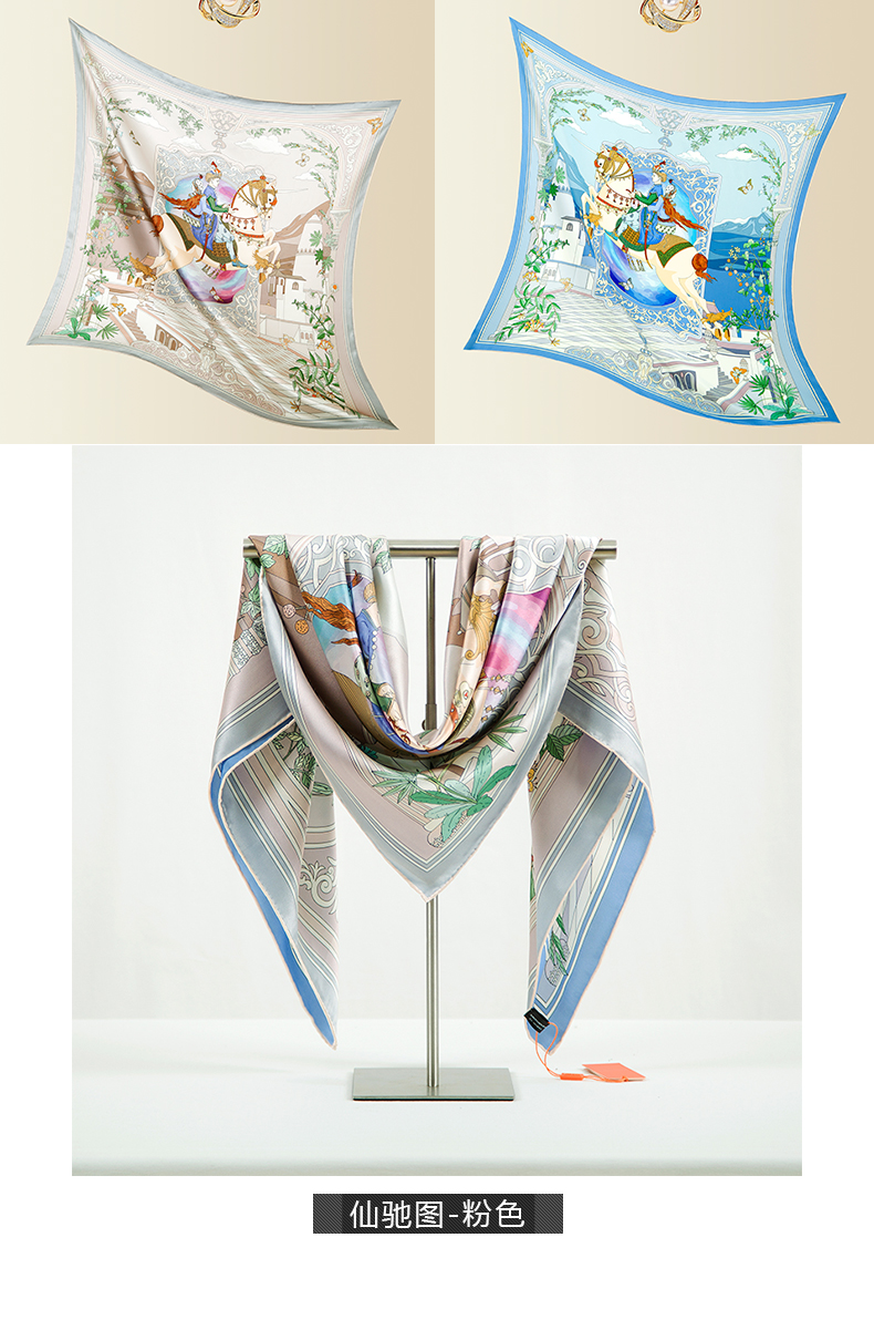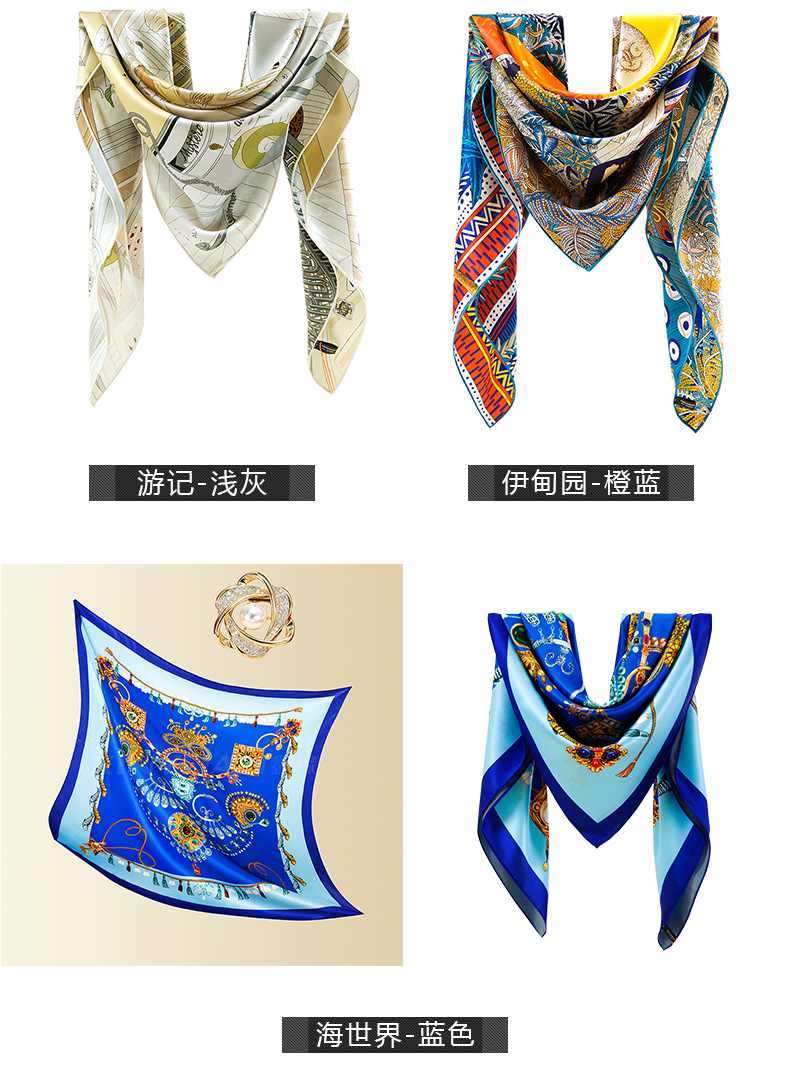 高端真丝双面喷绘方巾 GD0016