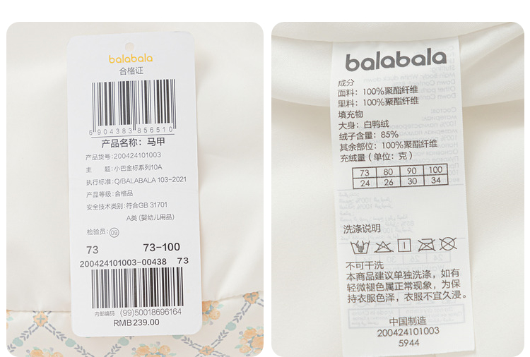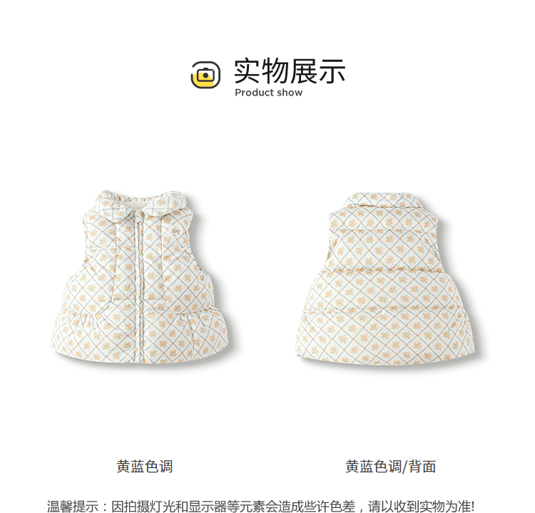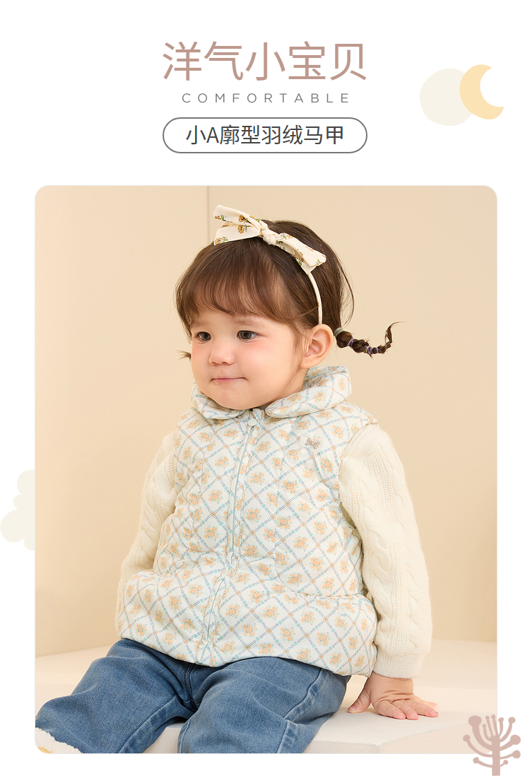 巴拉巴拉宝宝马甲外穿冬装女童背心羽绒服保暖小A版型甜美可爱萌