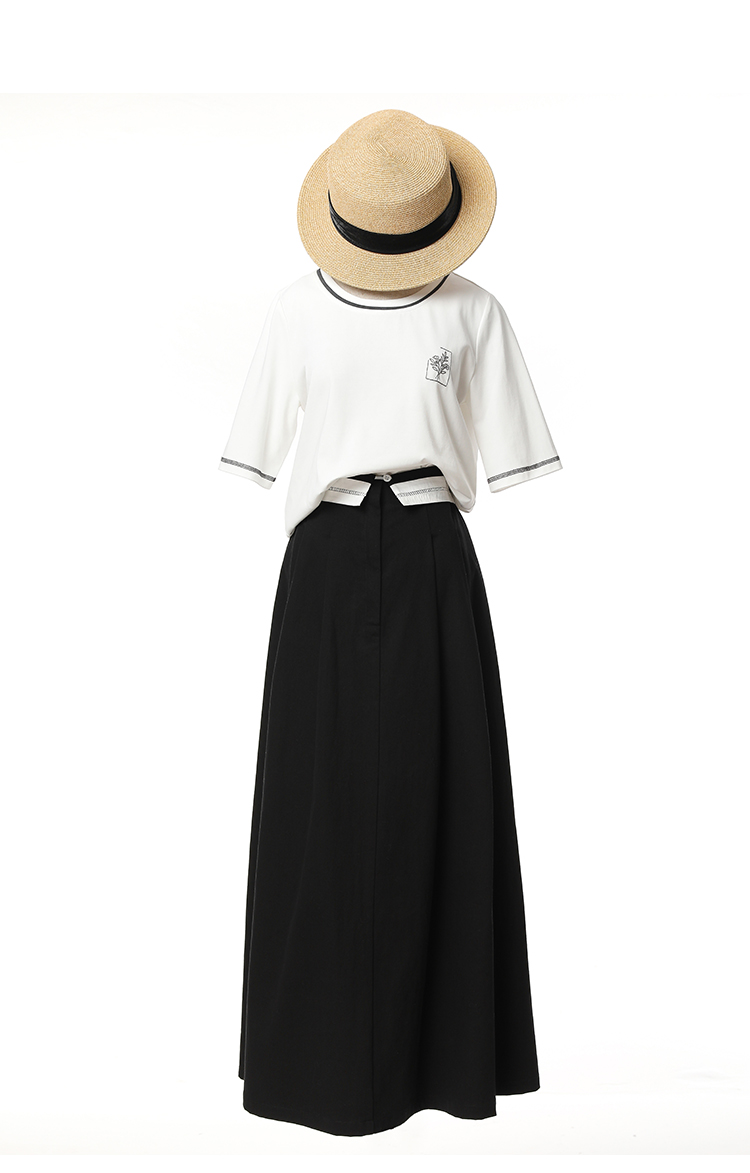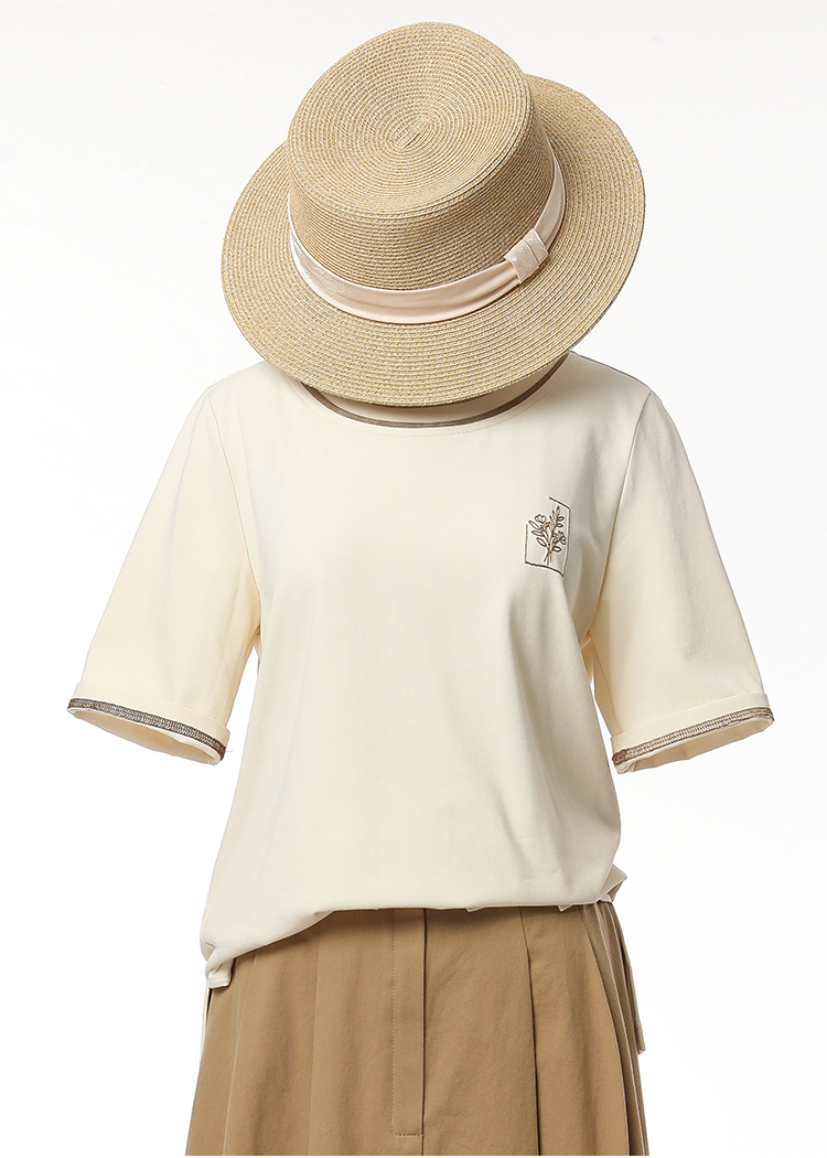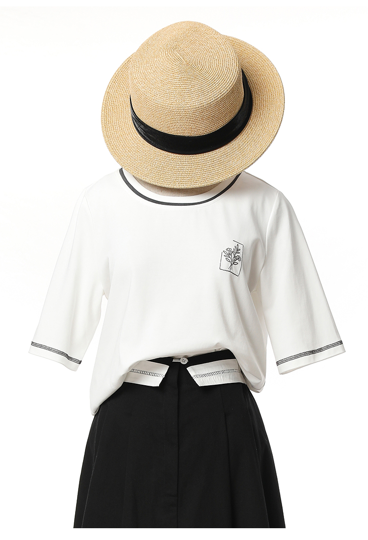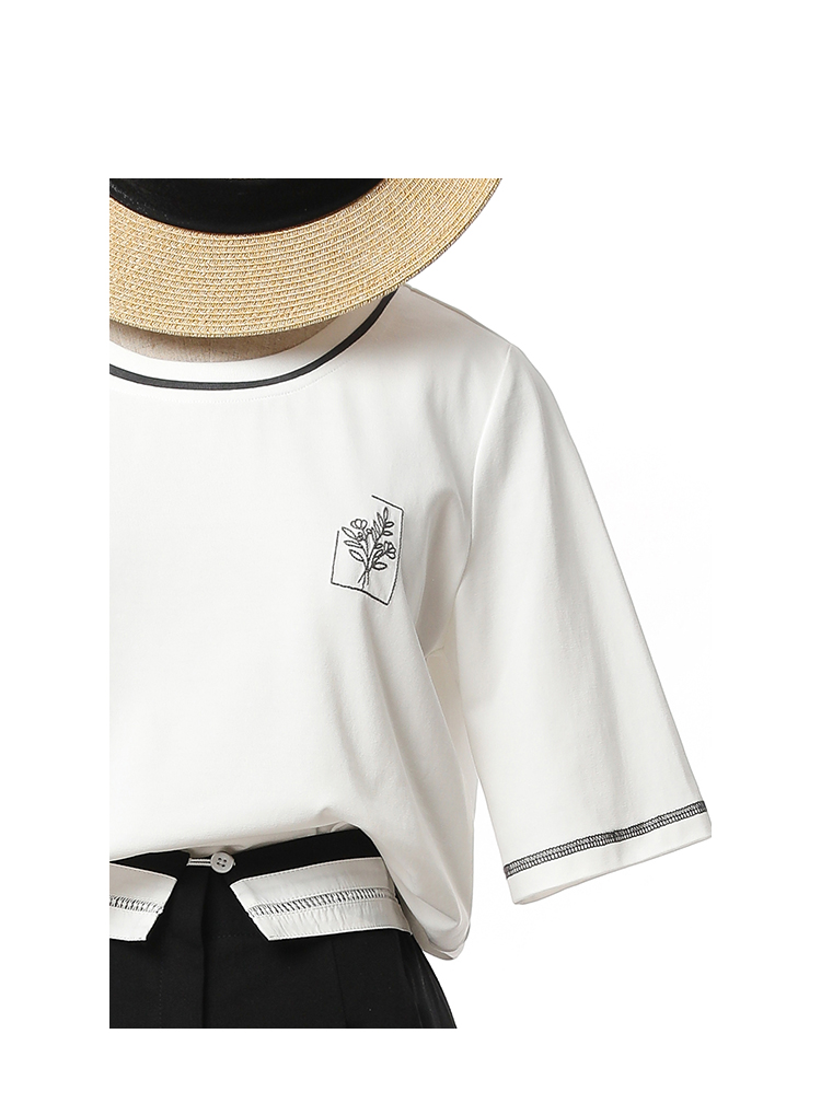 Famecoco范可儿短袖T恤女夏季刺绣撞色上衣FAC3BB001