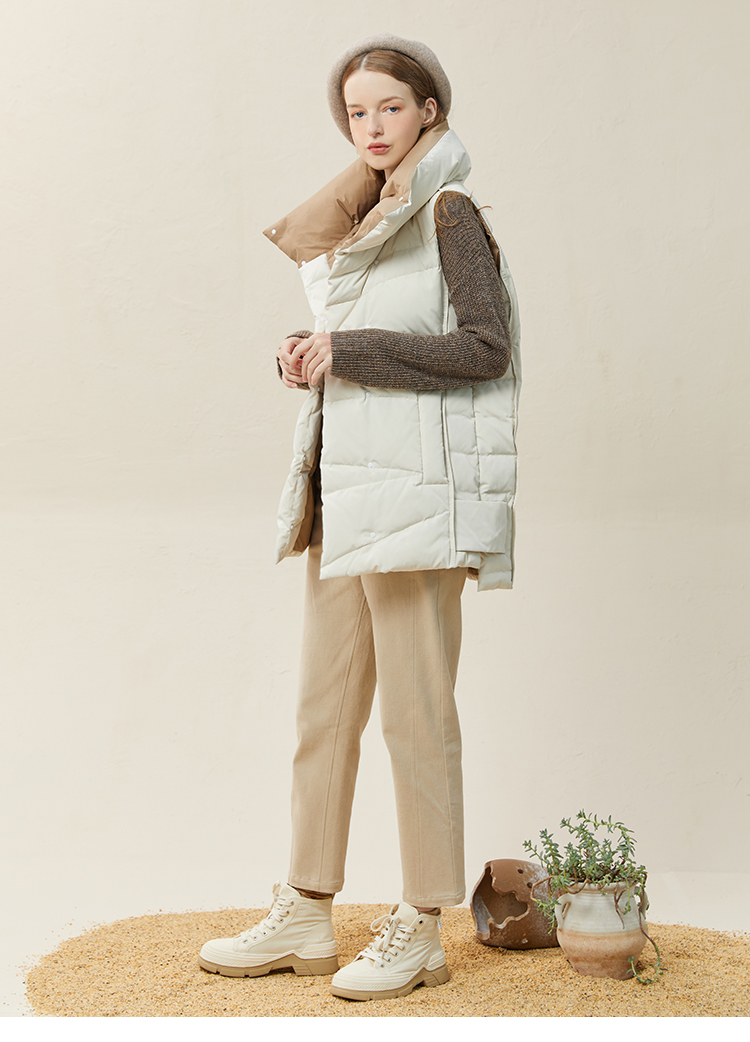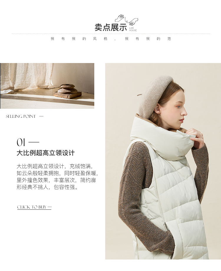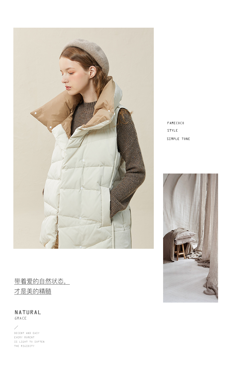 Famecoco范可儿羽绒马甲女短款白鸭绒羽绒服轻薄外套女F228CA006