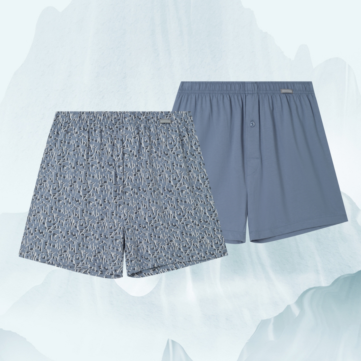 【平纹全棉阿罗裤】SCHIESSER德国舒雅BOXER(2条装)全棉平纹布面料,灰白几何纹样错位穿插印花和素色双包装搭配39/22603X