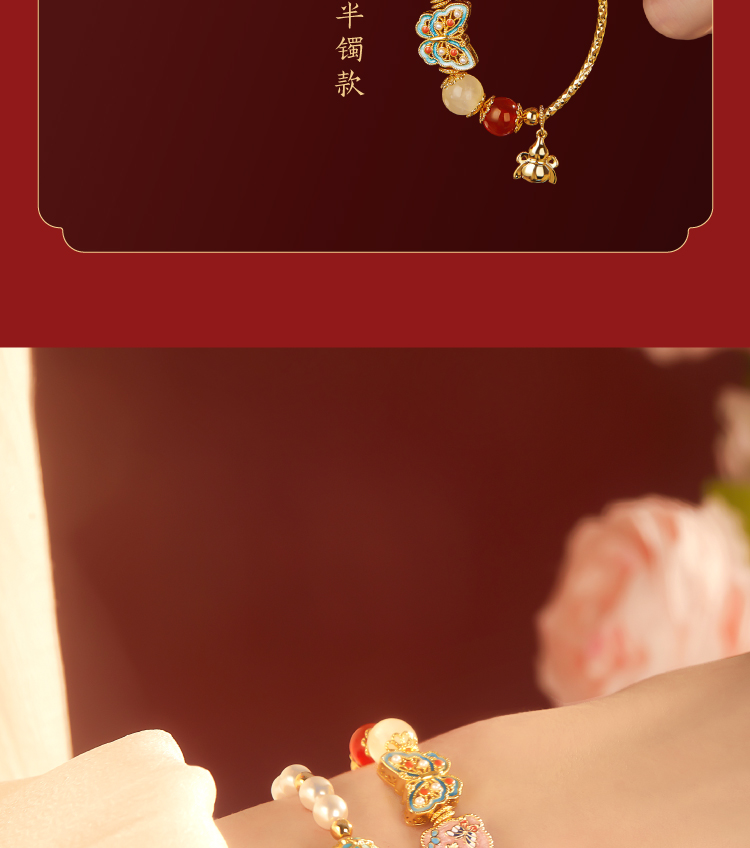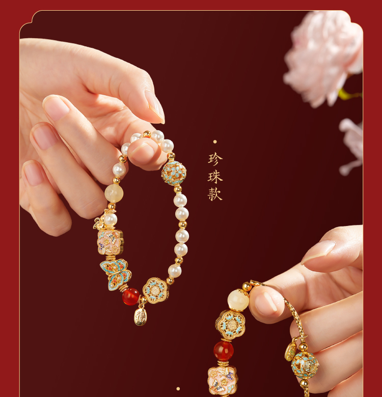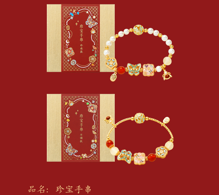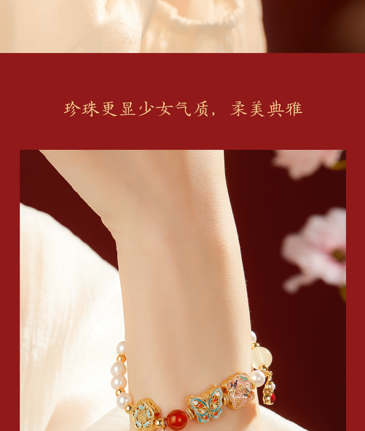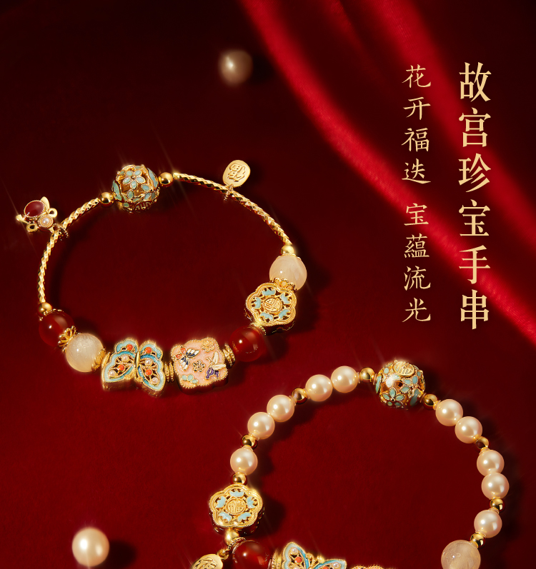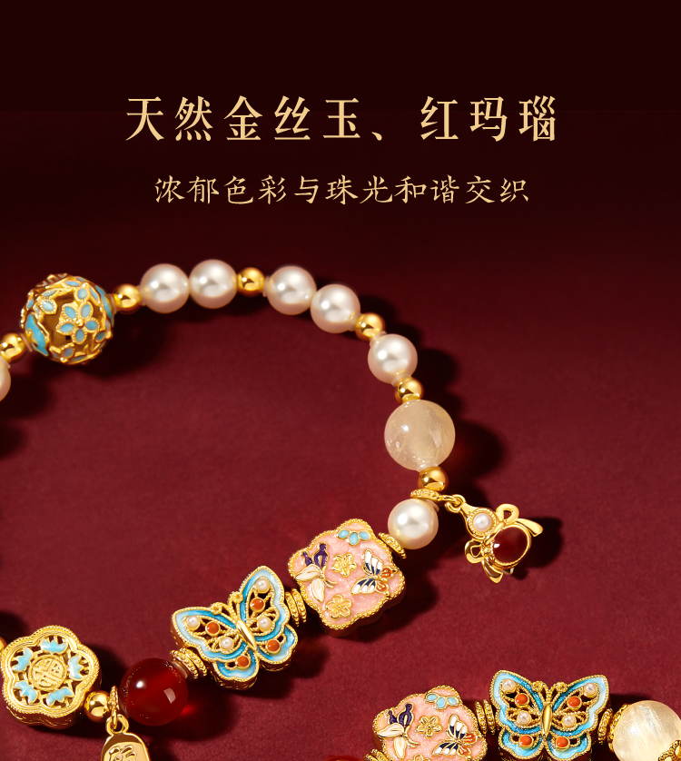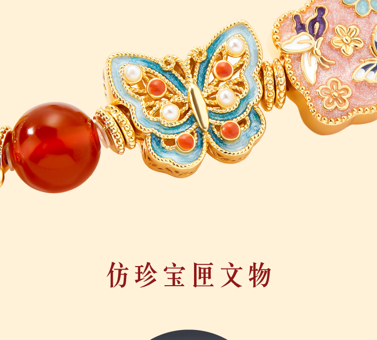 【故宫饰品】珍宝珍珠蝴蝶点翠手链红玛瑙手镯本命年新年生日礼物