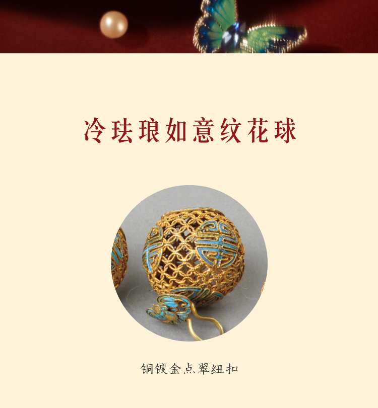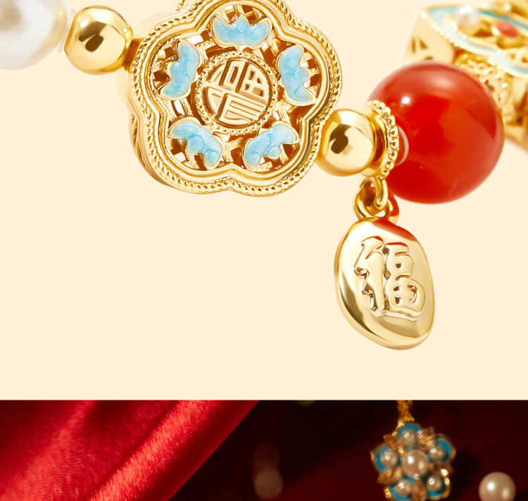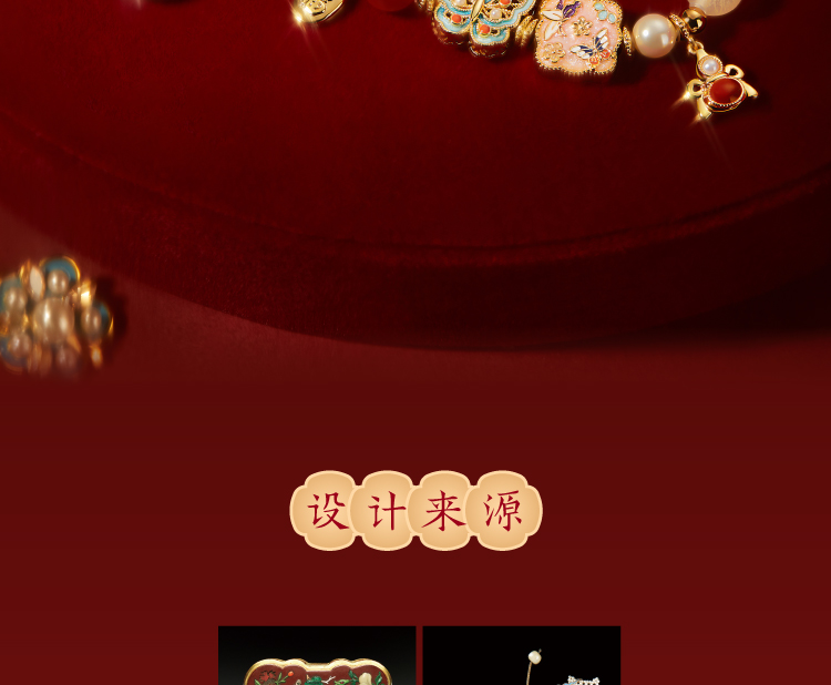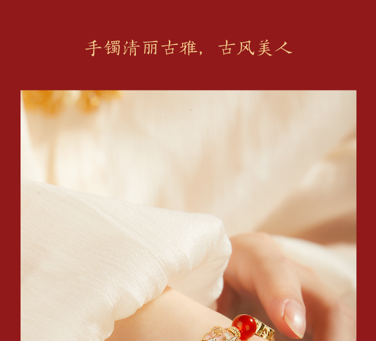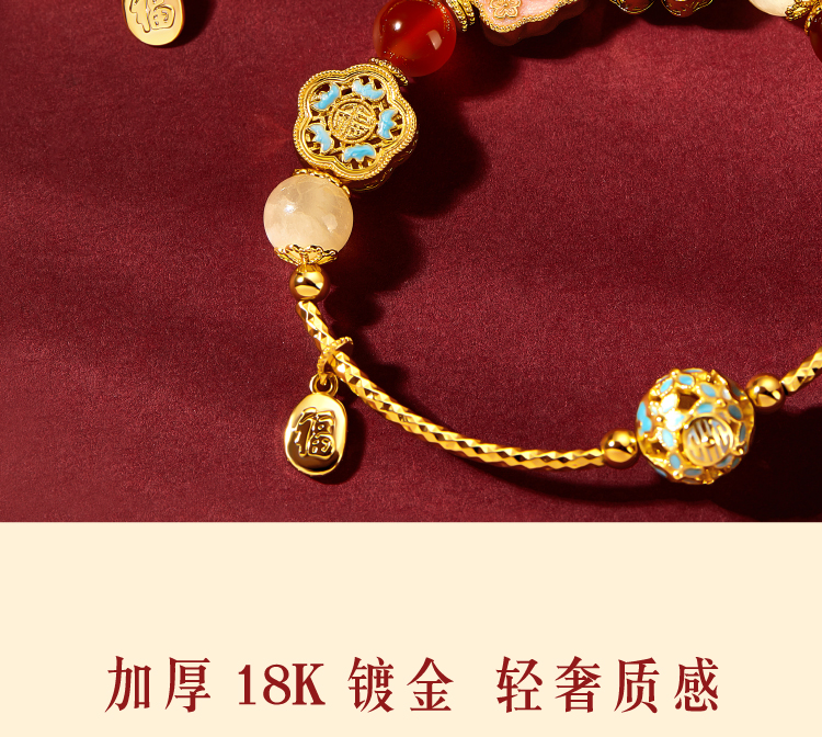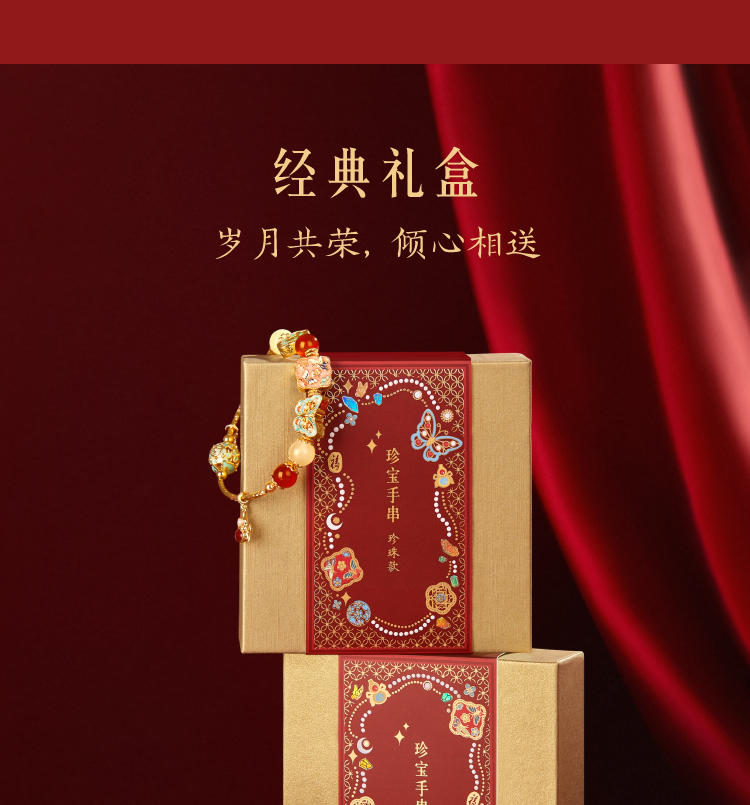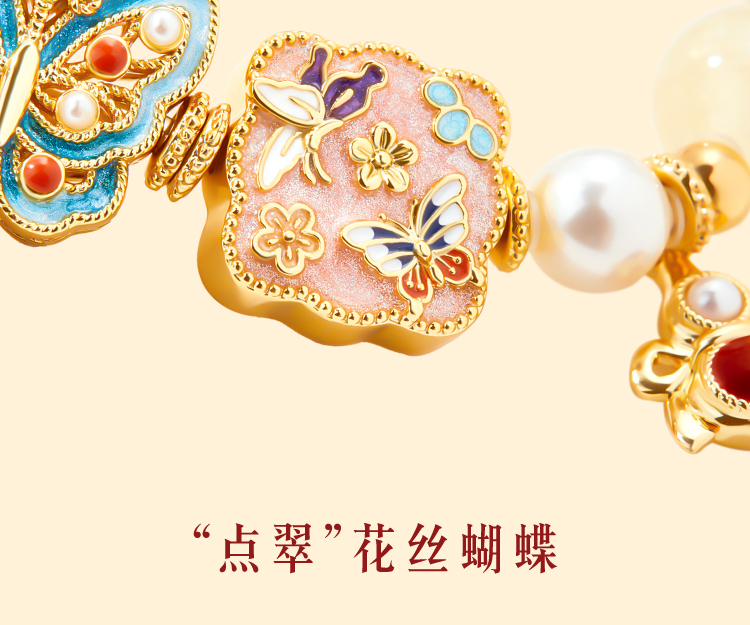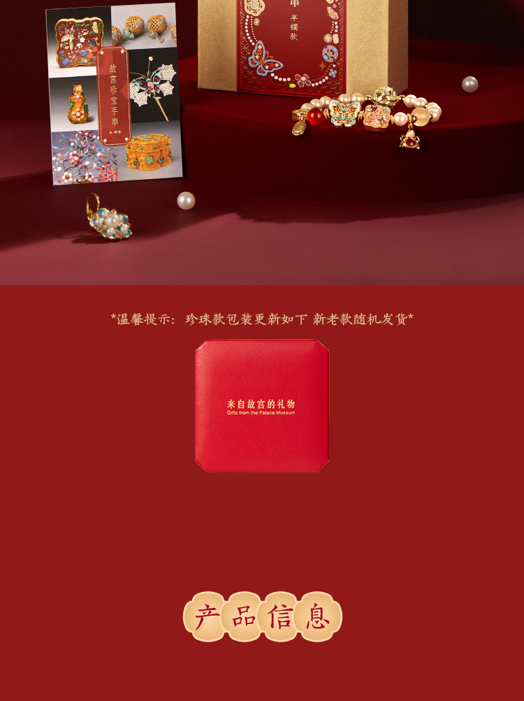 【故宫饰品】珍宝珍珠蝴蝶点翠手链红玛瑙手镯本命年新年生日礼物