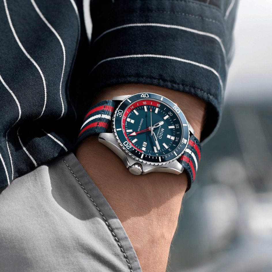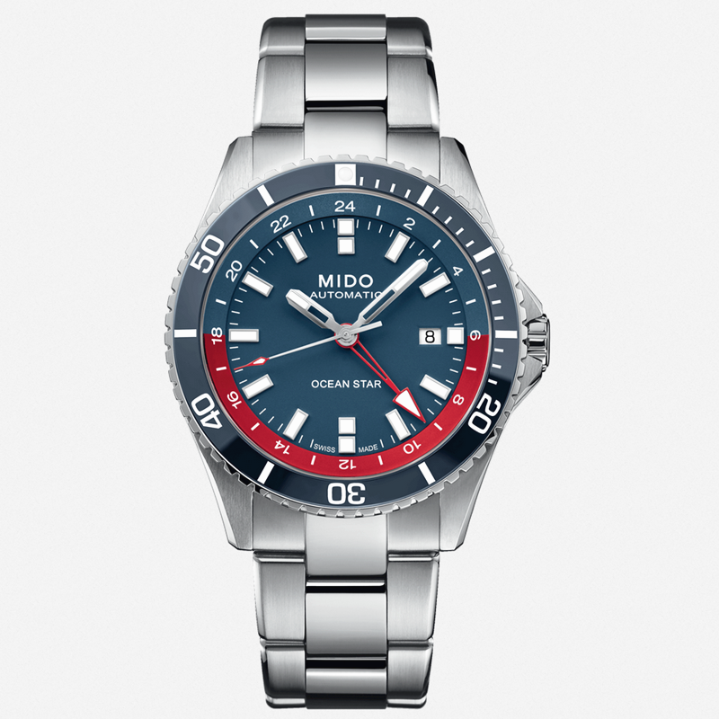 镜面 材质 | 蓝宝石水晶玻璃 | 表盘 | 丝光打磨不锈钢表壳,搭配陶瓷环丝光打磨单向旋转表圈 蓝色表盘立体镶嵌刻度日期窗位于3点钟位置 双时区显示 不透底 |