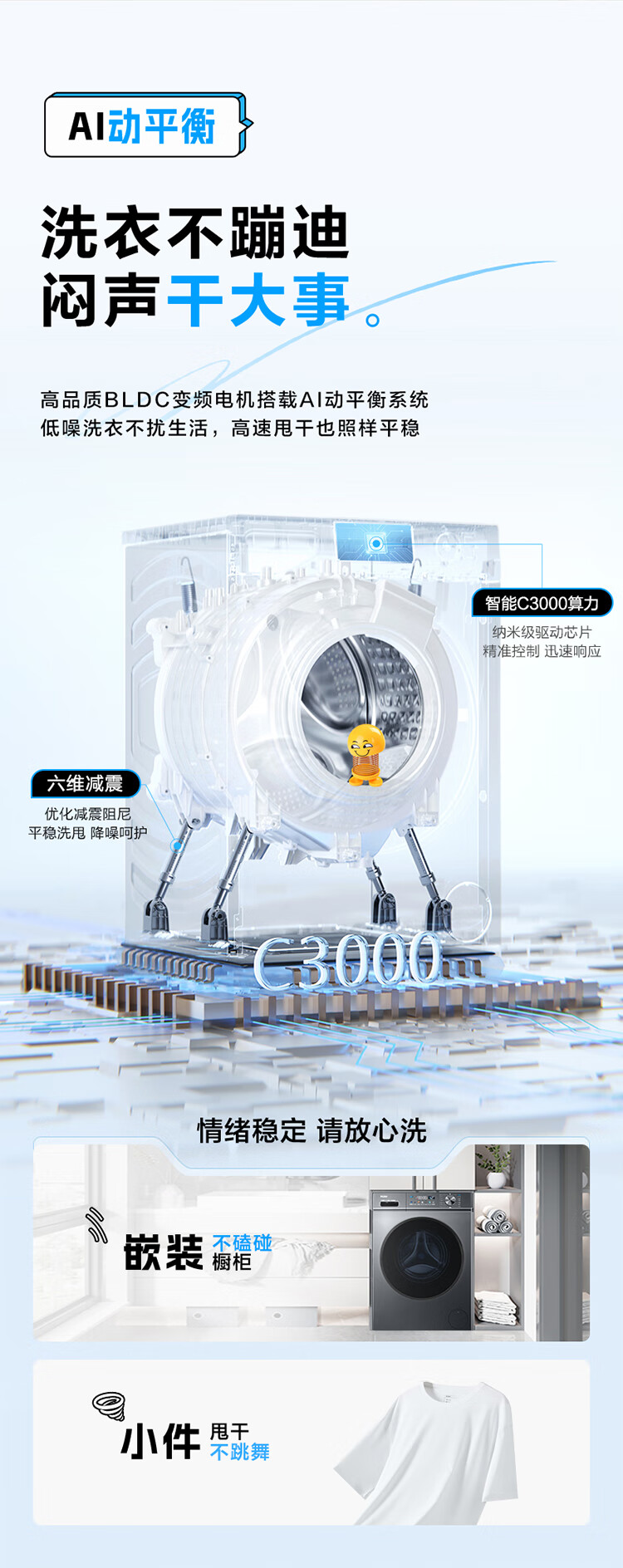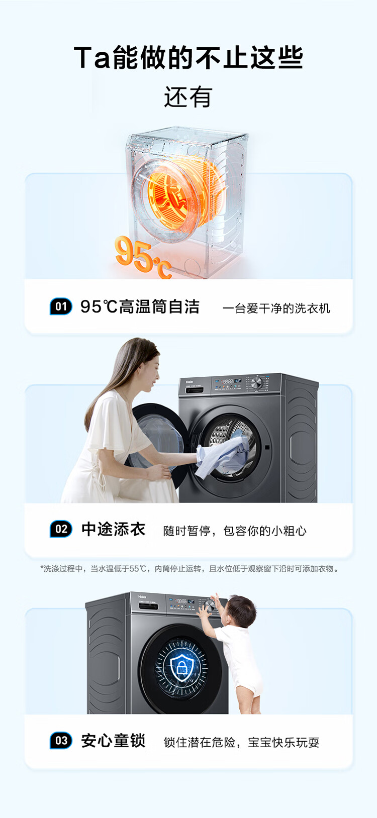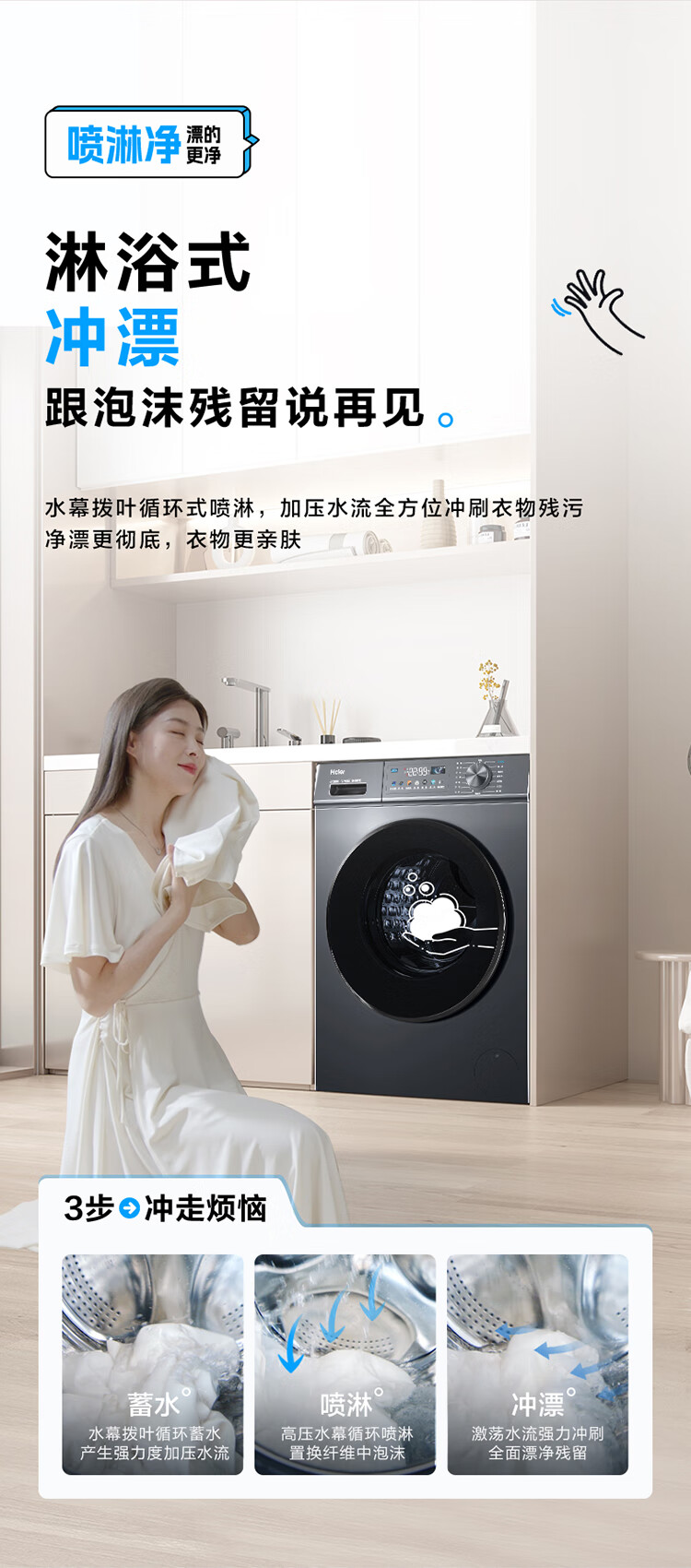 海尔(Haier) 10公斤 滚筒洗衣机 562mm超薄 1.1洗净比 喷淋漂洗 边喷边洗 智能投放 中途添衣 高温桶自洁 EG100PRO67S