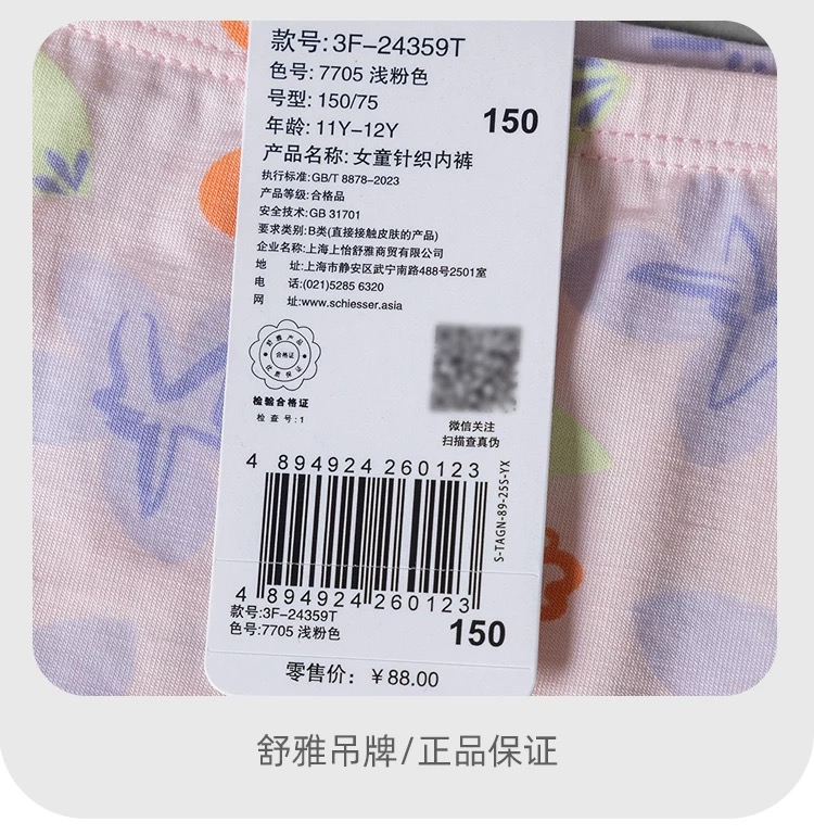 SCHIESSER德国舒雅儿童女童夏日海洋系列莫代尔面料平角小裤3F/24346T