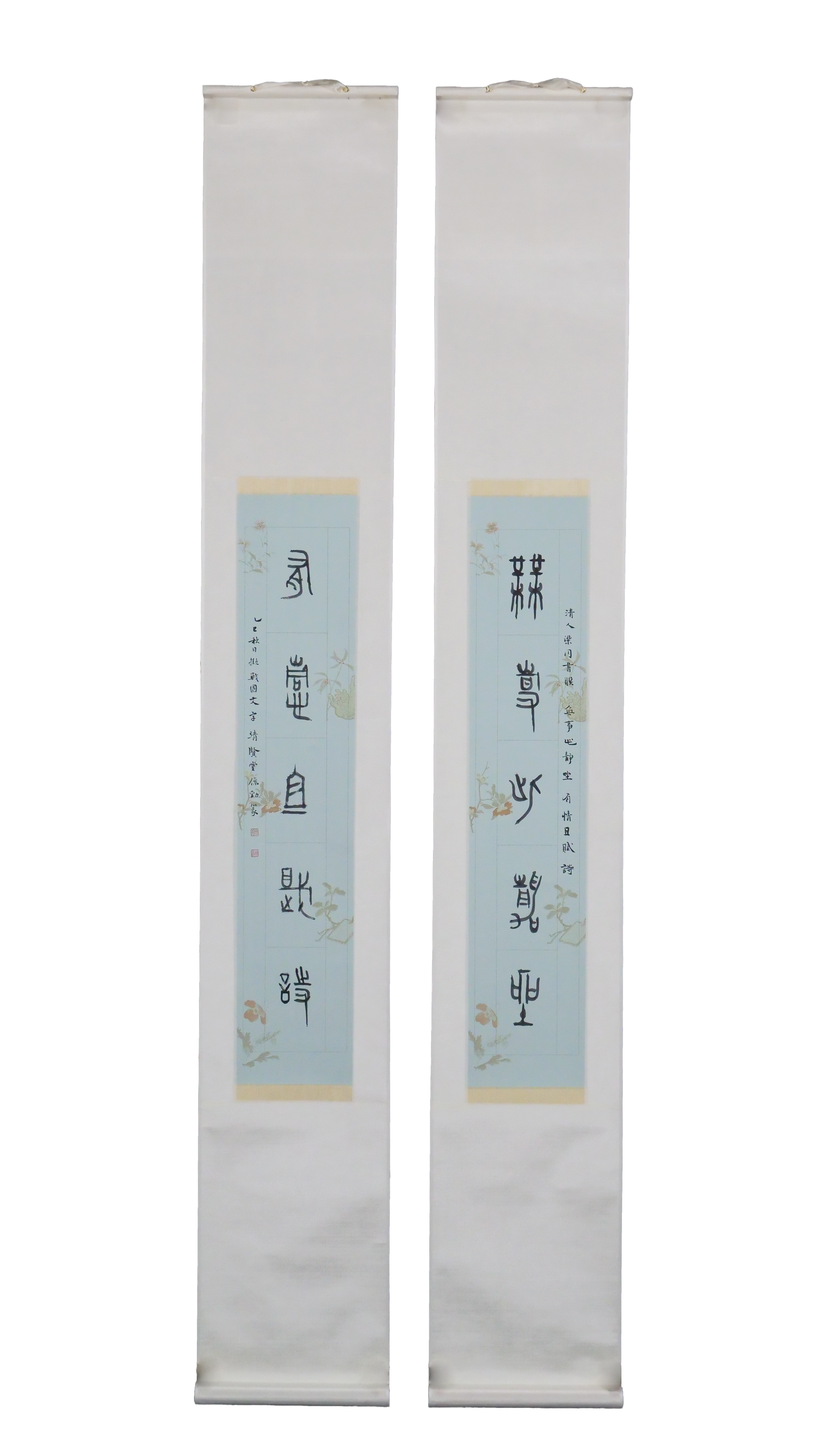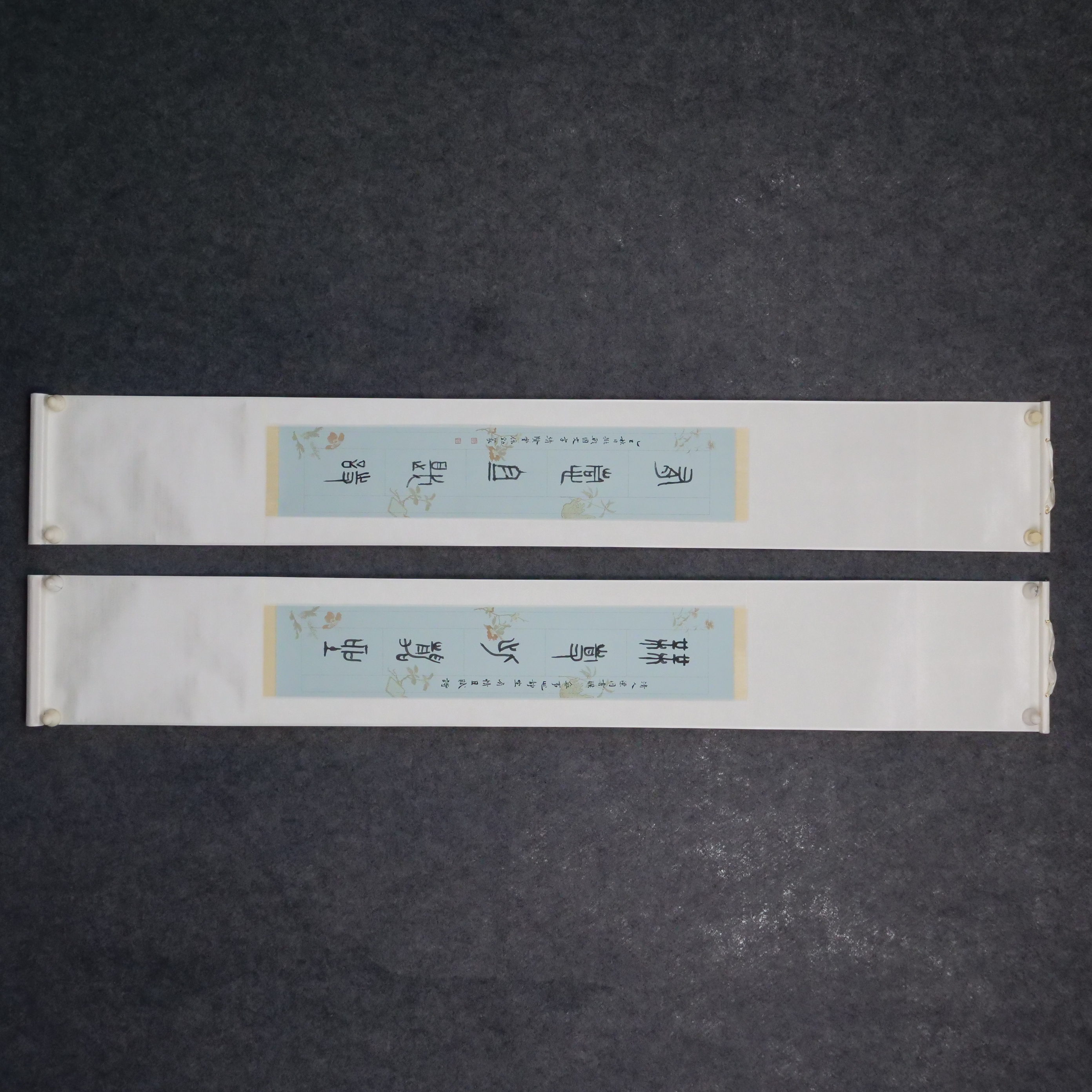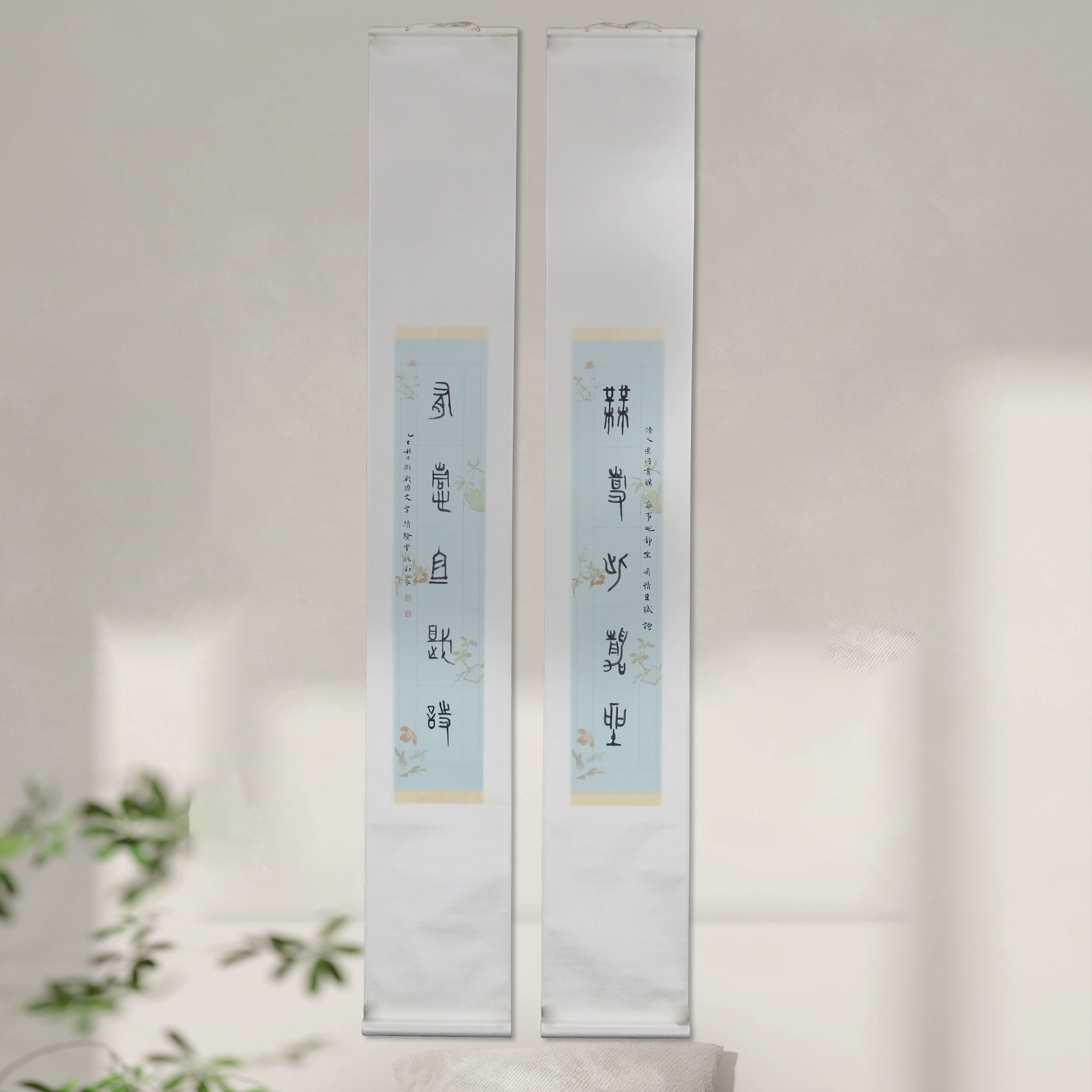 林伟劲《无事此静坐,有情且赋诗》67x14cm 手写纸本宣纸书法对联作品 成品150x22cm,一对(两张)