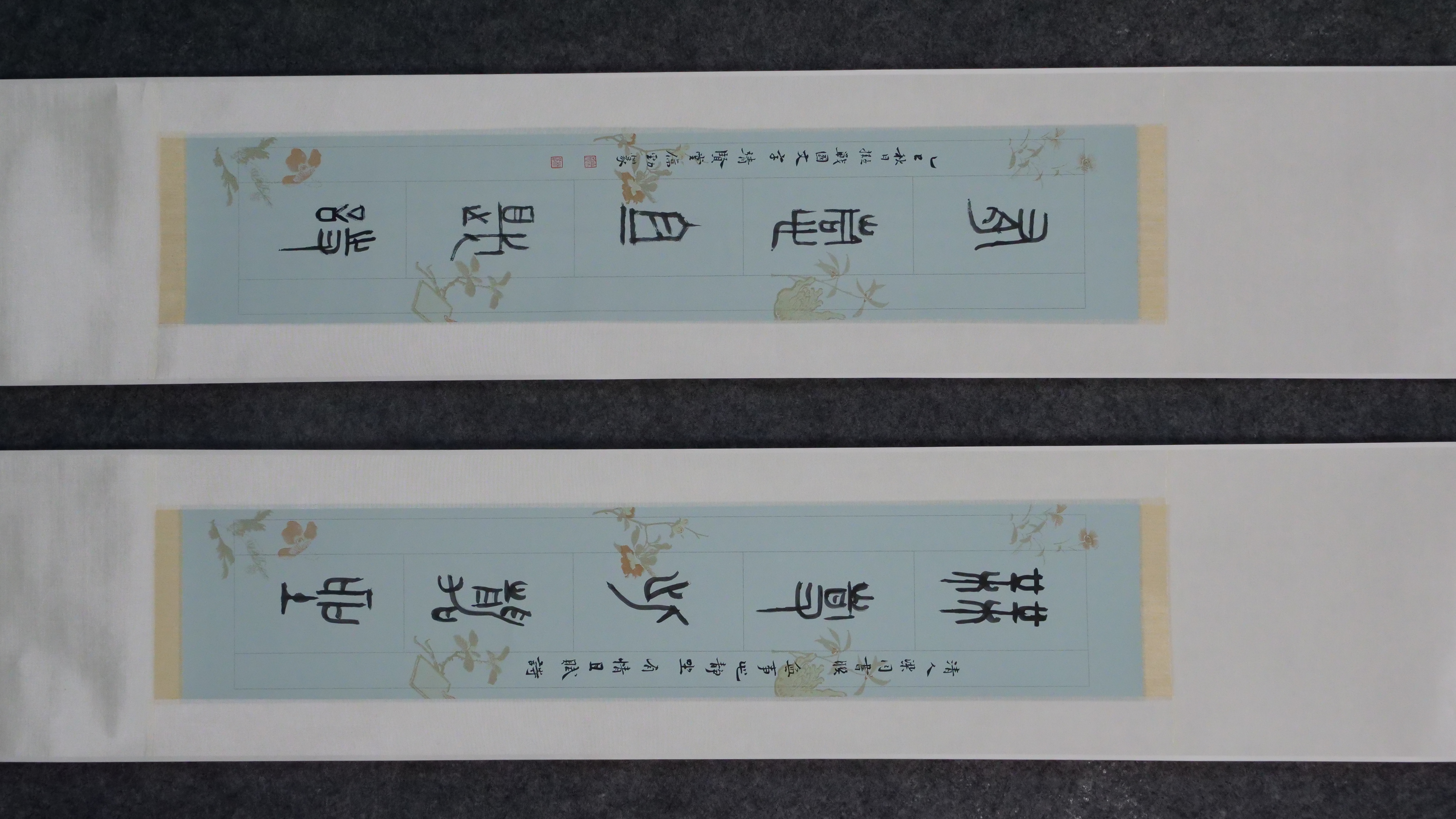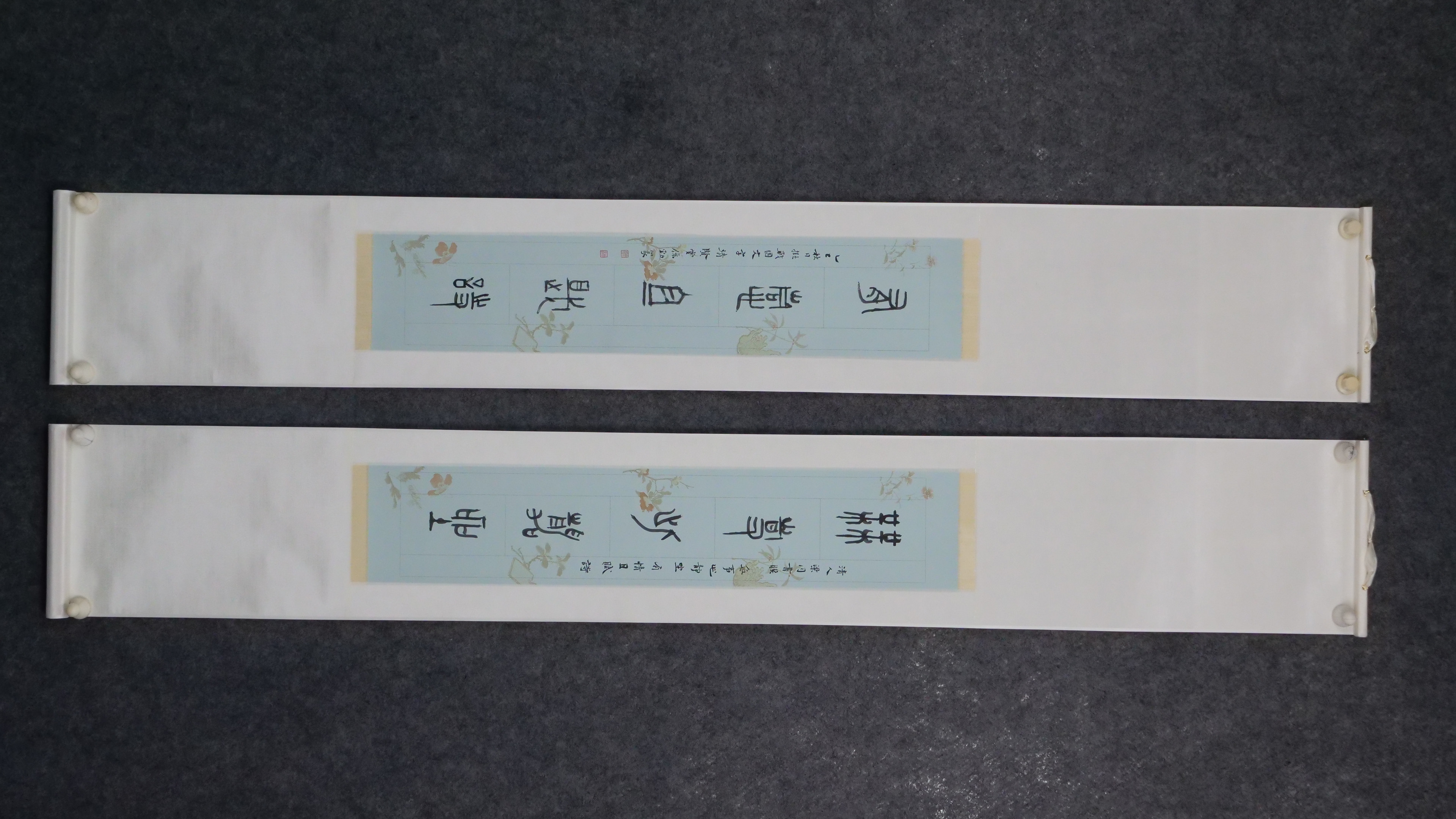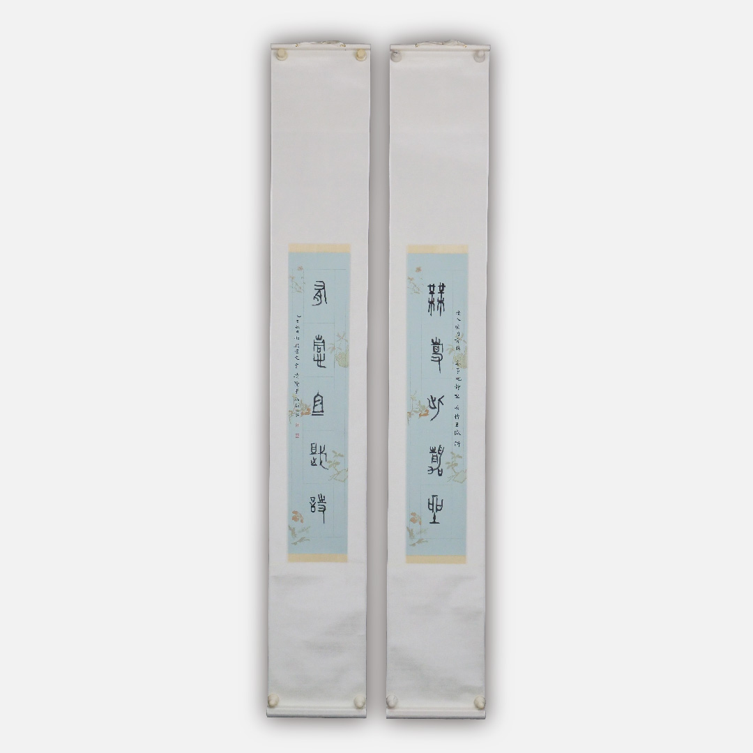 林伟劲《无事此静坐,有情且赋诗》67x14cm 手写纸本宣纸书法对联作品 成品150x22cm,一对(两张)