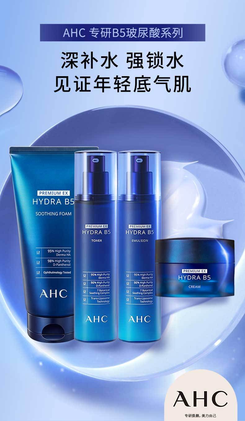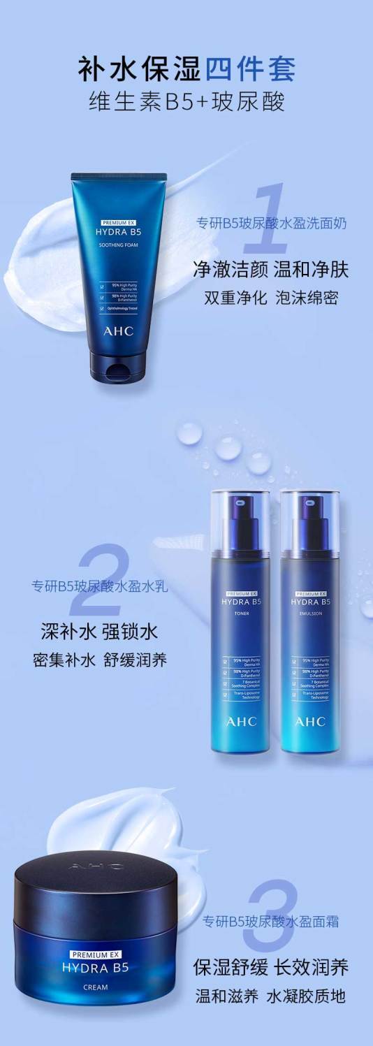 【预售 急单慎拍】ahc水乳套装四件套b5玻尿酸补水保湿ahc水乳洁面三件套