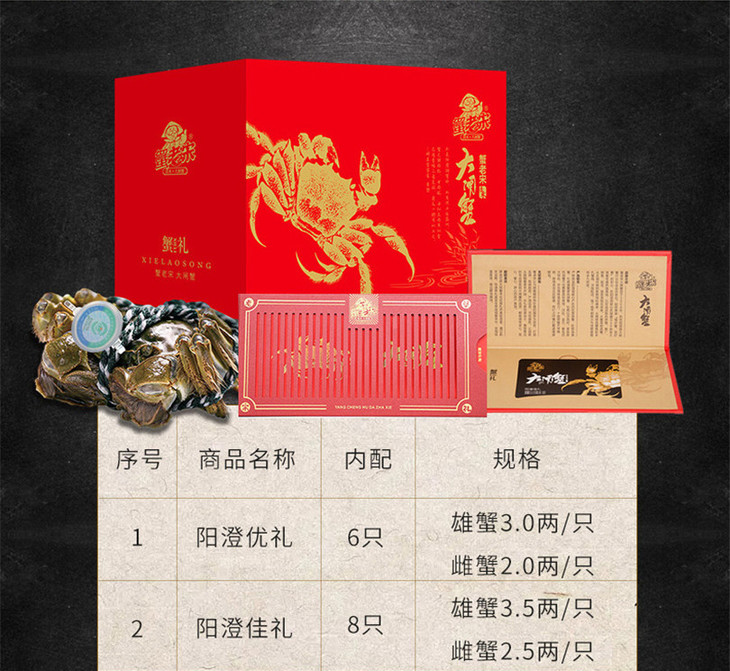 蟹老宋阳澄佳礼大闸蟹券328型 8只(雄蟹3.5两/只 雌蟹2.5两/只)【包邮直发】(ZB)