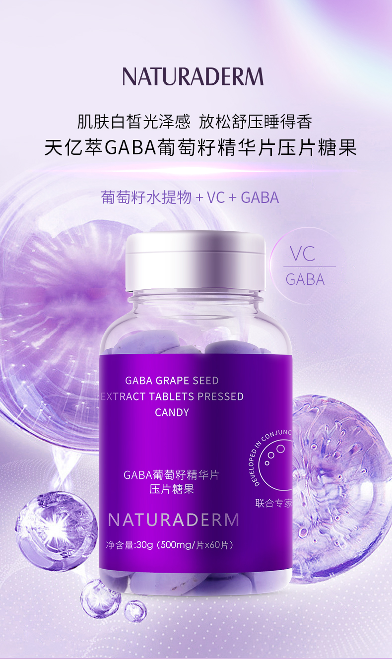天亿萃GABA葡萄籽精华片压片糖果 葡萄籽褪黑素睡眠片透亮肌肤提亮去黄