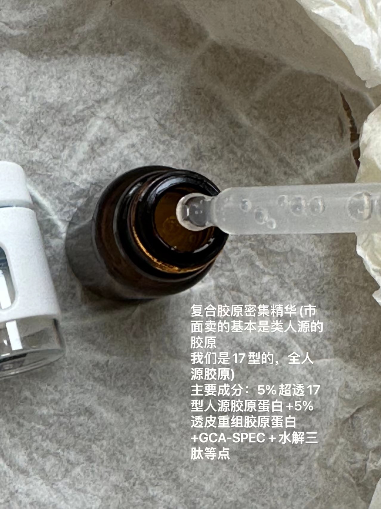 面部回春活菩萨!这款精华很直接就是直补胶原蛋白促进胶原再生塑紧胶原结构搭配胶原球效果更佳 用精华溶解胶原绒球凹陷松弛泪沟垮脸一抹回春!收拾顽固的泪沟纹都不在话下填平沟沟壑壑撑起胶原结构、、褪眼纹、提亮全方面被胶原包围市面上配置蕞豪华的胶原精华配方了一瓶含5种类型的胶原蛋白添加浓度极高5%17型胶原+5%透皮重组胶原+10%(1+3)胶原溶液+10%水解三肽胶原蛋白