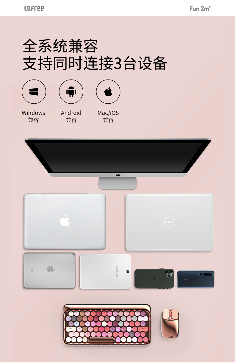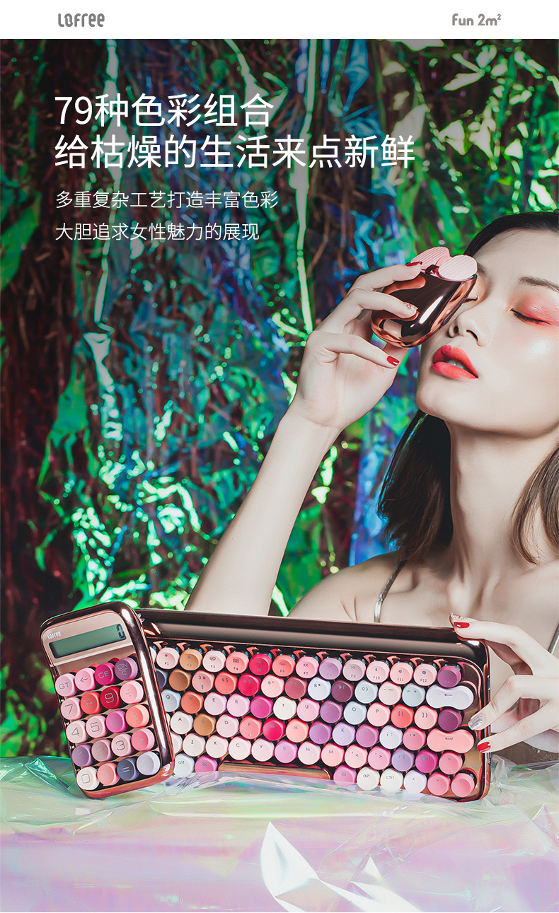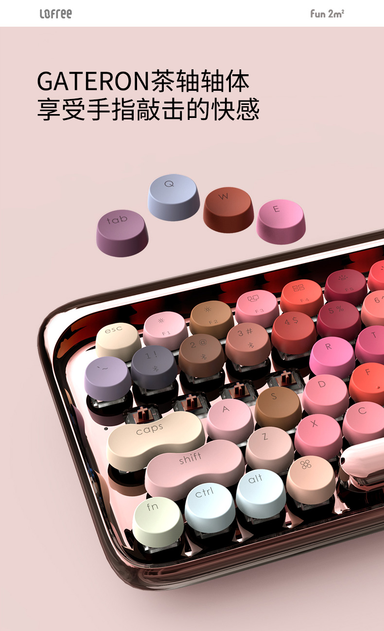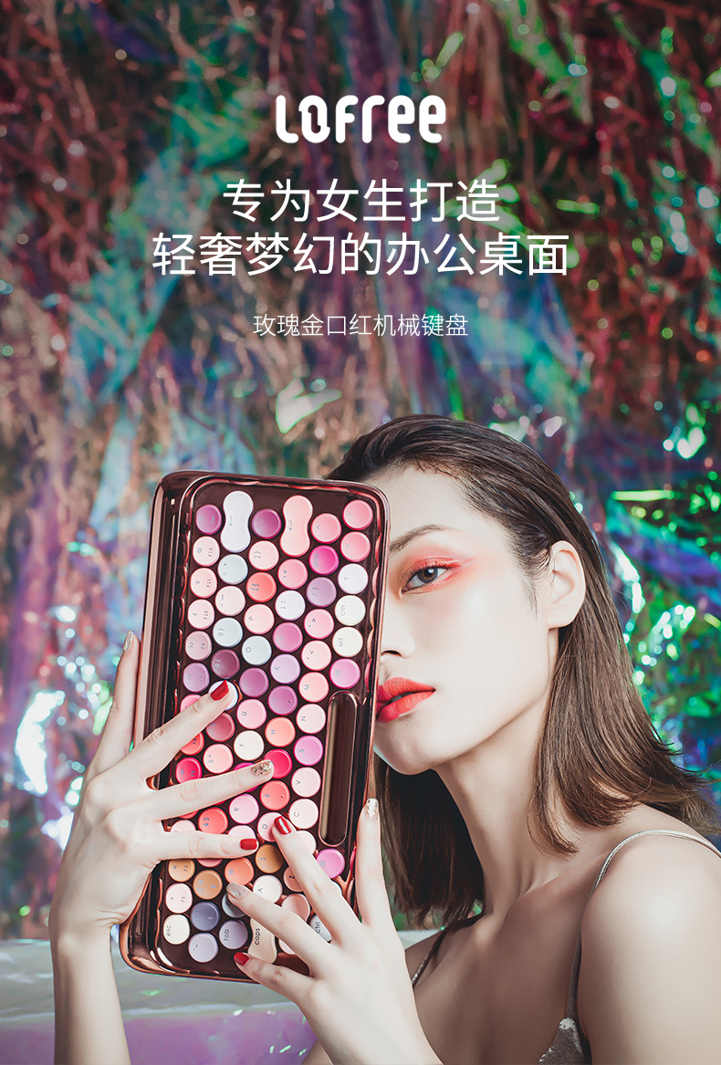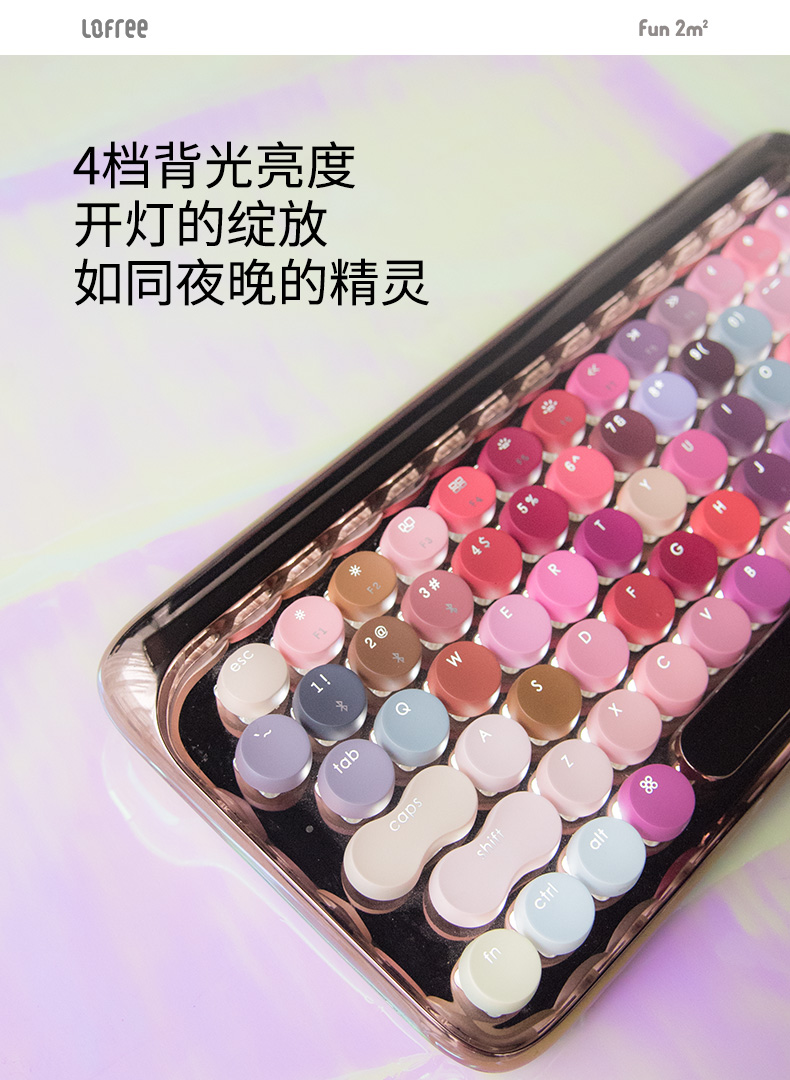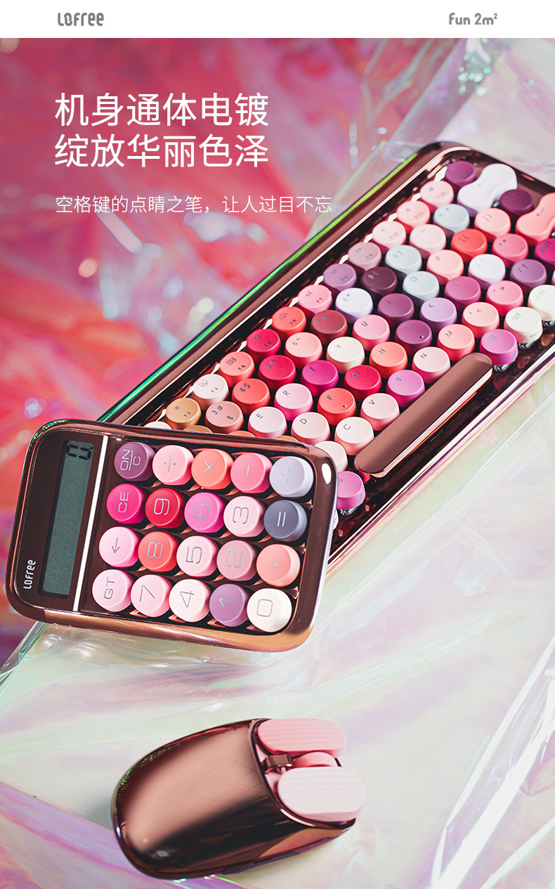 洛斐LOFREE 圆点蓝牙机械键盘-玫瑰金绽放 蓝牙无线机械键盘鼠标套装平板ipad电脑笔记本手机