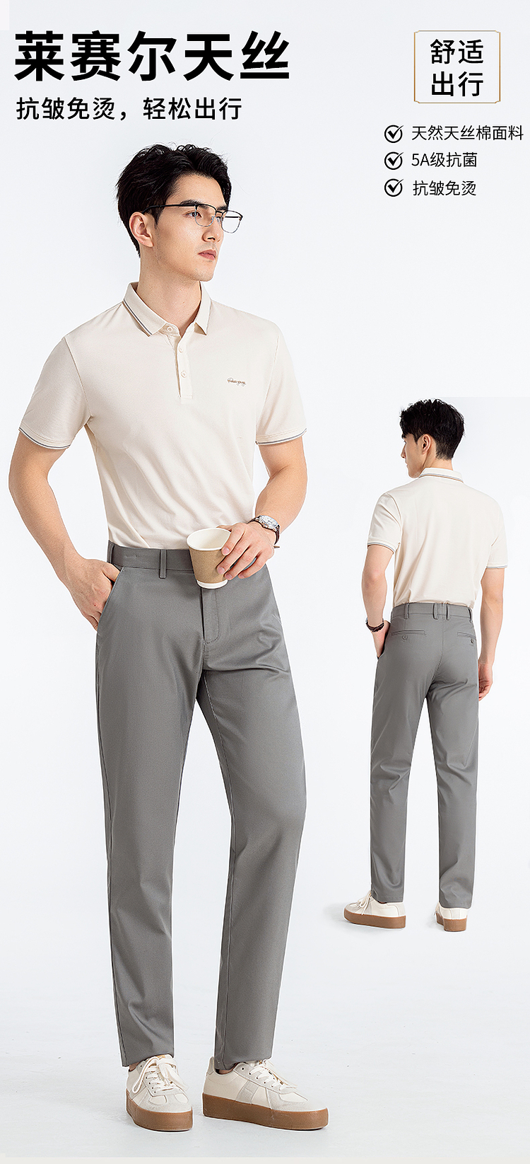 【含天丝】圣得西天丝水洗棉休闲裤男夏季新款直筒轻薄男士长裤