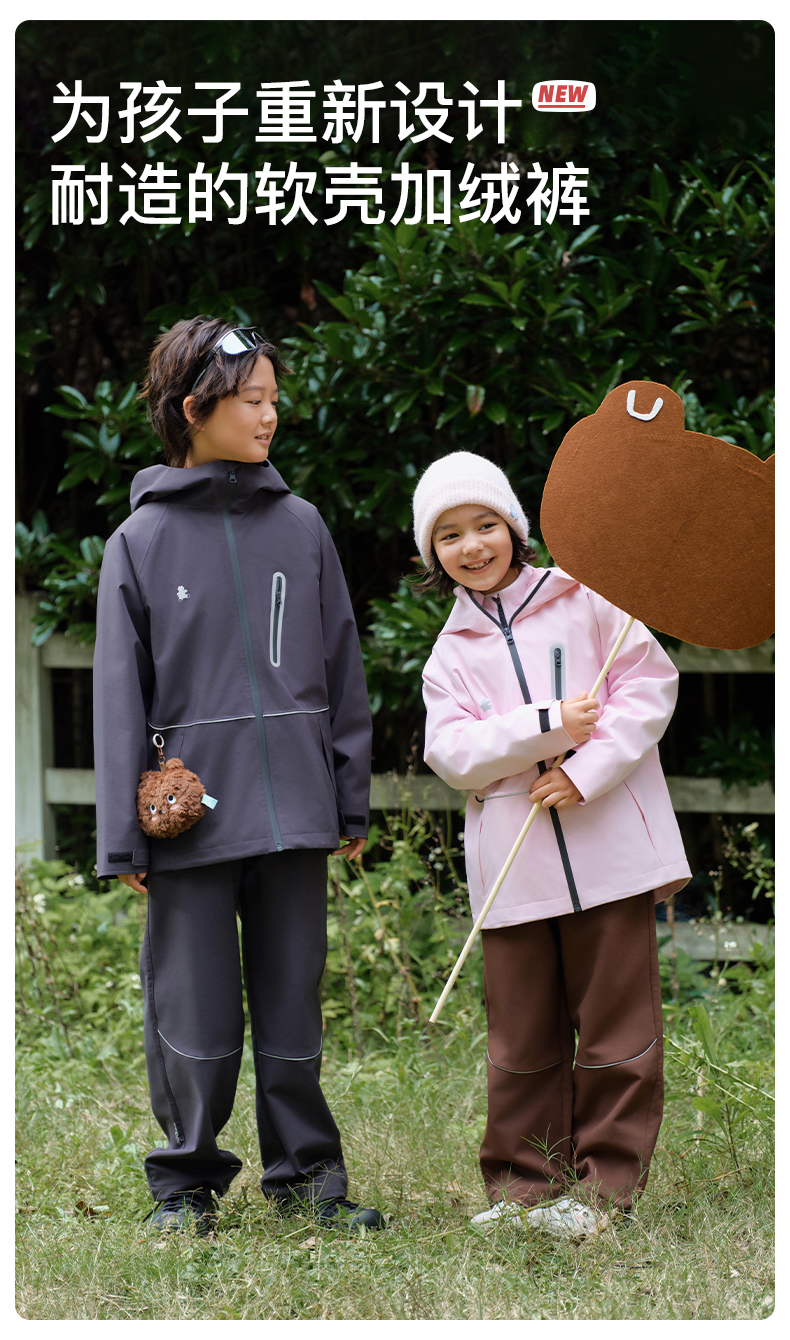 likeuu儿童户外冲锋裤男女中大童加绒冬季新款保暖休闲耐磨长裤dr