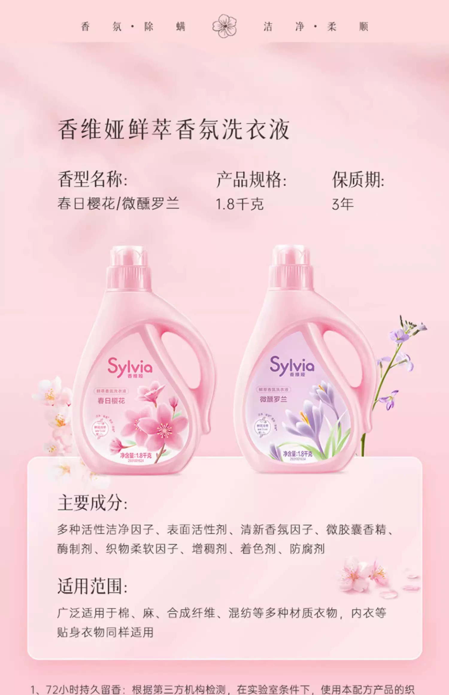 春日樱花洗衣液1.8kg+卫仕天然除菌洗衣液100克