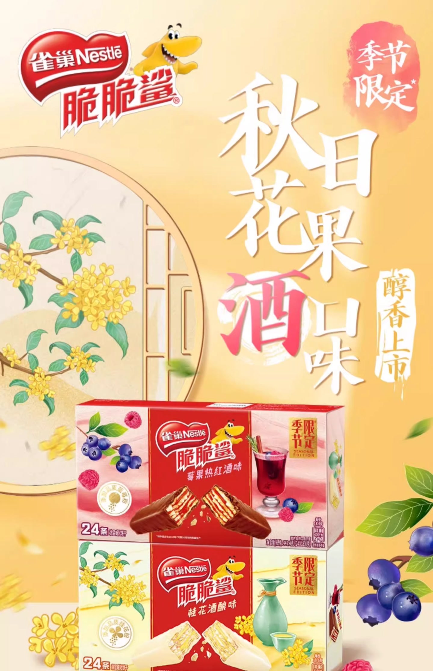 脆脆鲨威化饼干季节限定新口味莓果热红酒味/桂花酒酿味