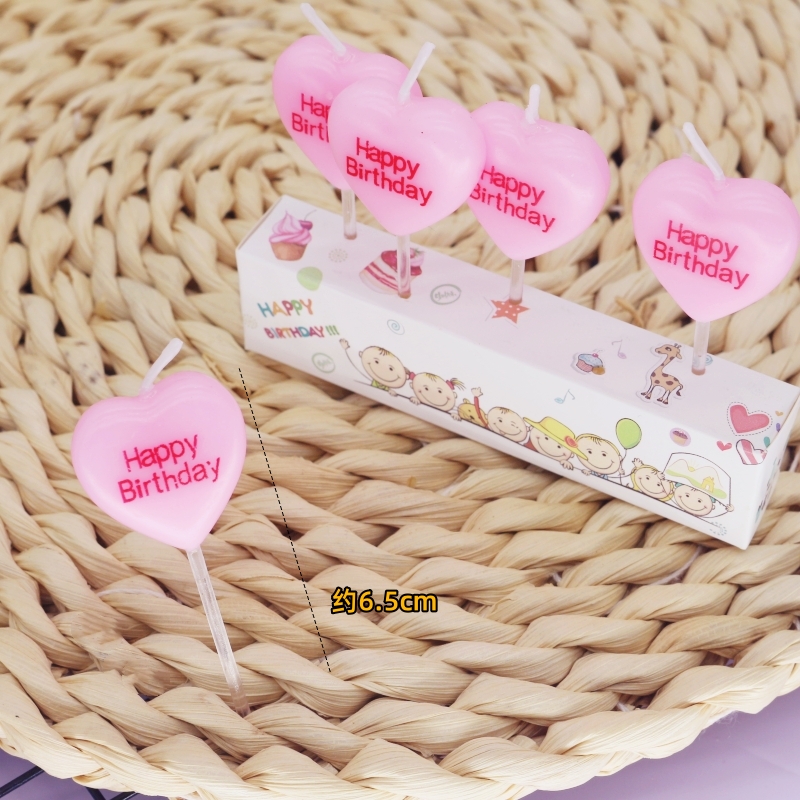 5支装 粉色爱心Happy Birthday蜡烛 公主风粉色系生日蜡烛