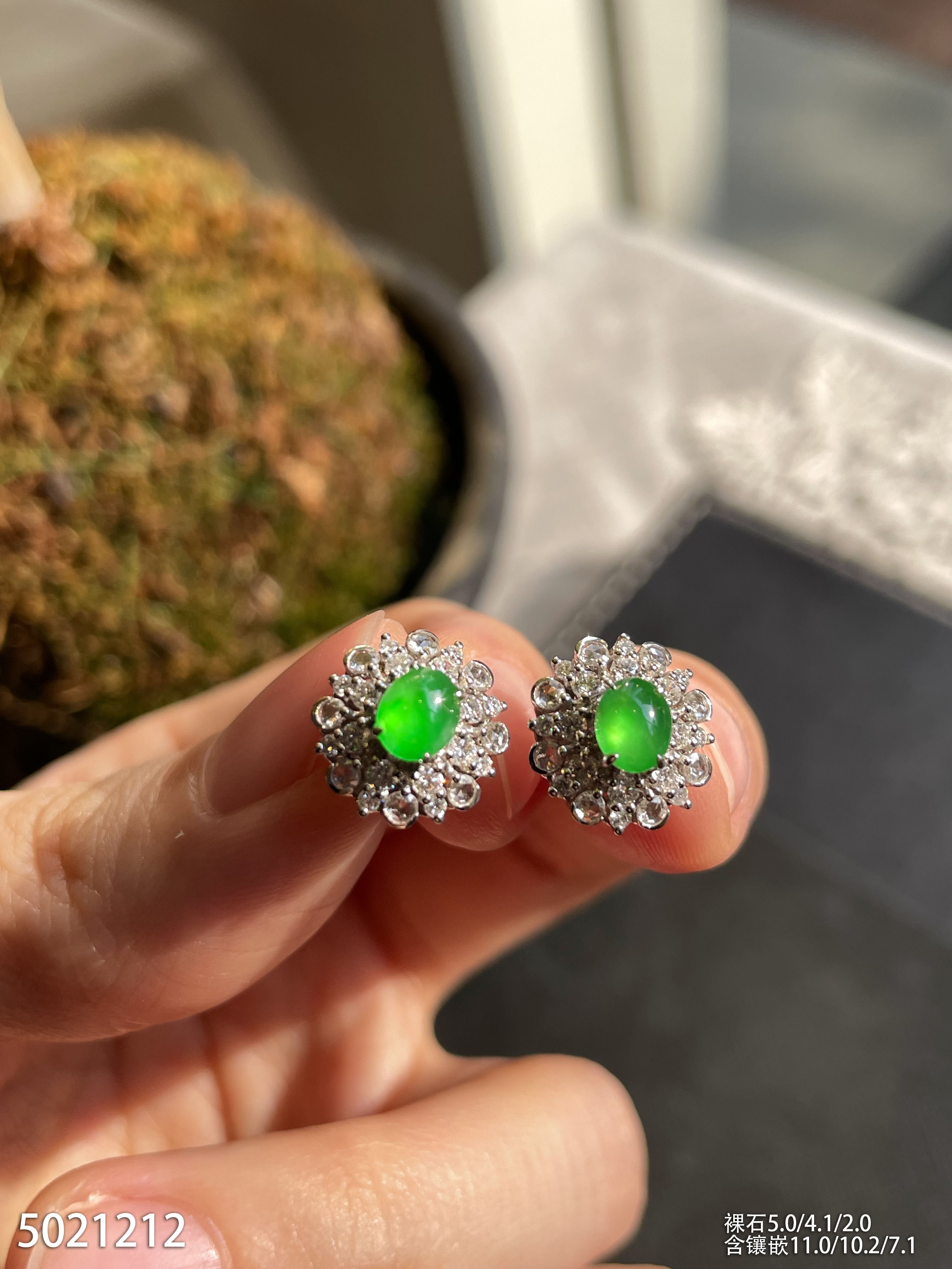 高冰种艳绿葫芦耳坠 72999【6024304】