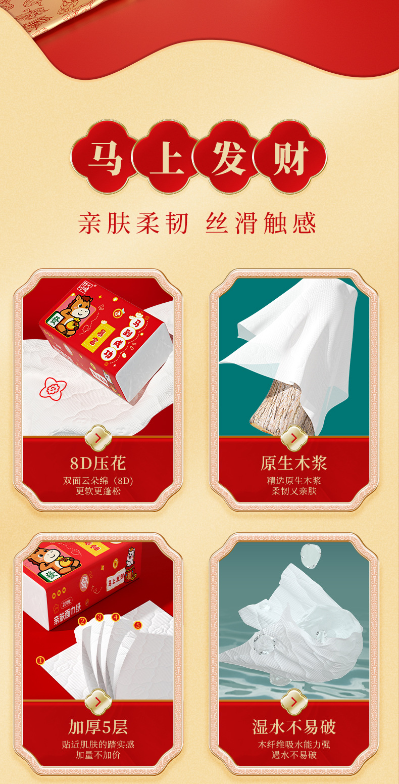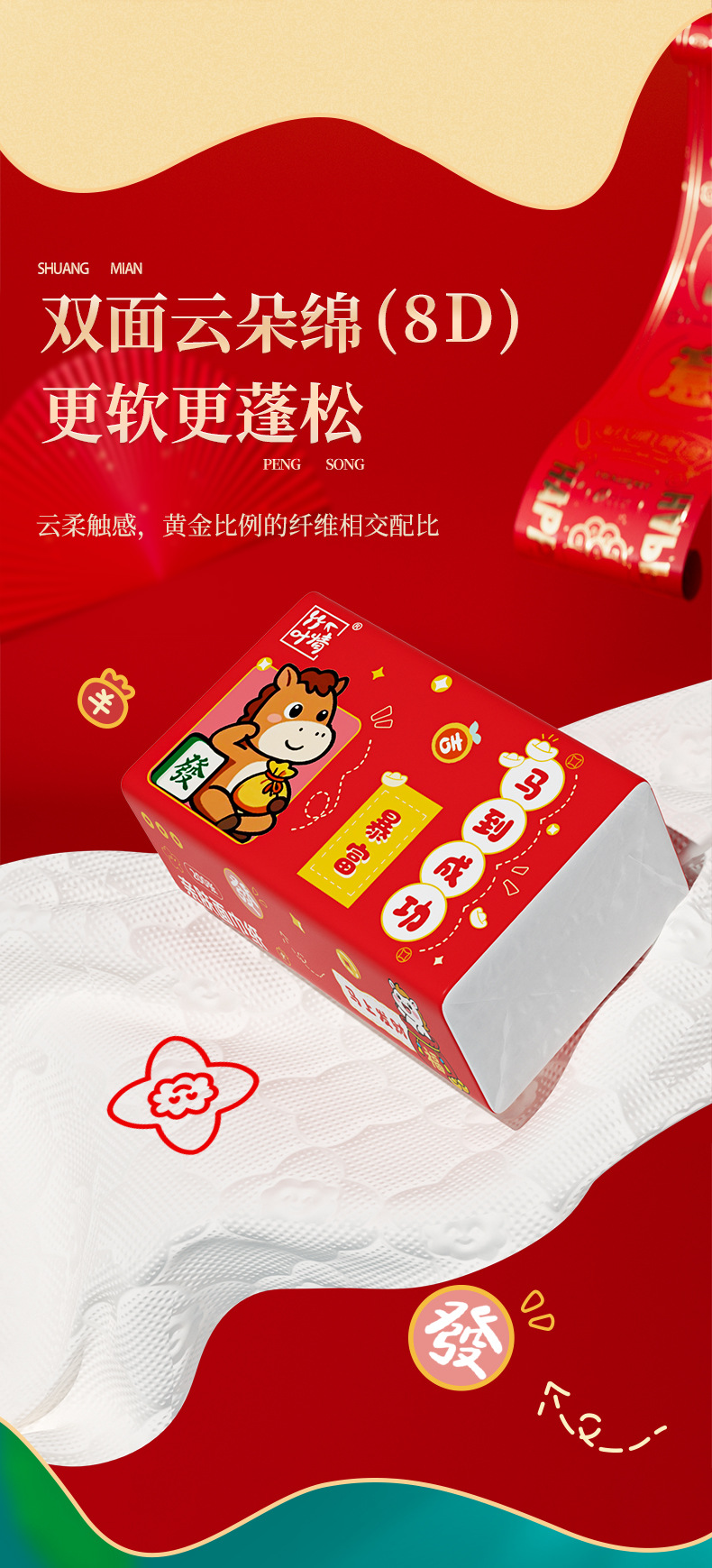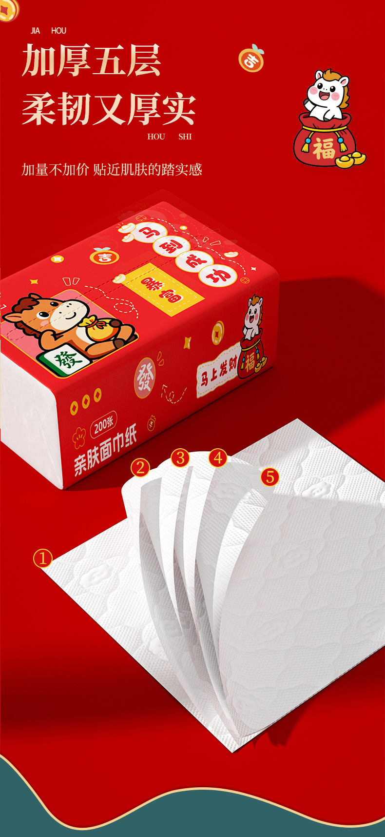 【20包!马年纸巾抽纸大箱】新年抽纸家用 面巾纸卫生纸 5层加厚亲肤面巾纸
