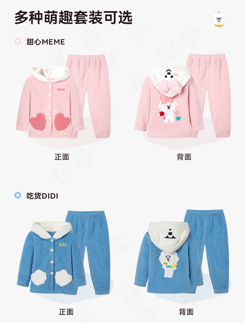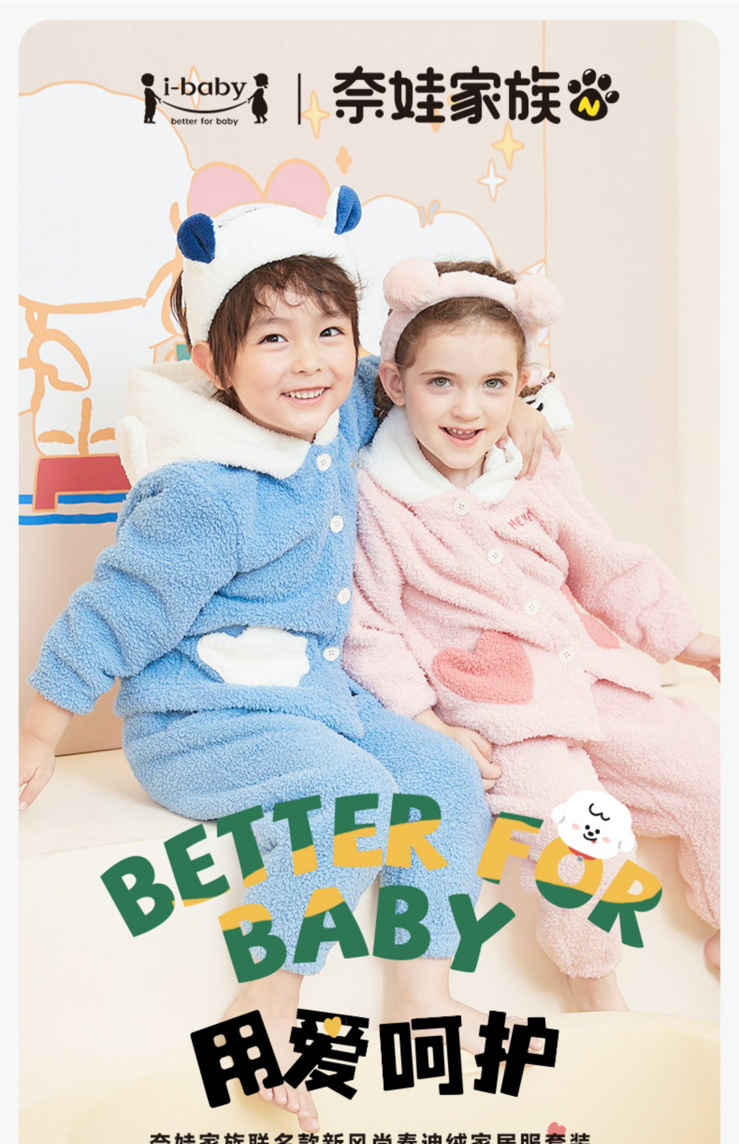 【断码清仓】i-baby新风尚奈娃联名泰迪绒防静电家居服套装 萌趣造型款家居服睡衣【没货安排退款】