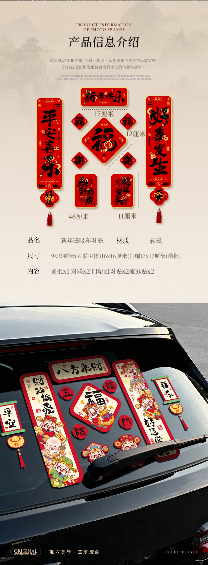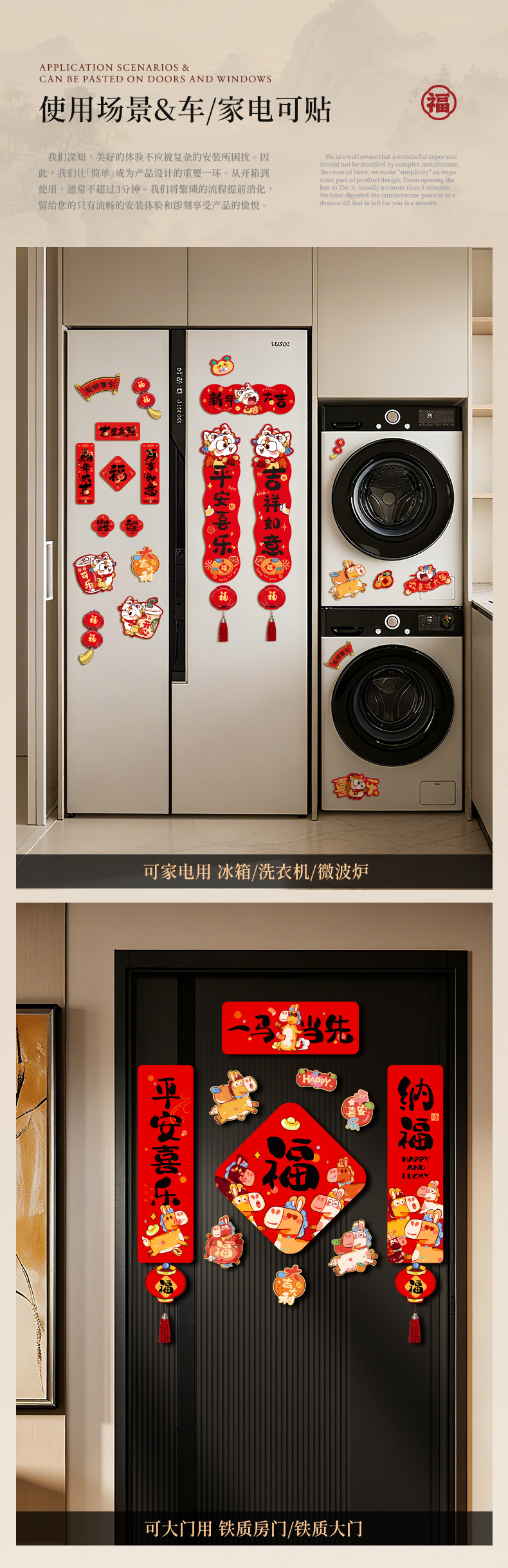 「数款可选!2026新款磁吸车对联」春联马年春节新年家用迷你汽车贴磁贴过年装饰
