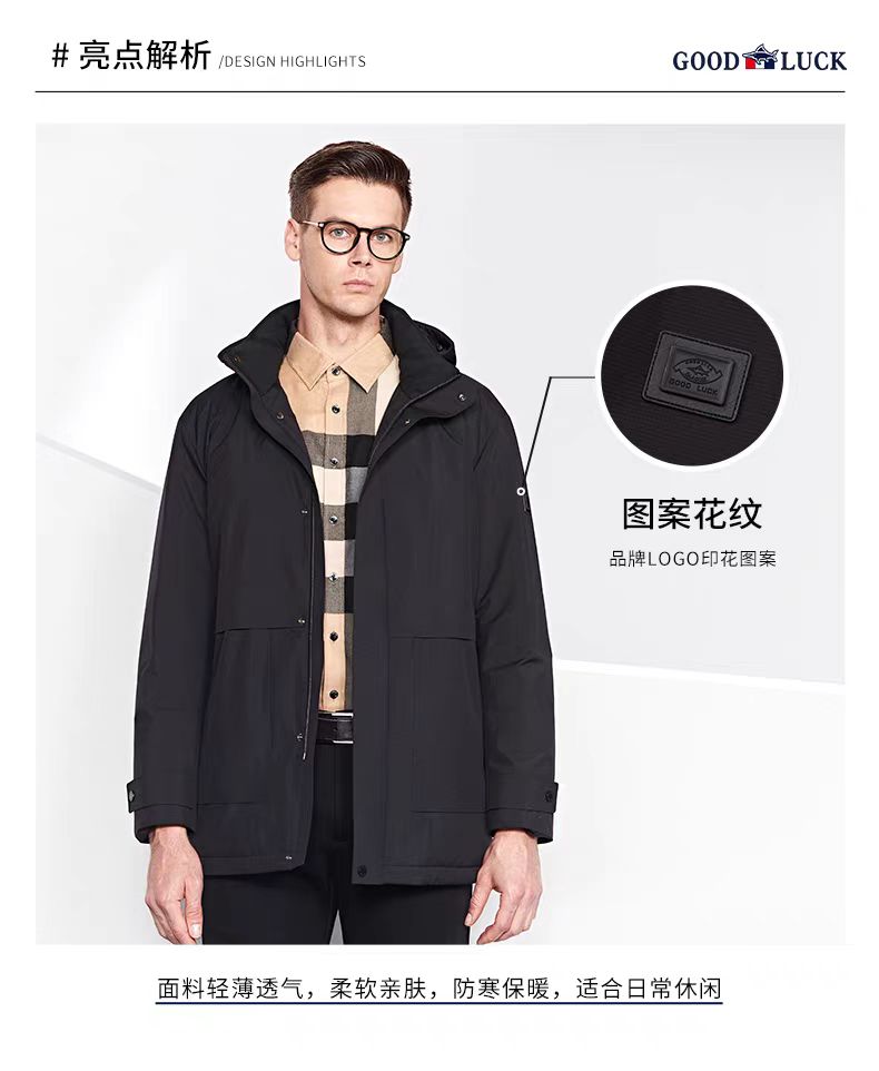 《90白鹅绒》系列 德鲨24秋冬新品 男士工装连帽时尚休闲羽绒服FR16563