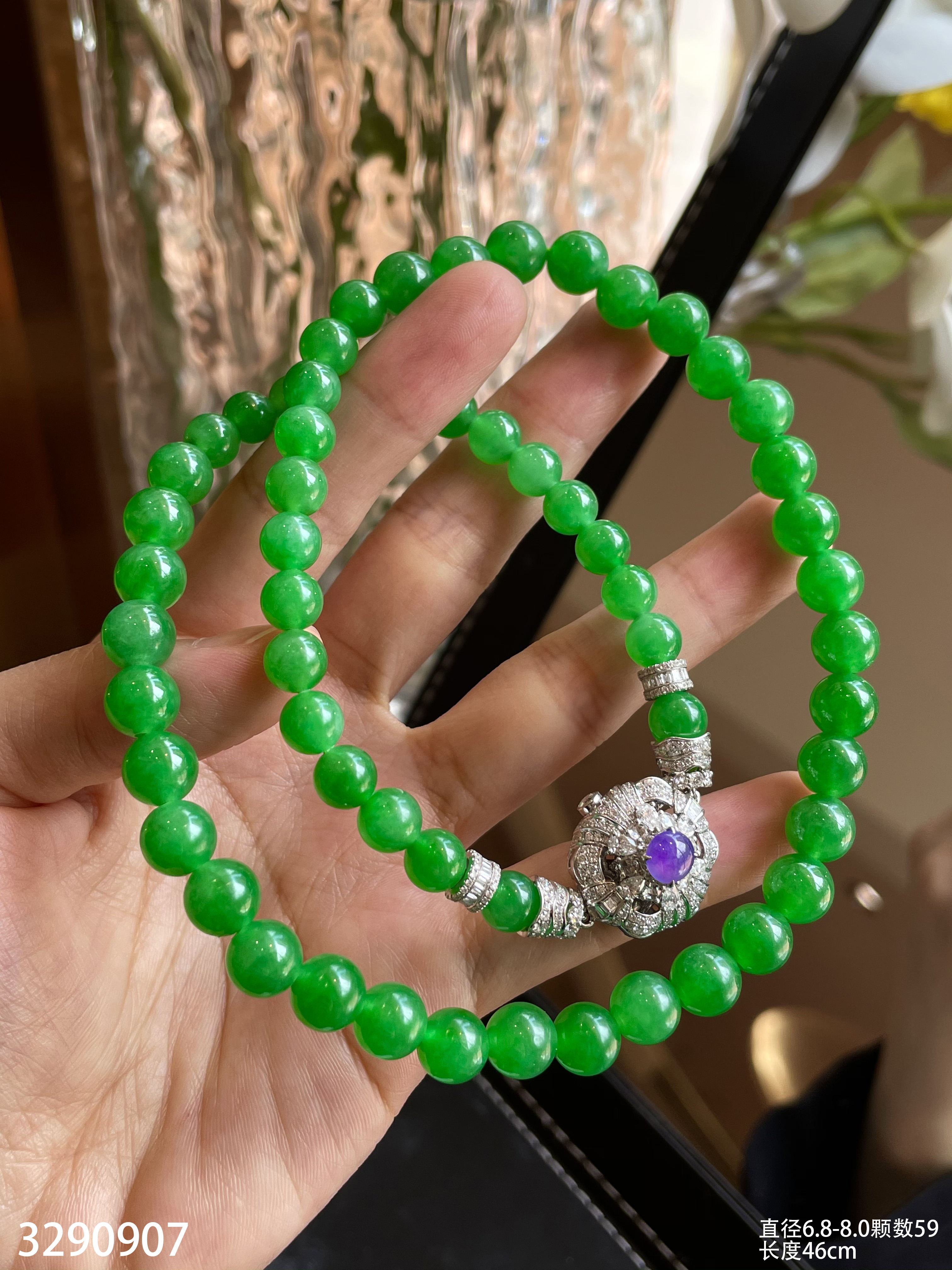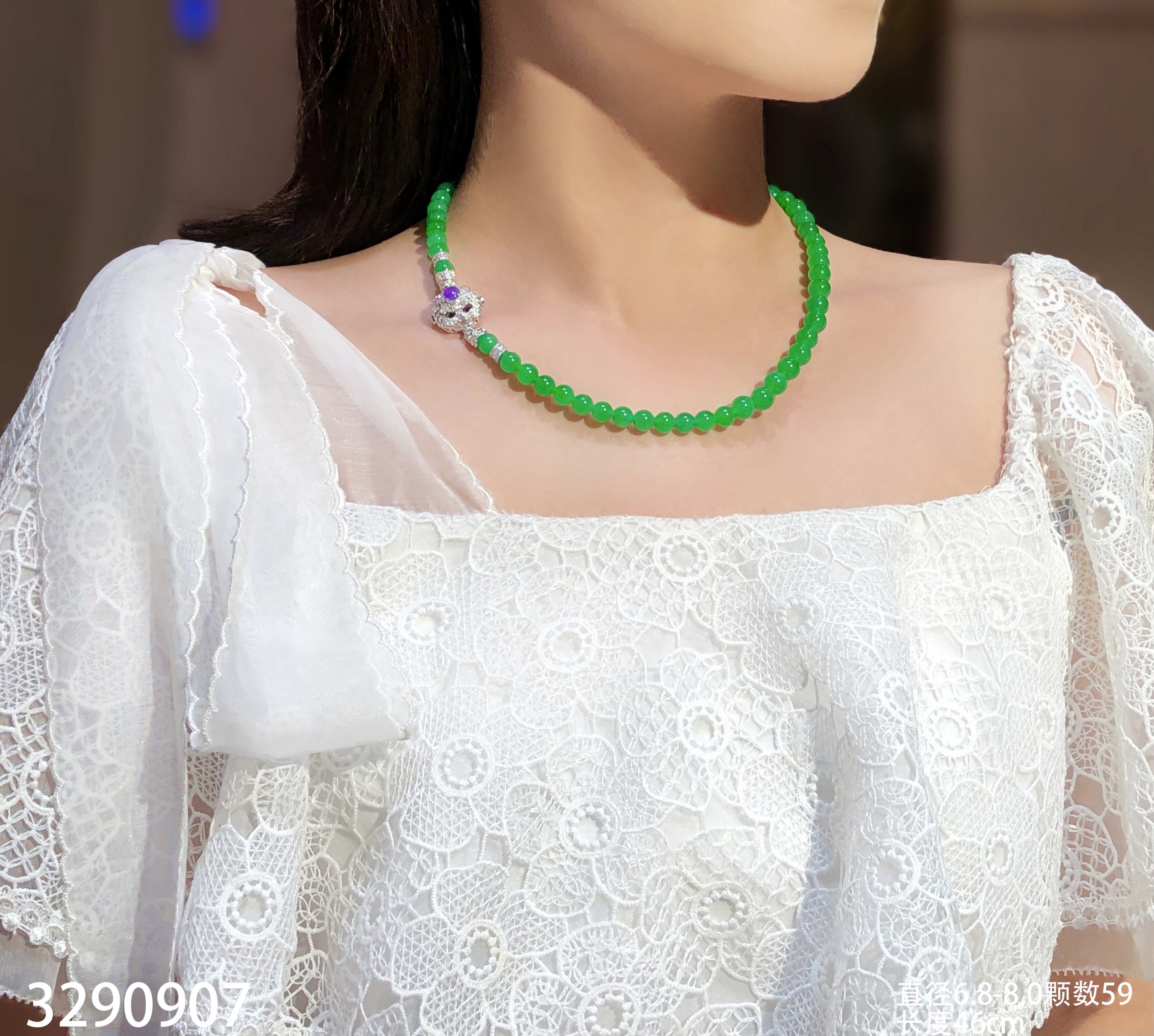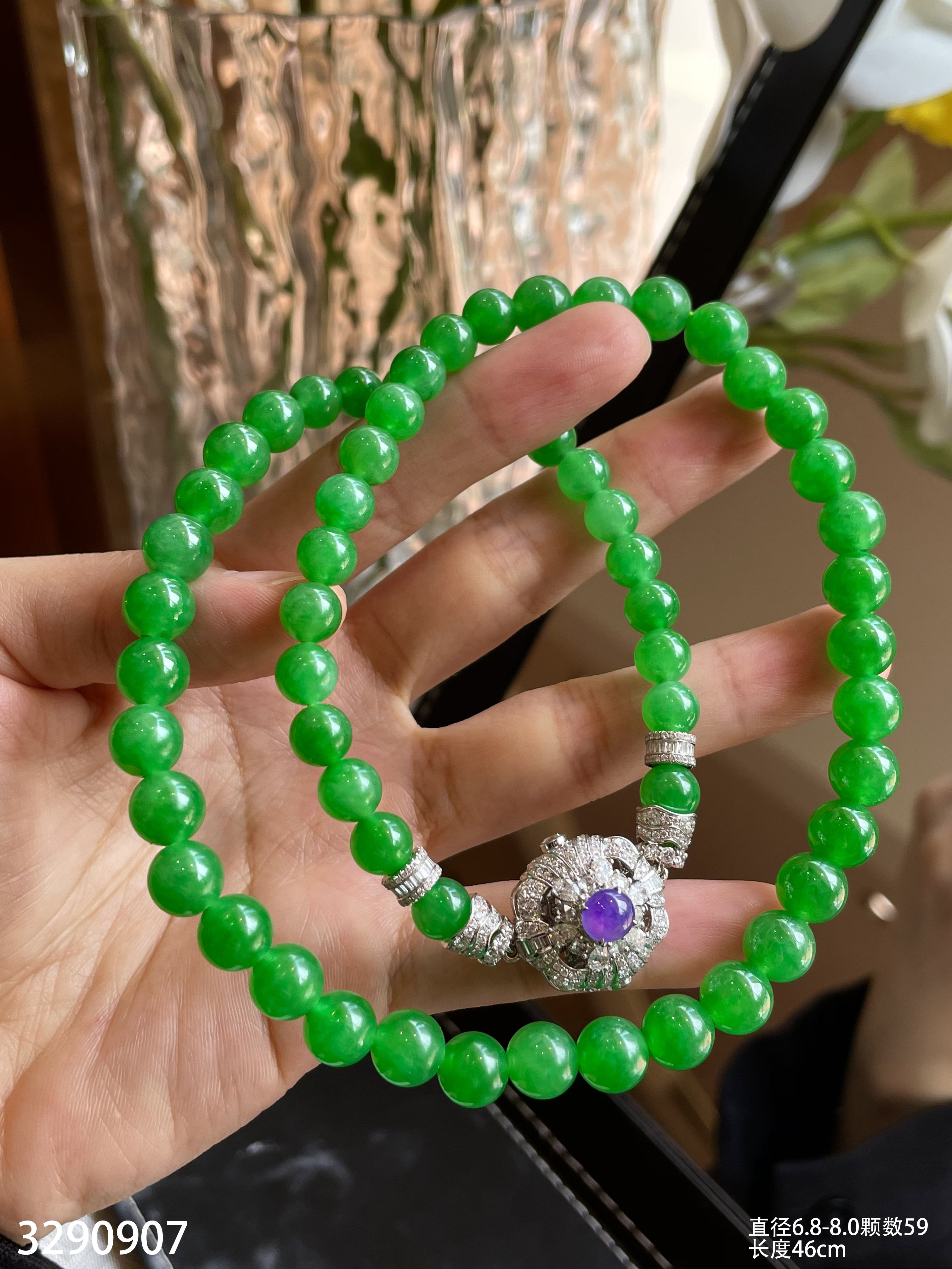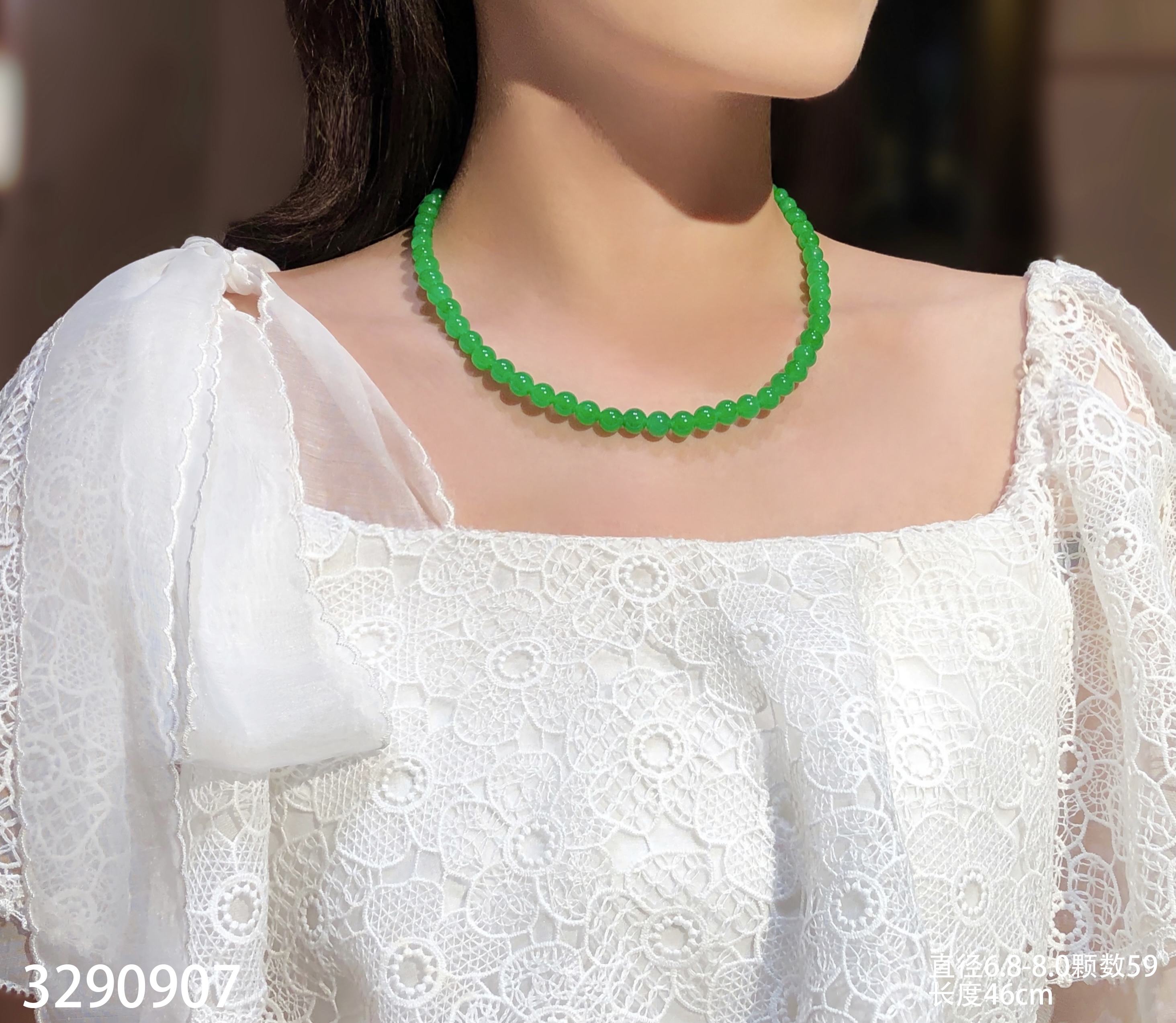 绿珠串 直径6.7-7.9 颗数108 13-1135408。具体价格微信咨询