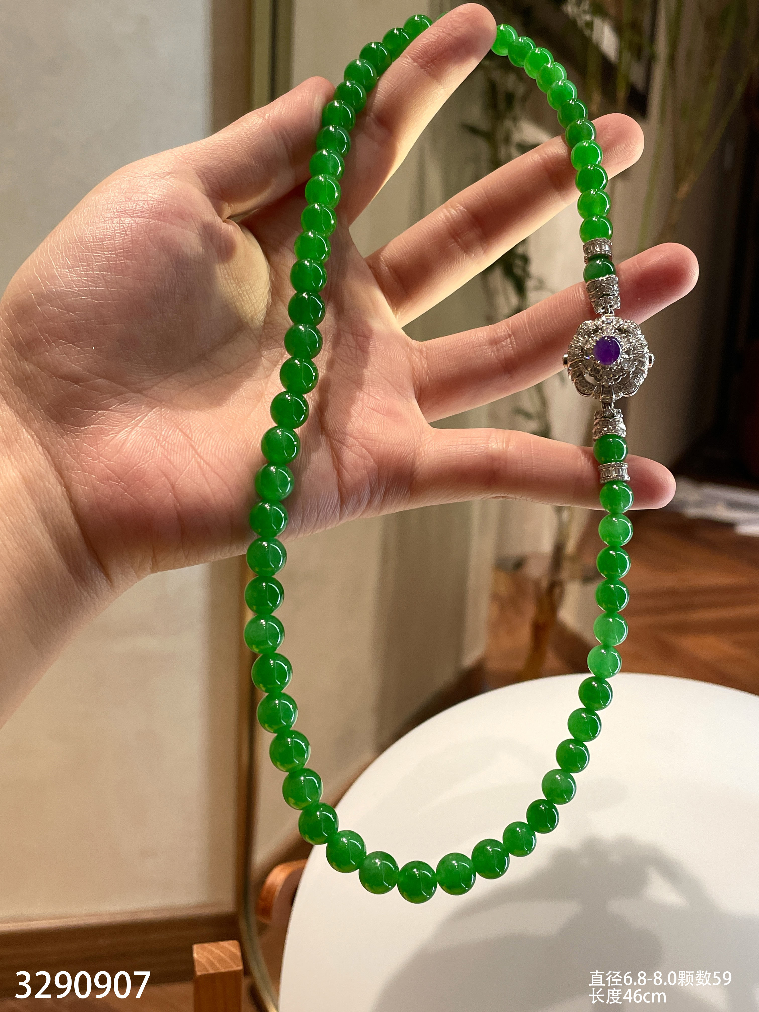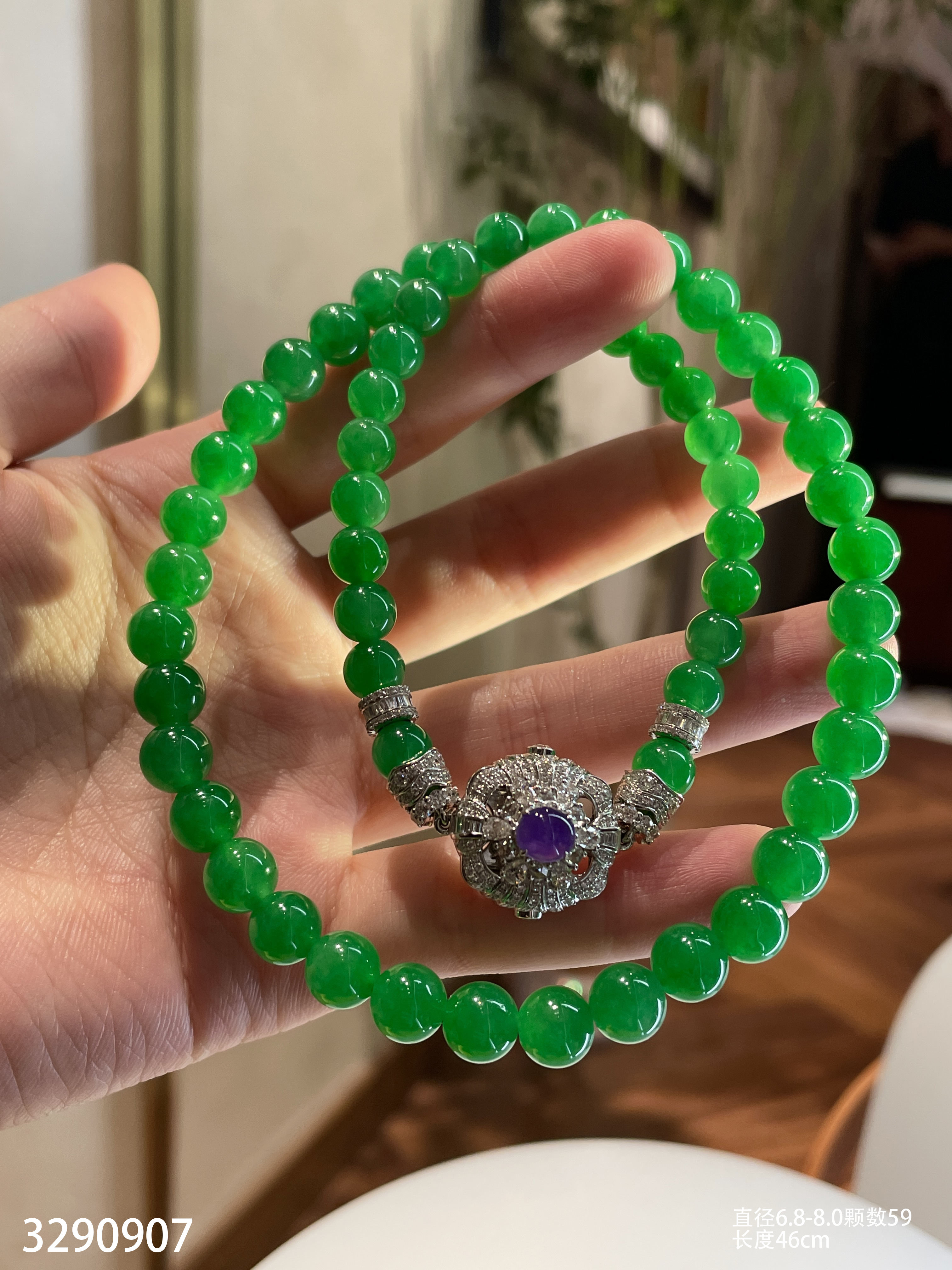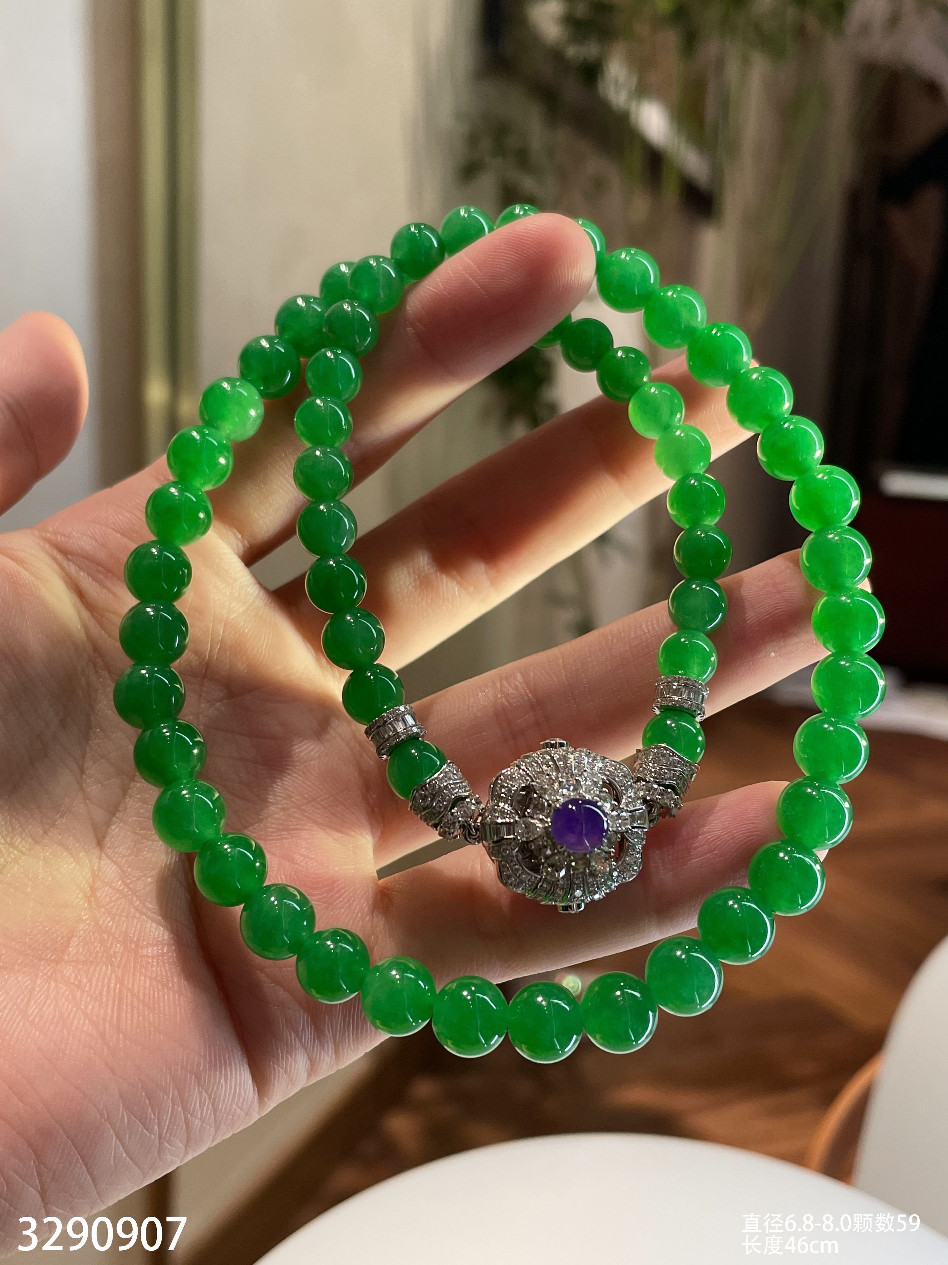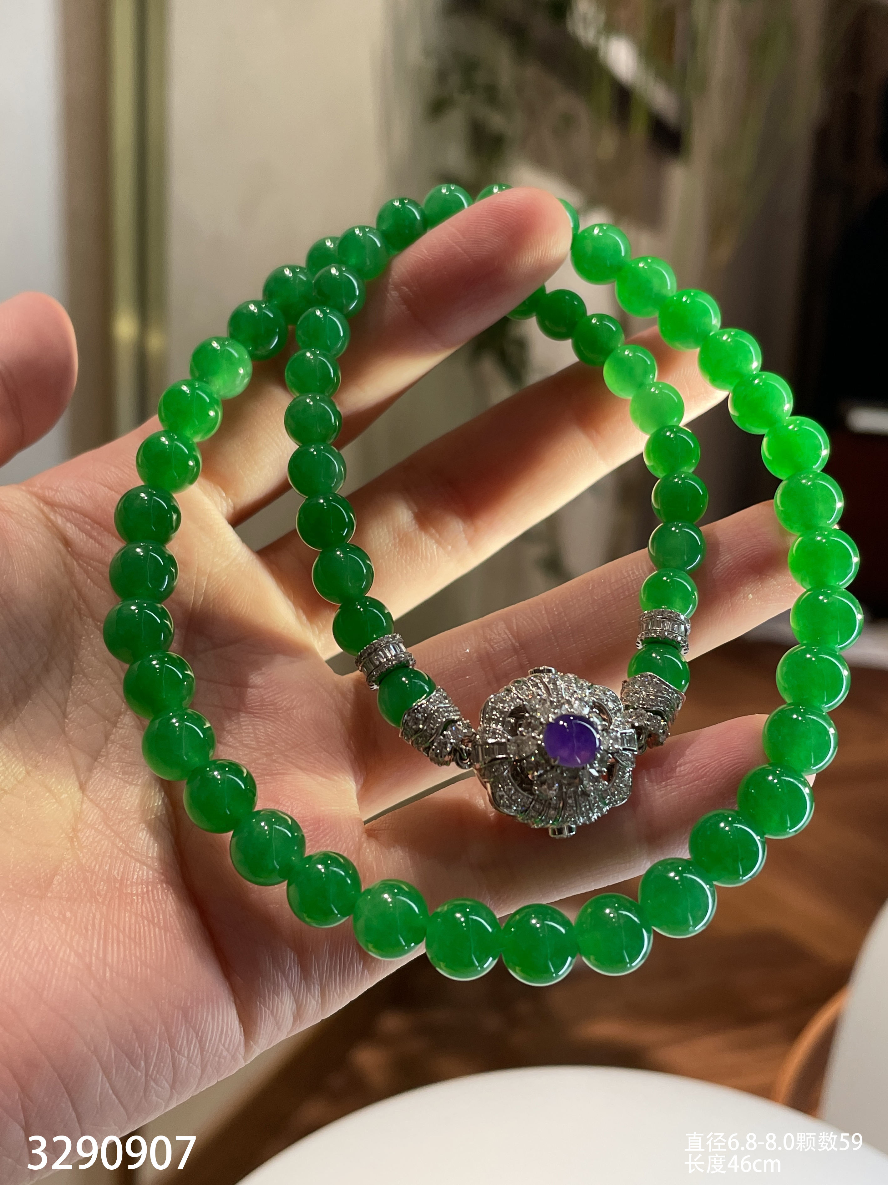 绿珠串 直径6.7-7.9 颗数108 13-1135408。具体价格微信咨询