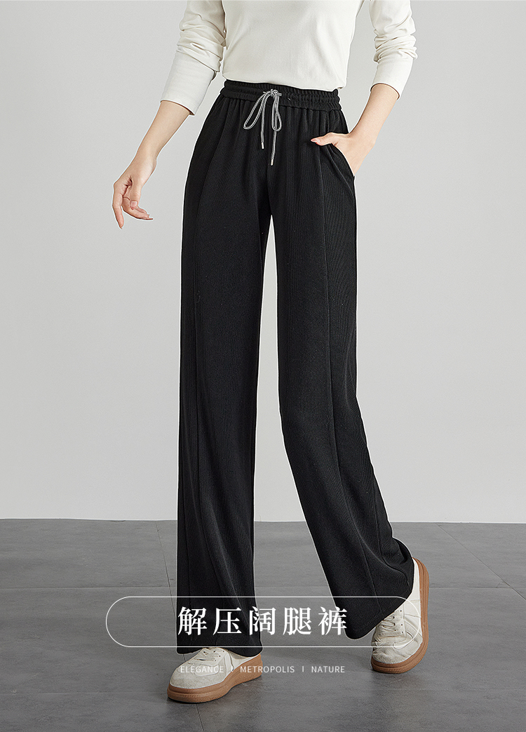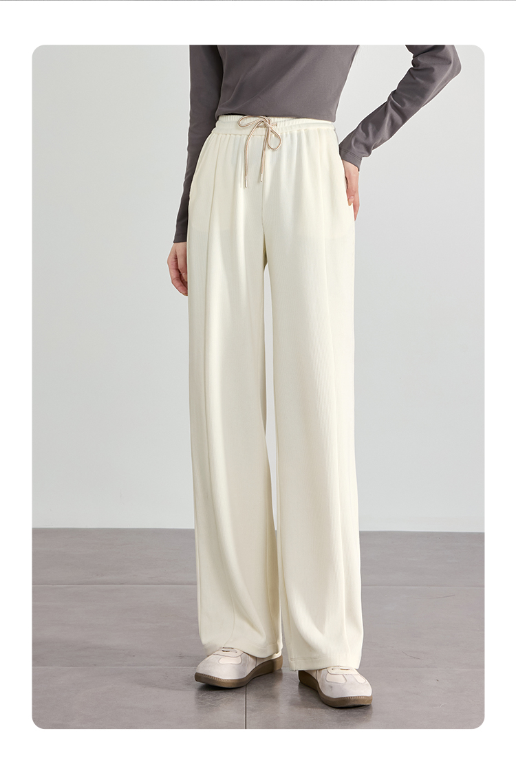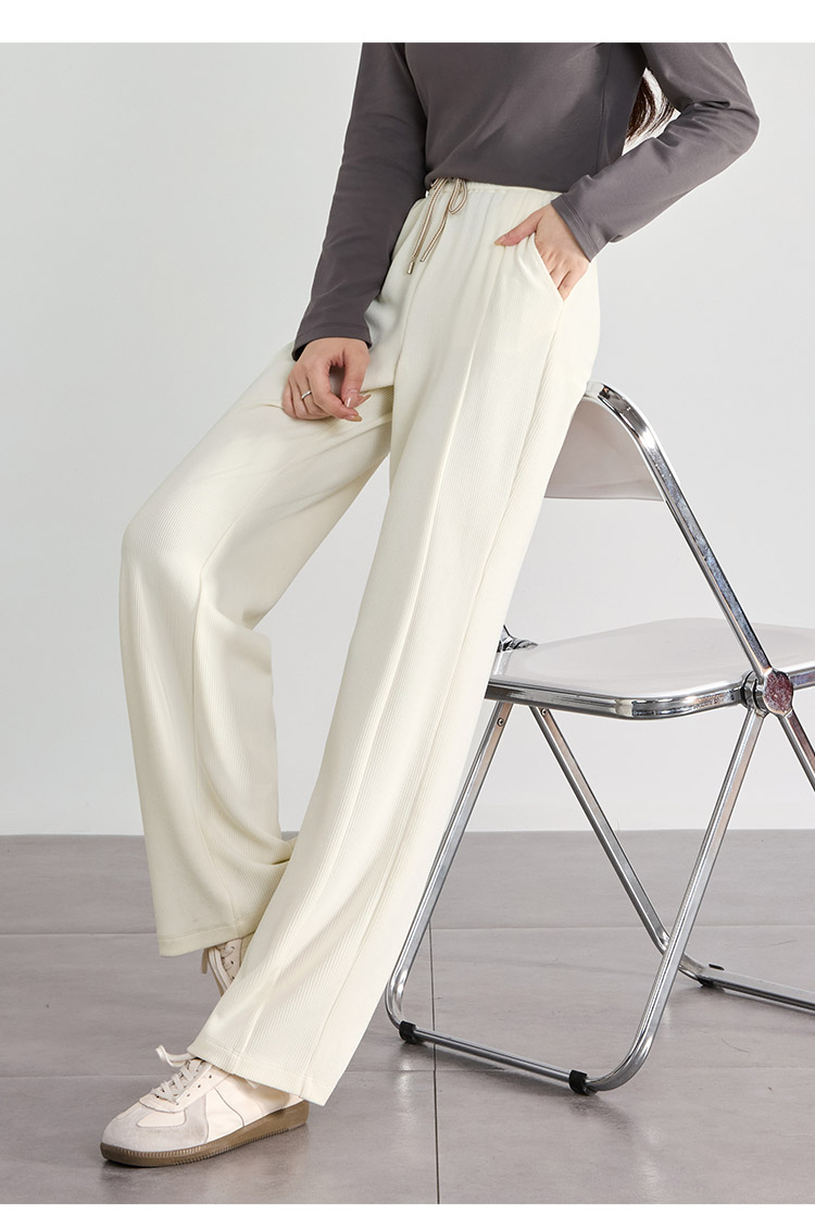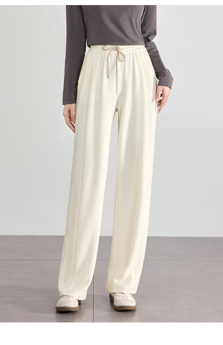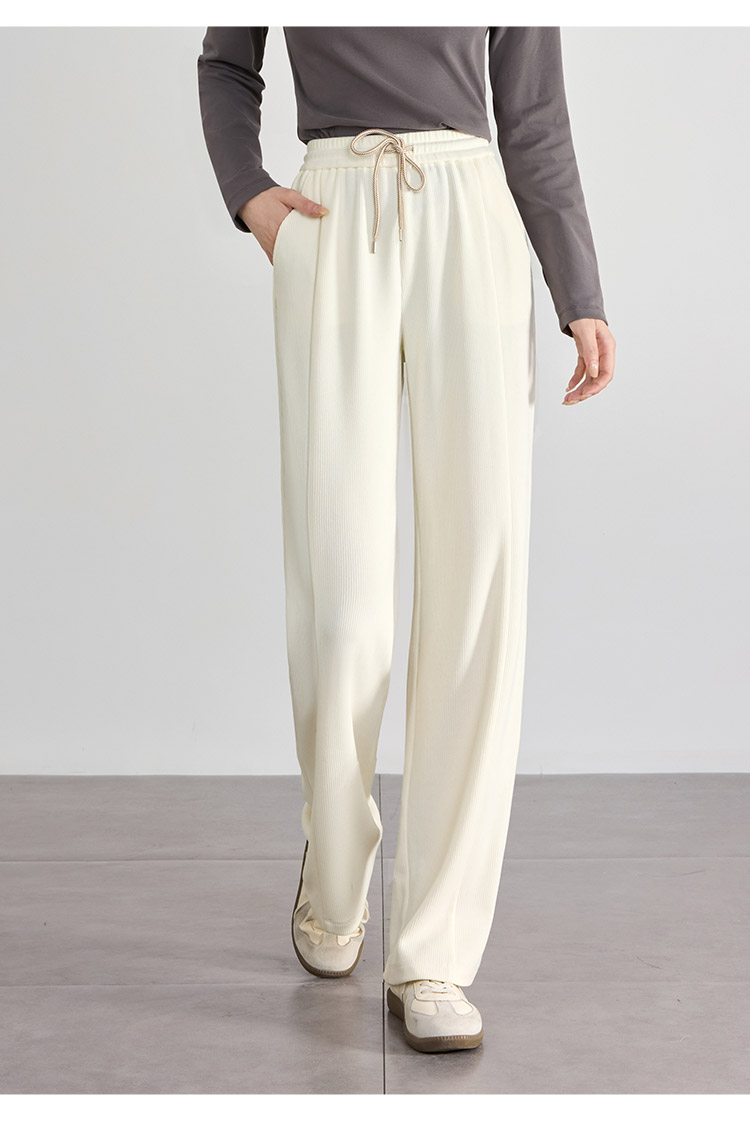 【129选3件,不退换】熙世界白色窄版直筒阔腿裤高腰2025秋季新款垂感休闲长裤糯米裤