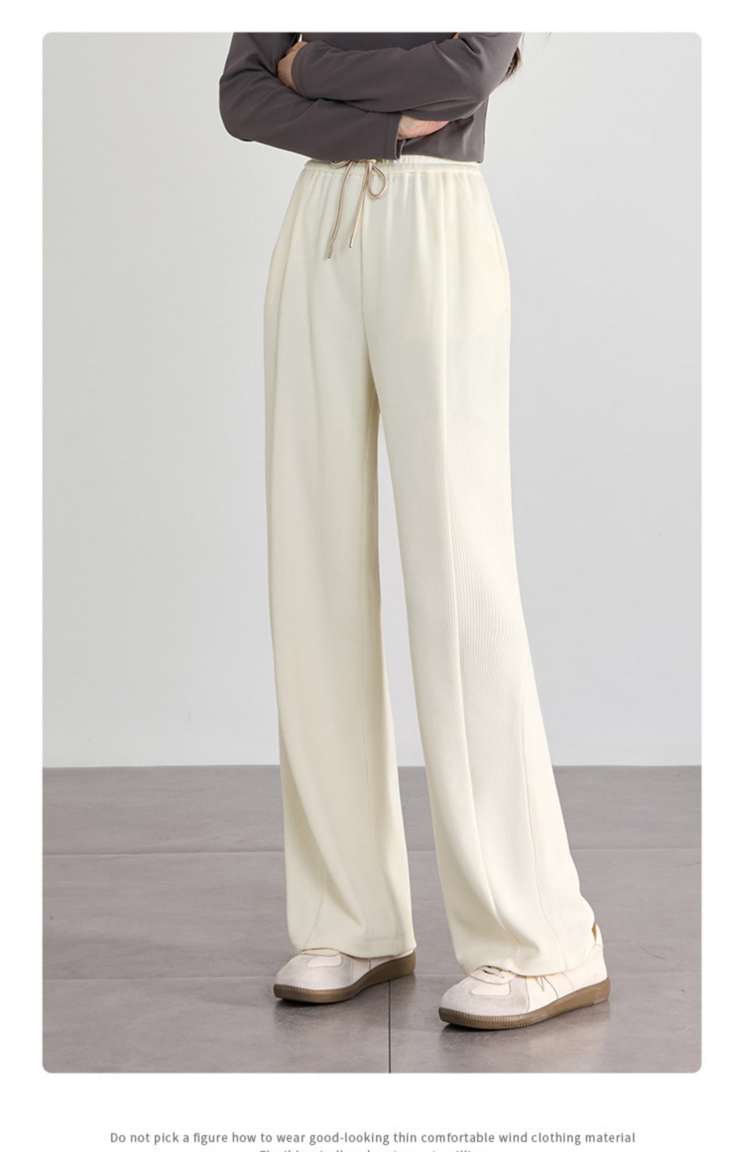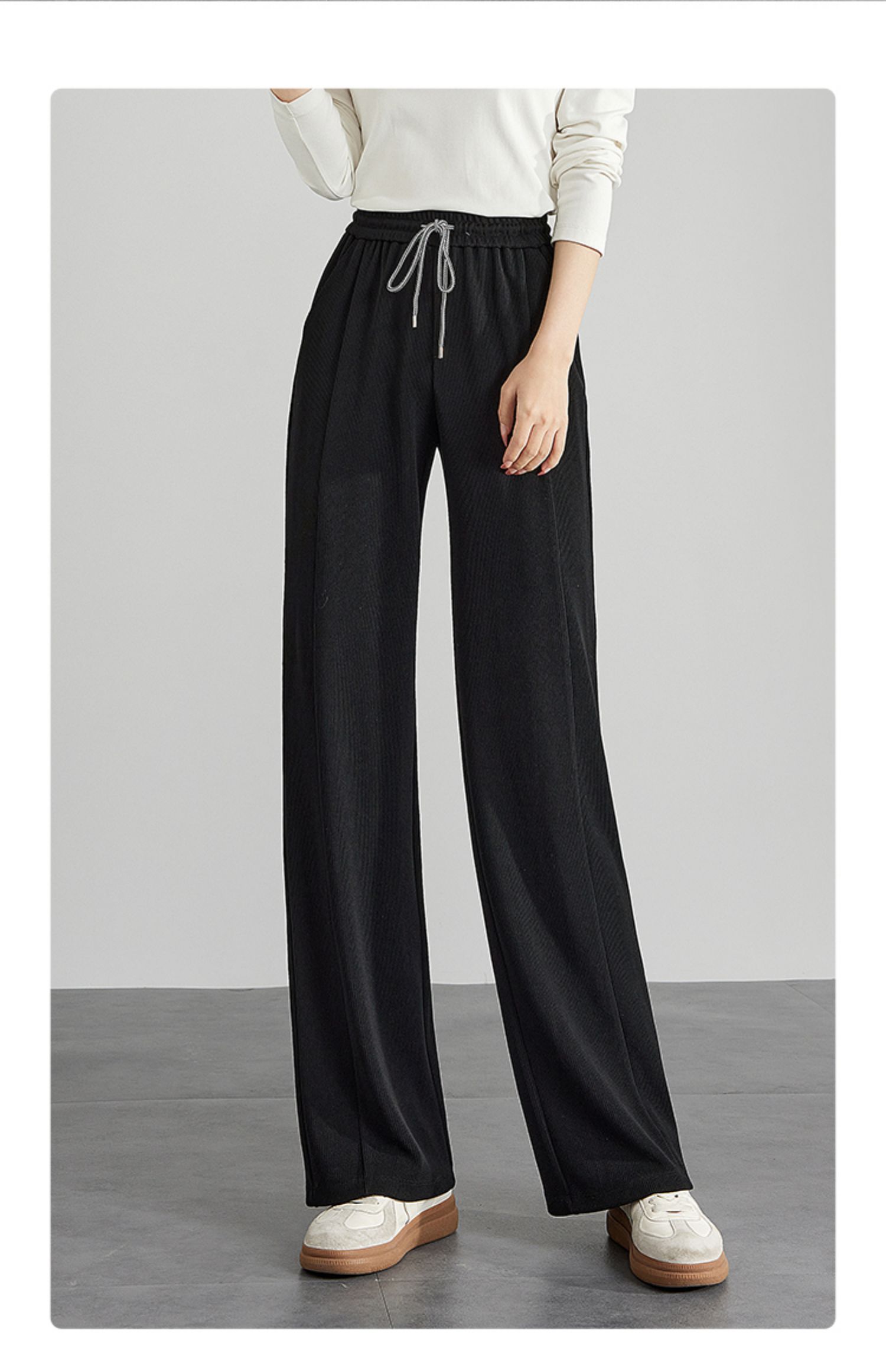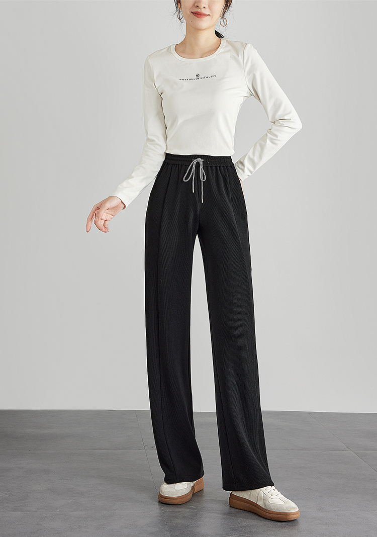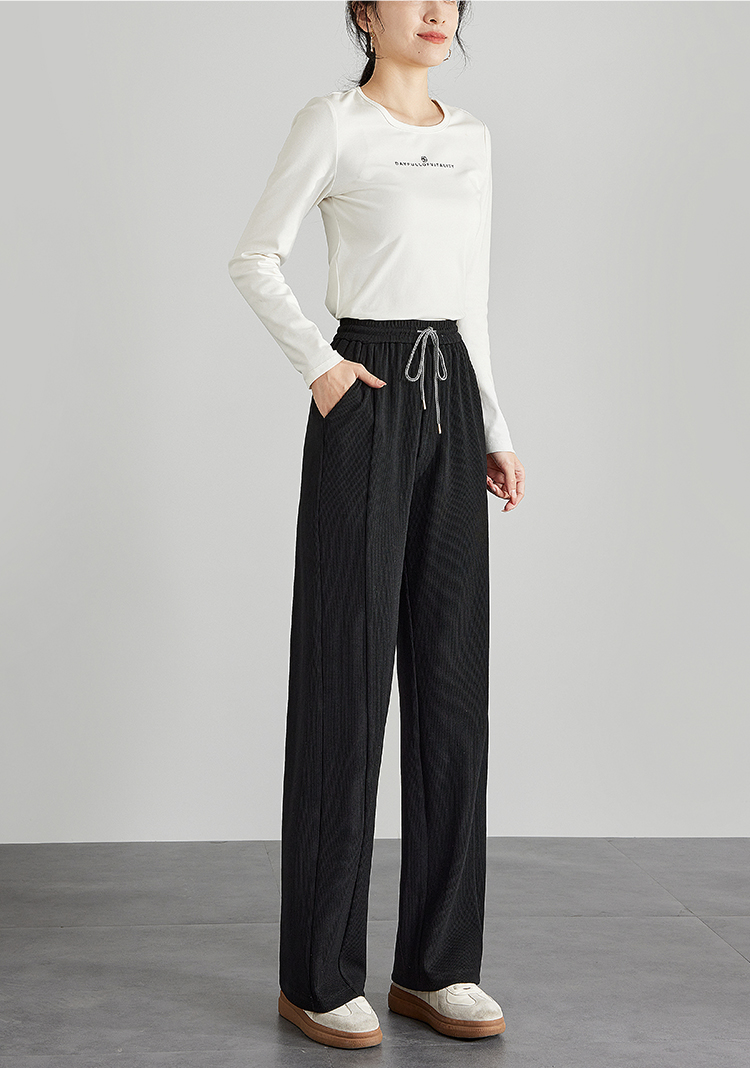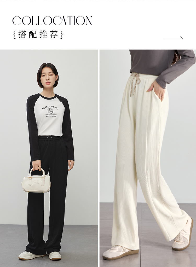 【129选3件,不退换】熙世界白色窄版直筒阔腿裤高腰2025秋季新款垂感休闲长裤糯米裤