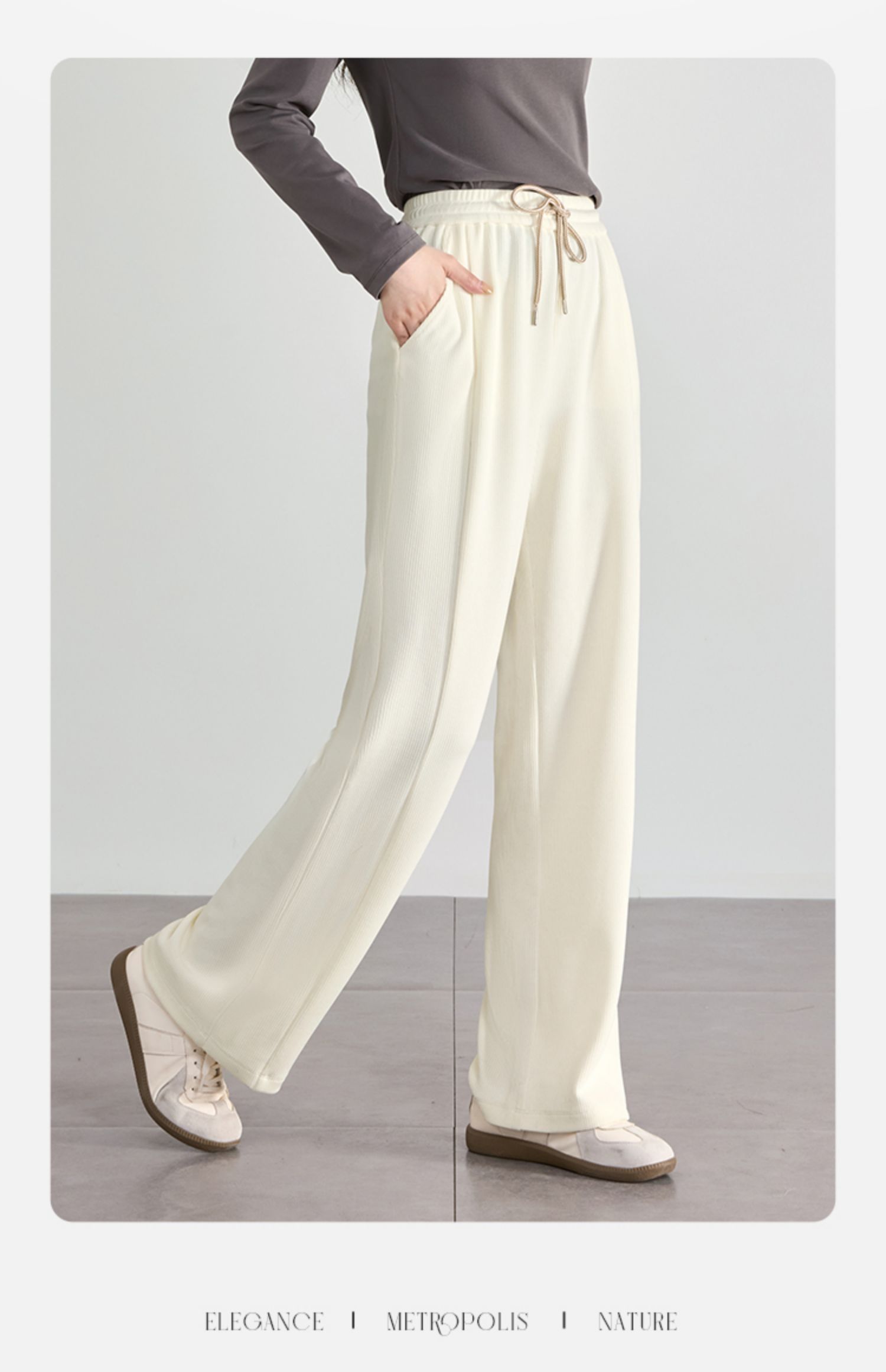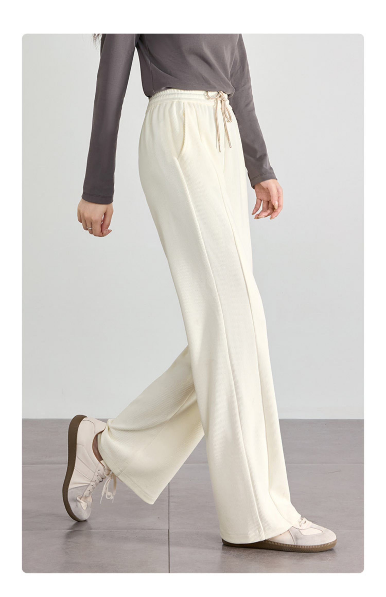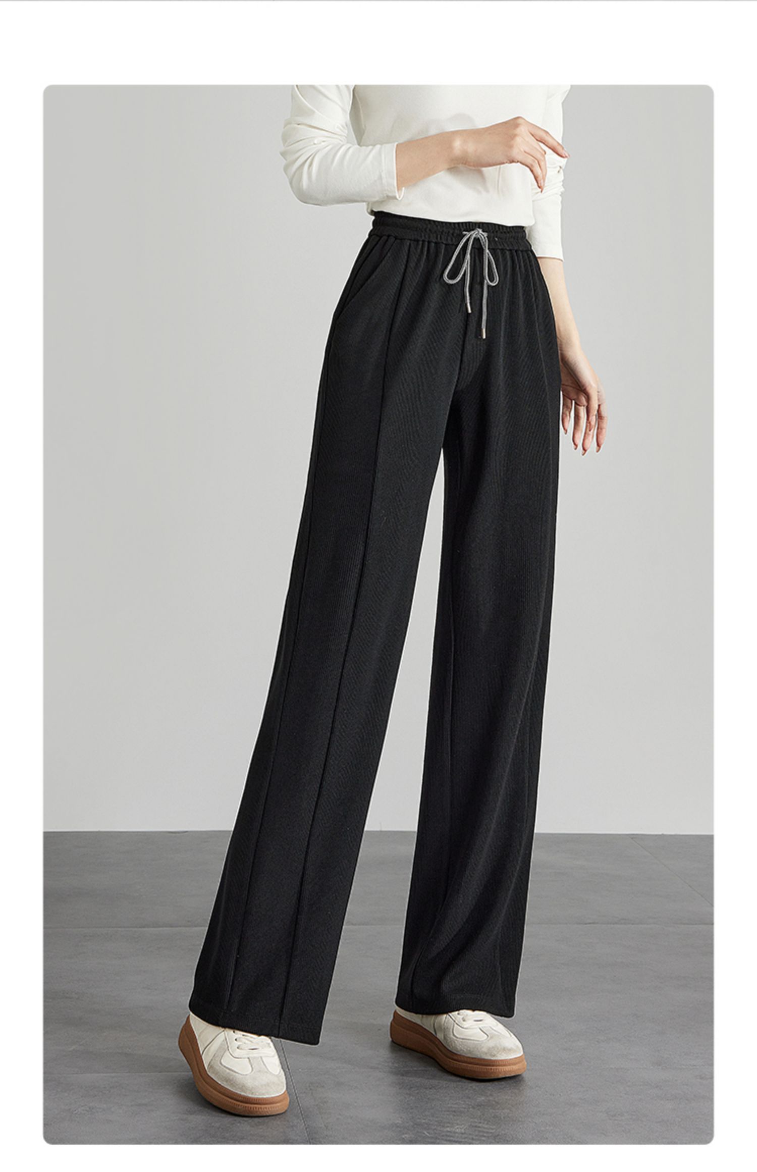 【129选3件,不退换】熙世界白色窄版直筒阔腿裤高腰2025秋季新款垂感休闲长裤糯米裤