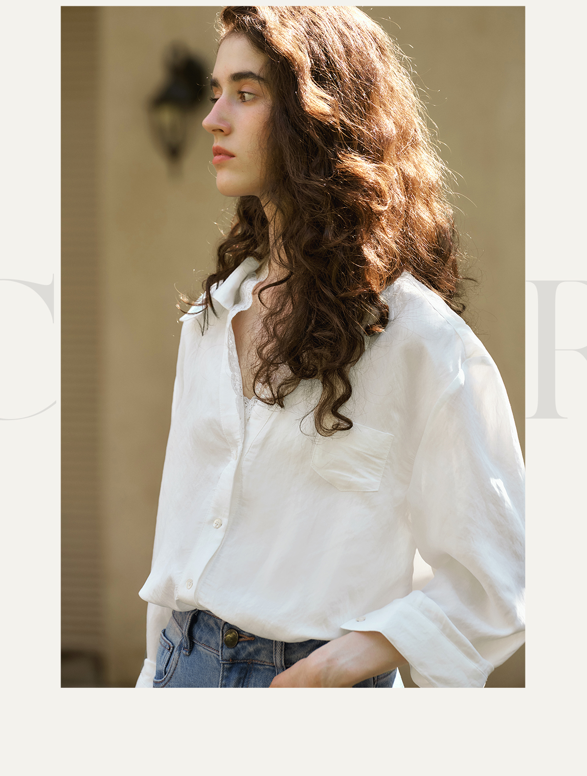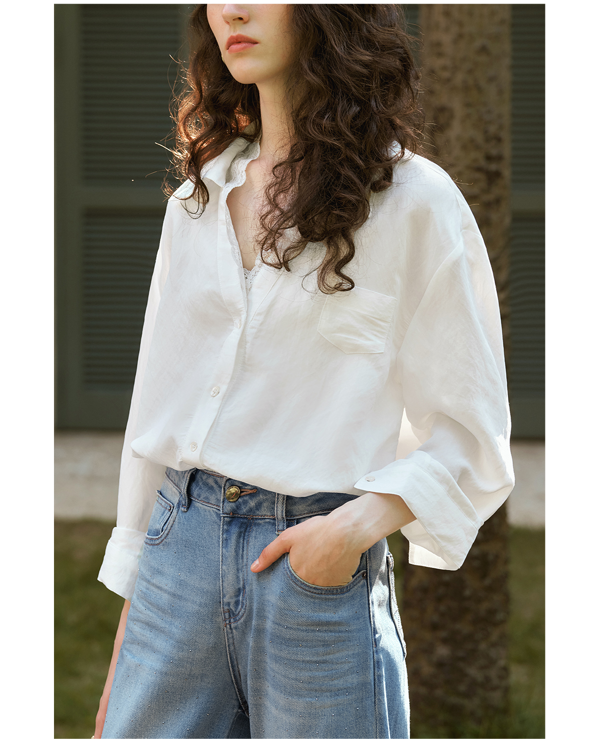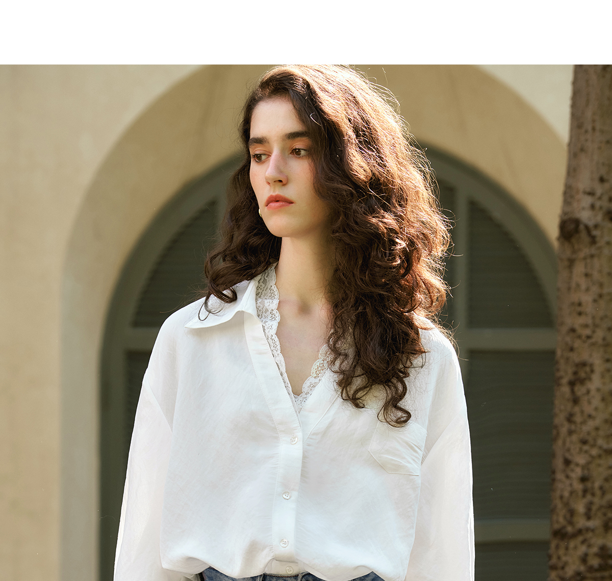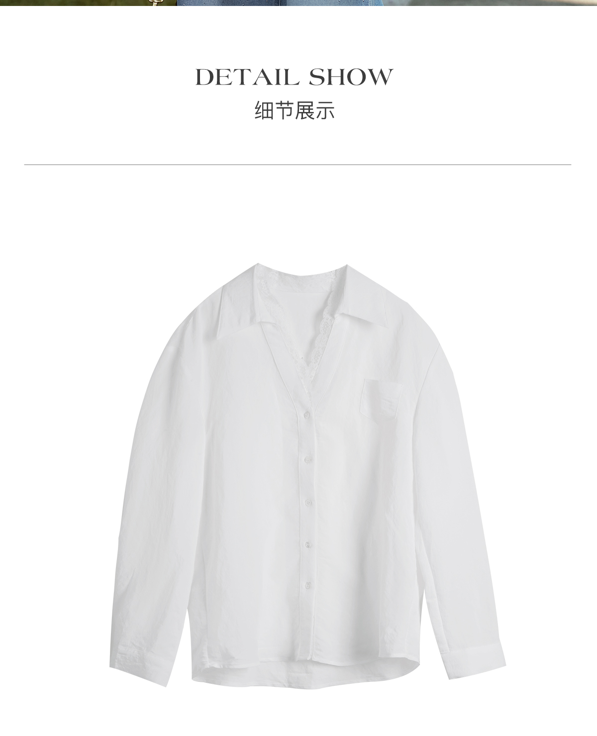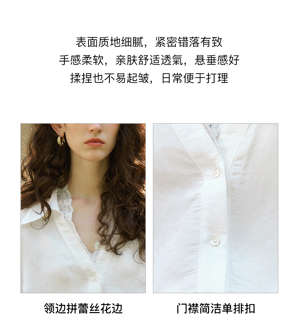 OLrain欧芮儿法式白色衬衫女秋季2024新款百搭设计感双层蕾丝衬衣