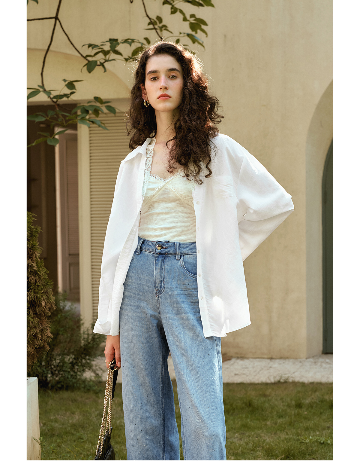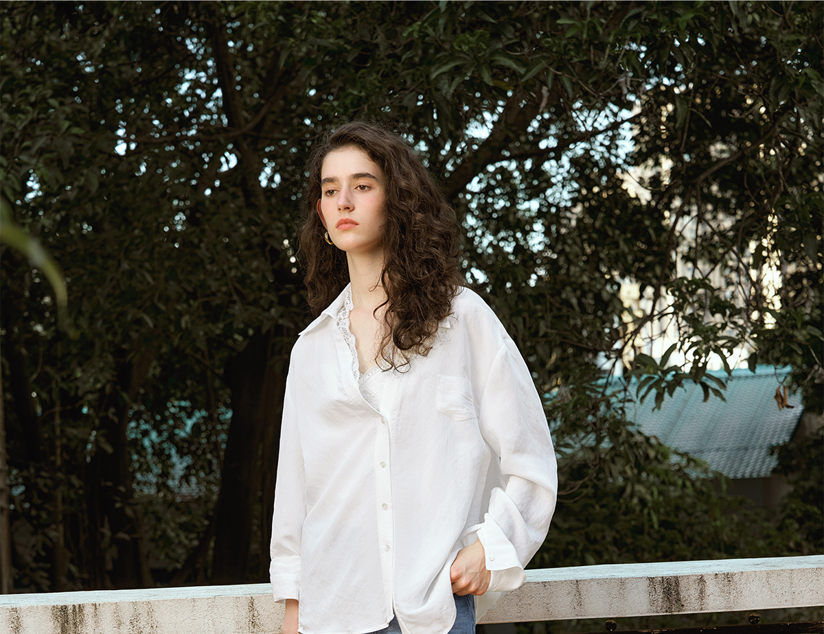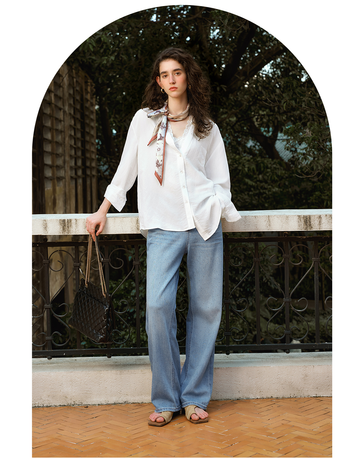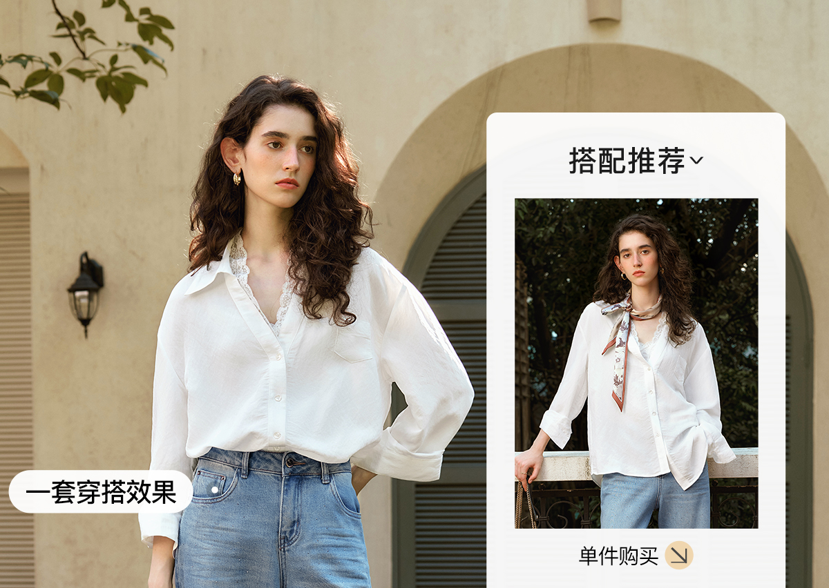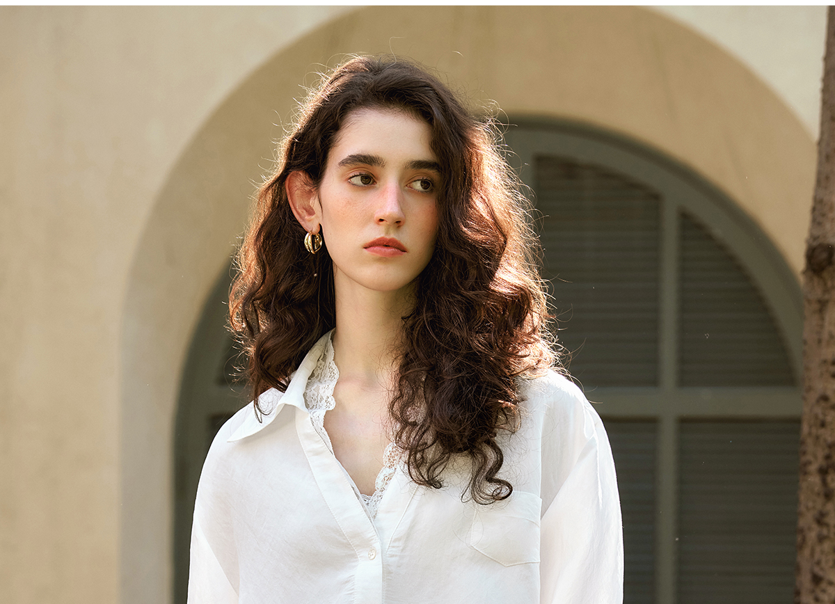 OLrain欧芮儿法式白色衬衫女秋季2024新款百搭设计感双层蕾丝衬衣