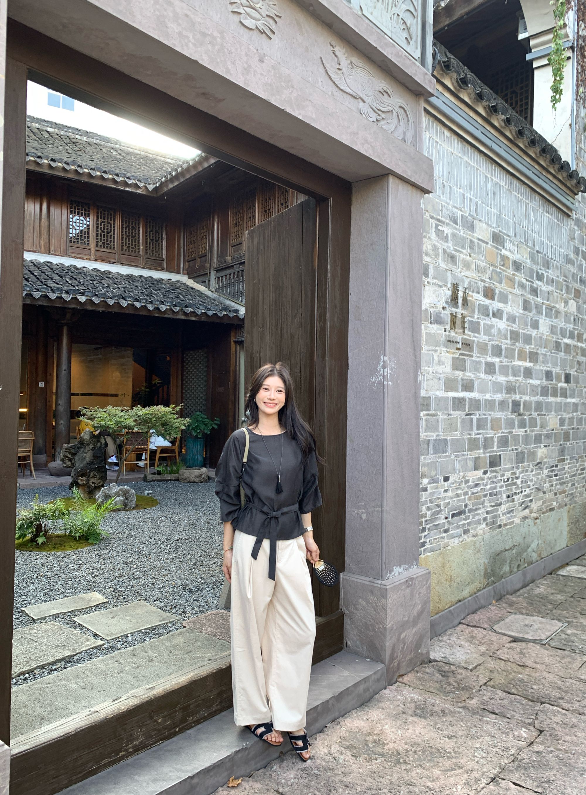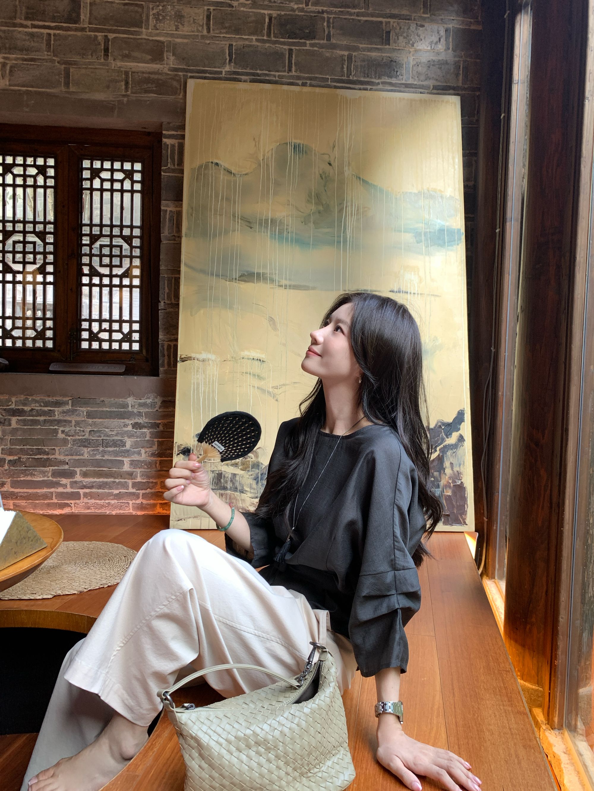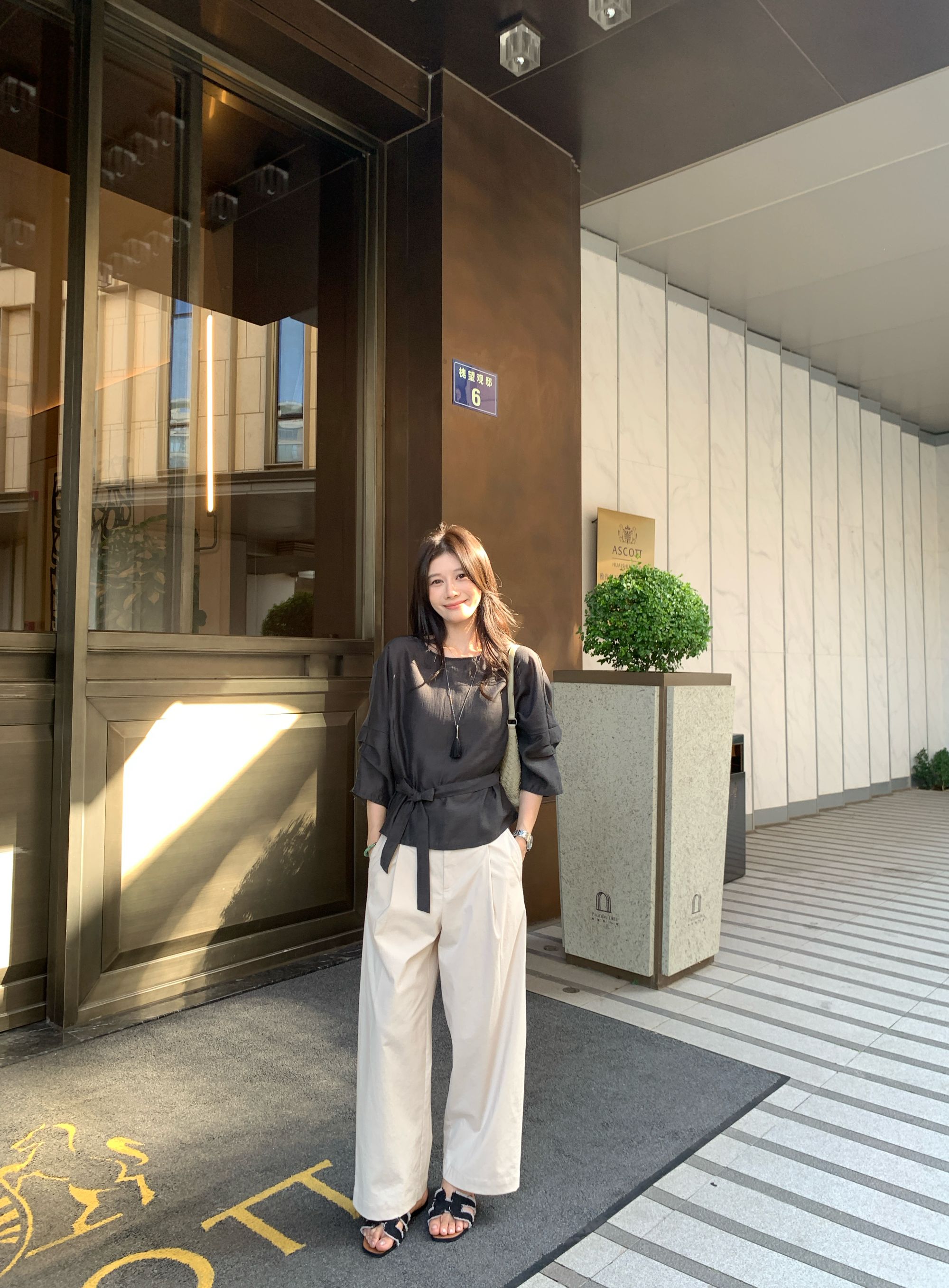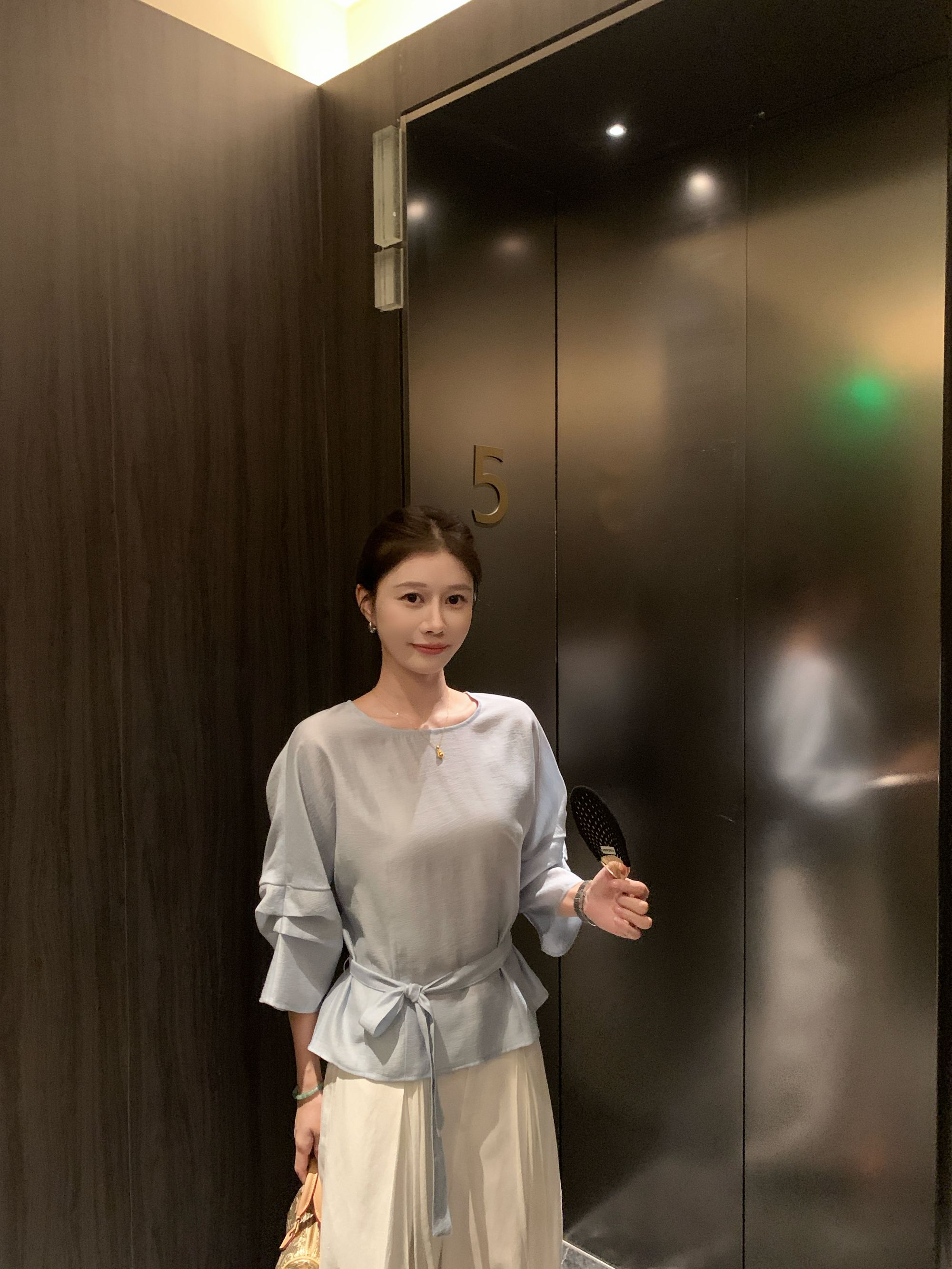 【冰蓝珠光】醋酸亚麻设计款显瘦收腰七分袖宽松百搭休闲上衣