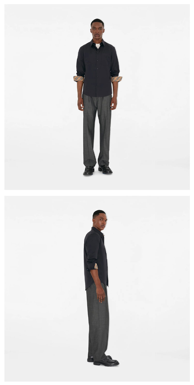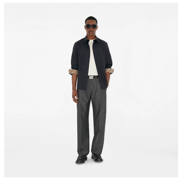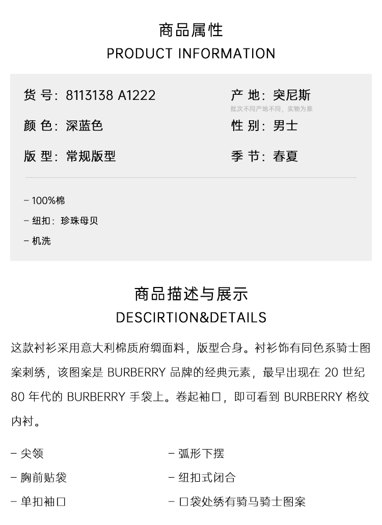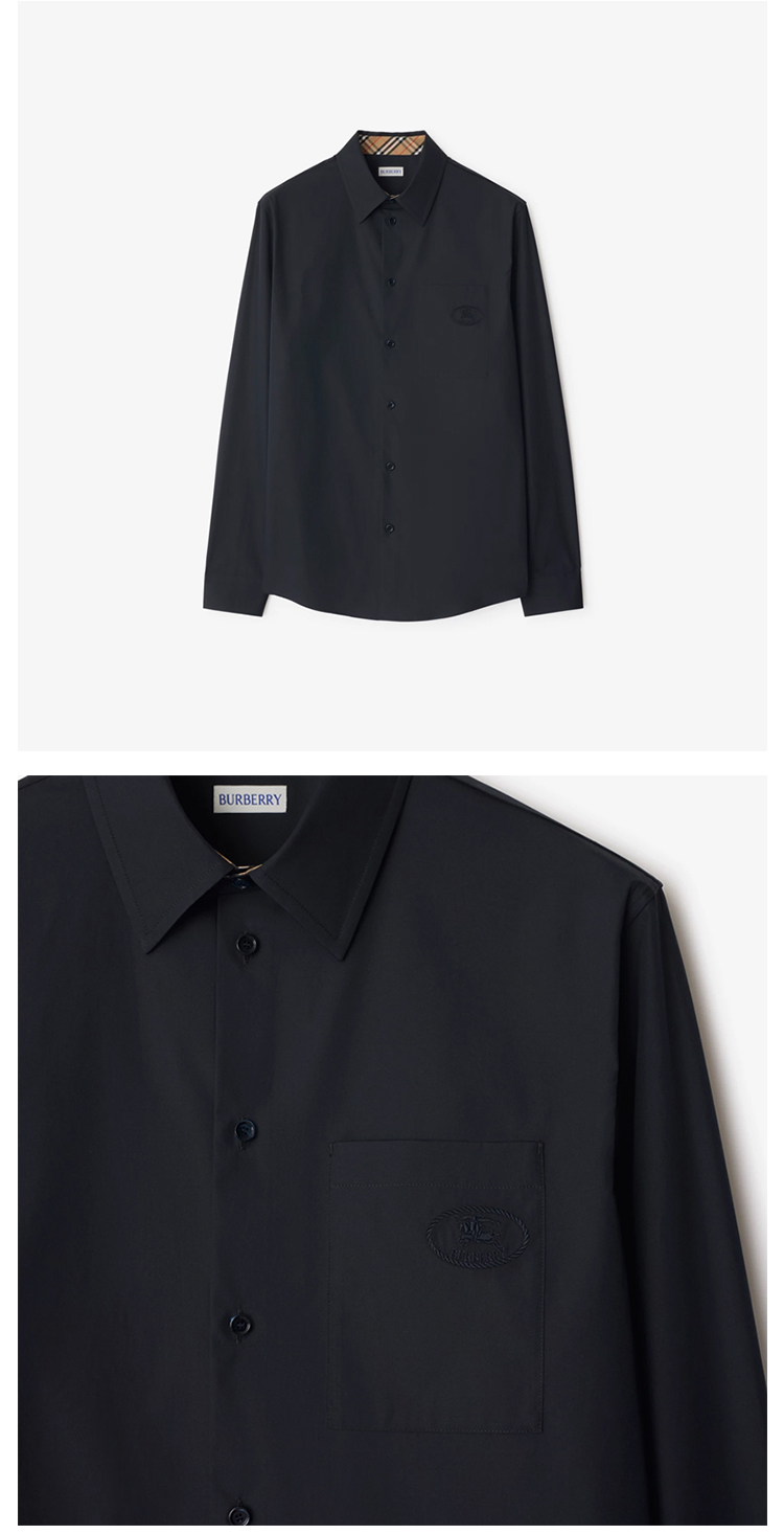 BURBERRY 巴宝莉 男士马术骑士徽标印章刺绣棉质长袖衬衫 深蓝色 8113138 A1222