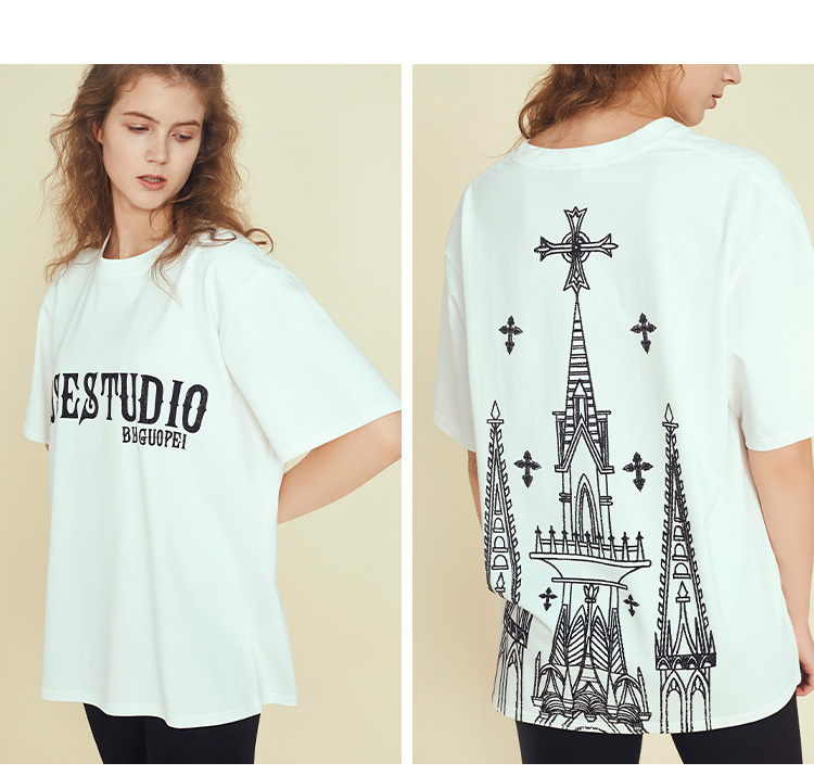 RSG郭培成衣品牌原创水钻镶饰oversize建筑设计夏季新款T恤