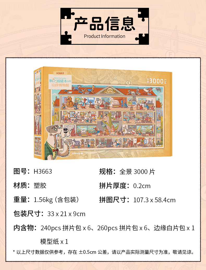 【折扣商品 不退不换】3000片 平面塑料拼图 H3663 全景长版拼图-Nikola Kucharska-狗之城绘本系列-奇妙博物馆