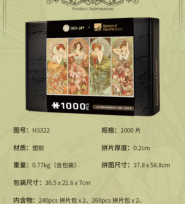 1000片 平面塑料拼图 H3322 波士顿美术博物馆系列-穆夏-花漾年华