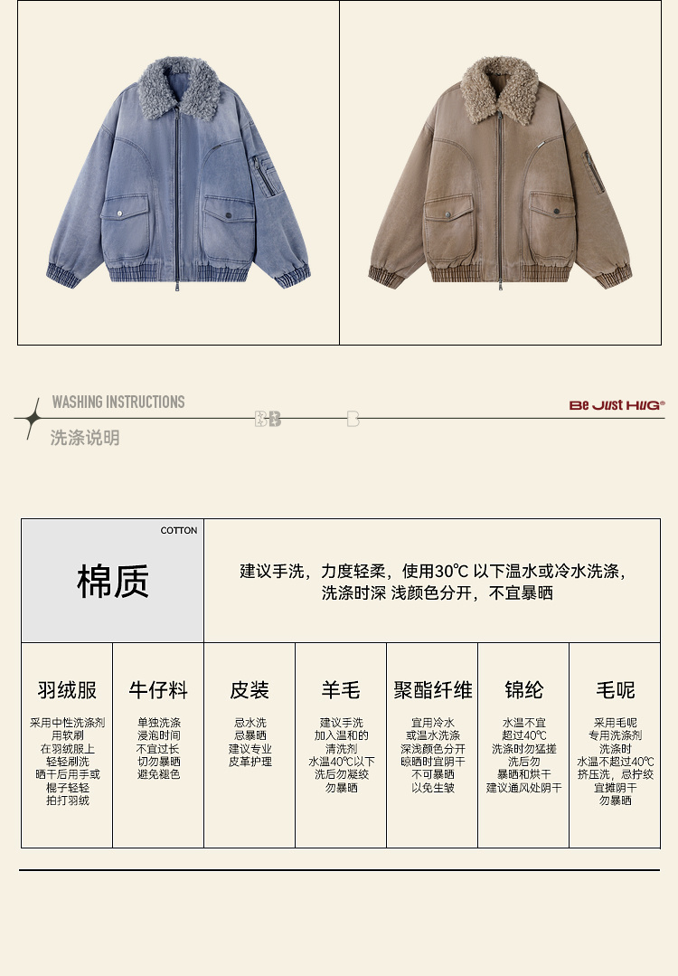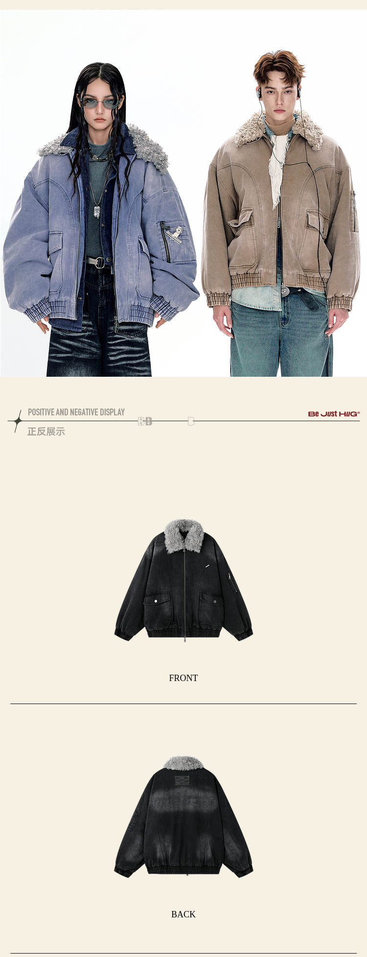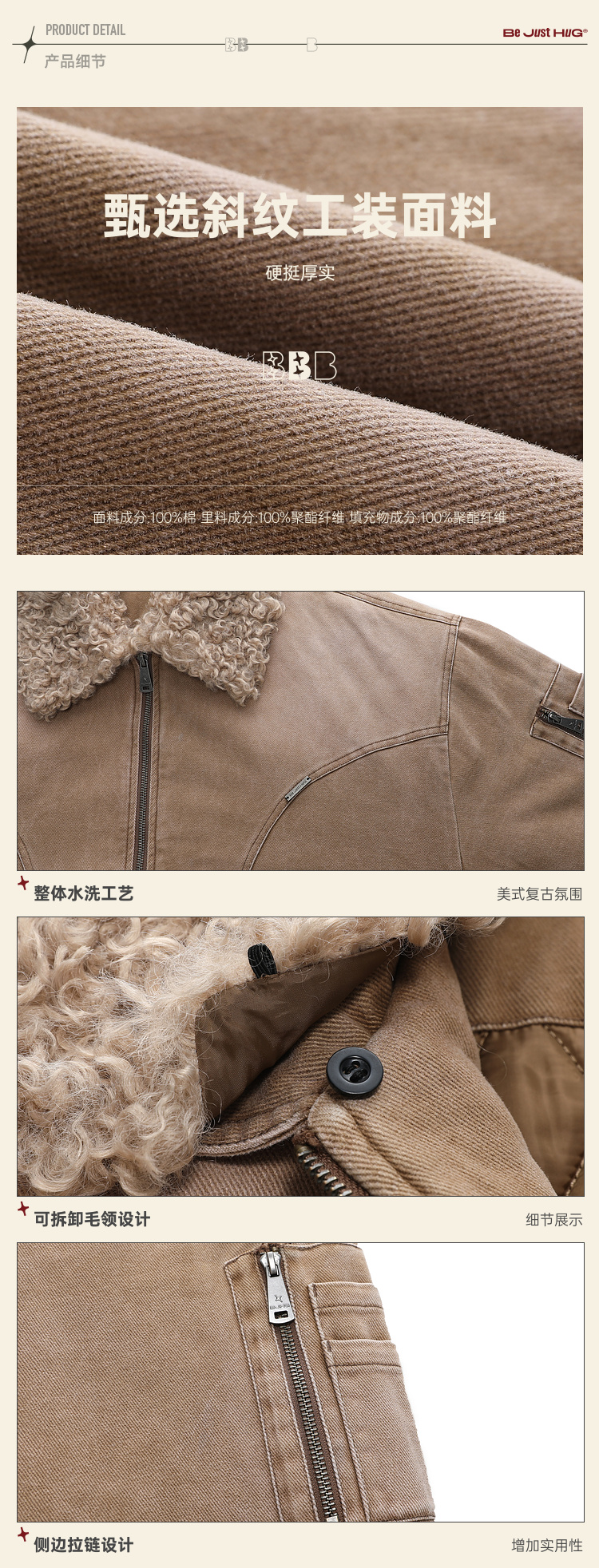 BJHG不计后果复古做旧工装棉服男款秋季痞帅可拆卸防寒棉衣外套女