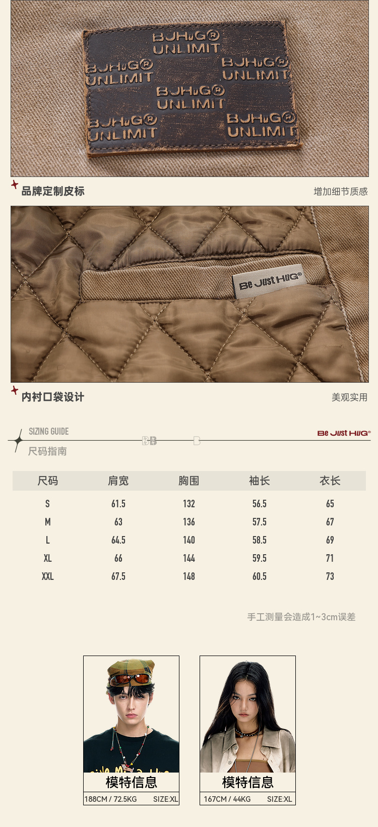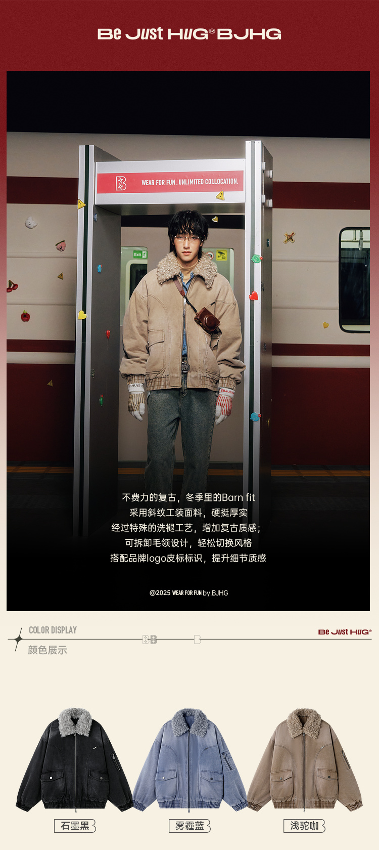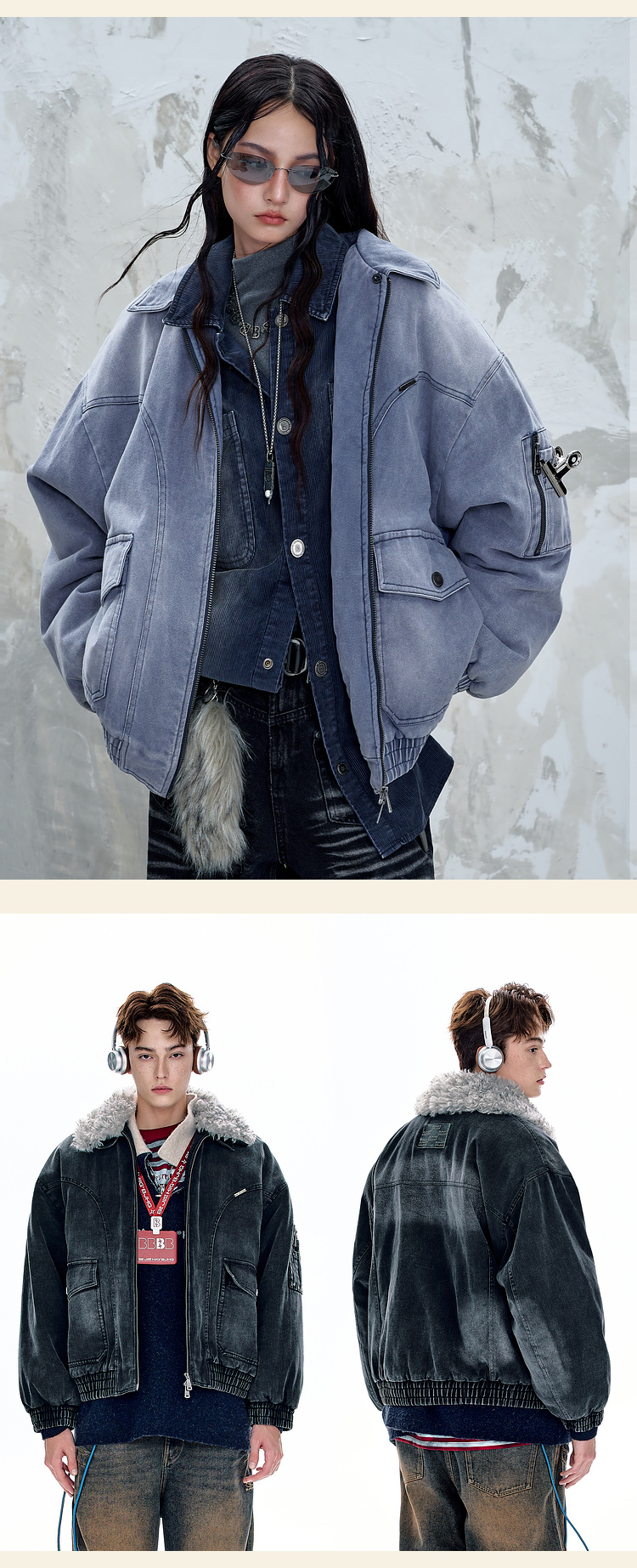 BJHG不计后果复古做旧工装棉服男款秋季痞帅可拆卸防寒棉衣外套女