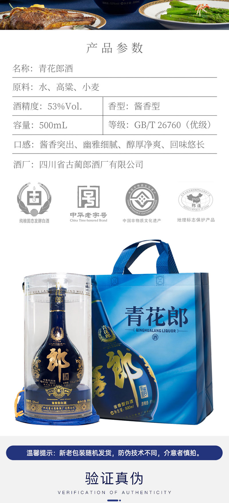 郎酒 53度青花郎酒(2020版)500ml单支 瓶装