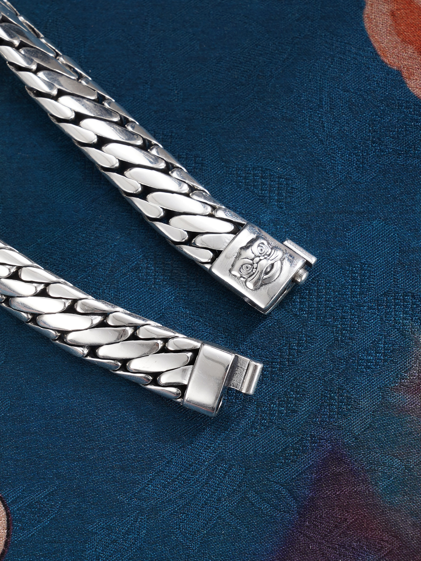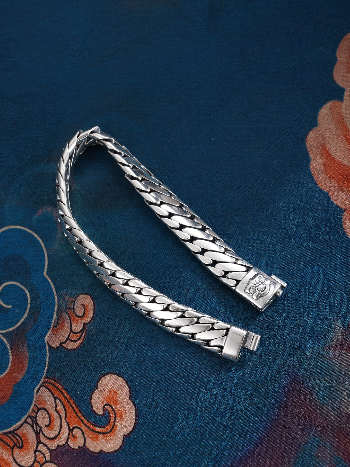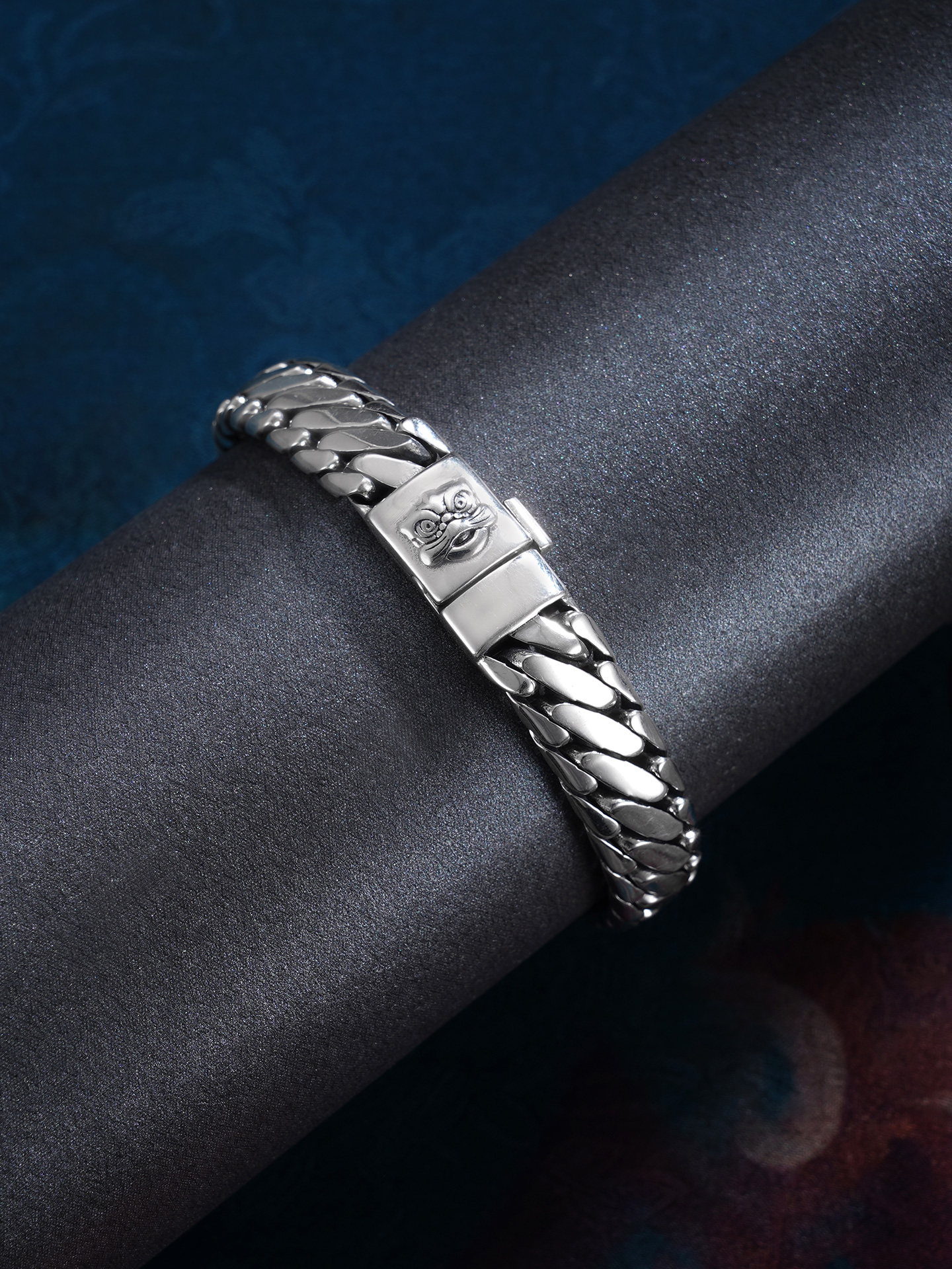 【寓意】:纯银男士手链,衔接之处錾刻醒狮纹样,象征无畏魄力,亦寓意所向披靡,前程可期。
