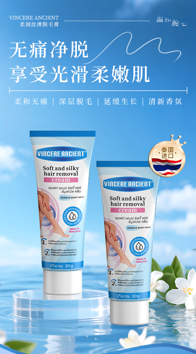 泰国原装进口!VINCERE ANCIENT丝滑脱毛膏(植萃添加、温和脱毛)