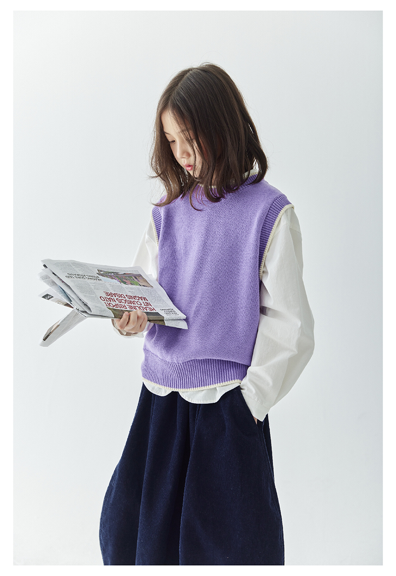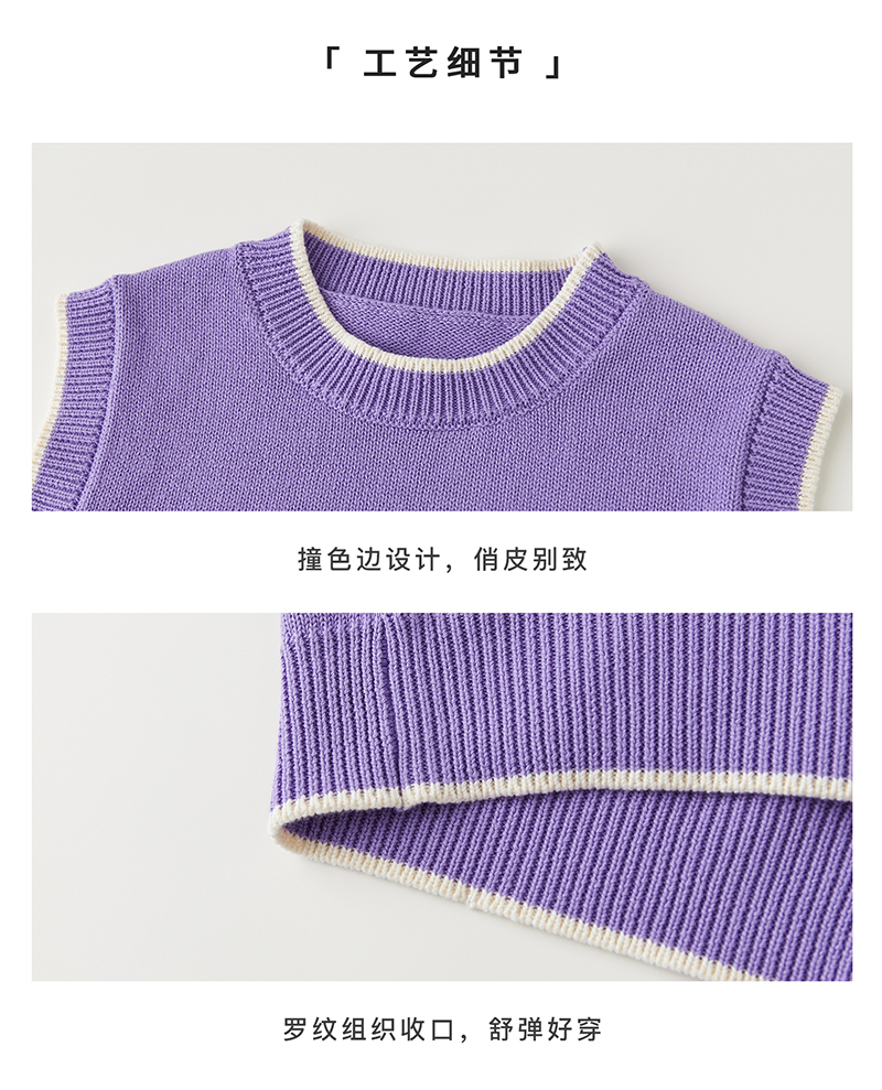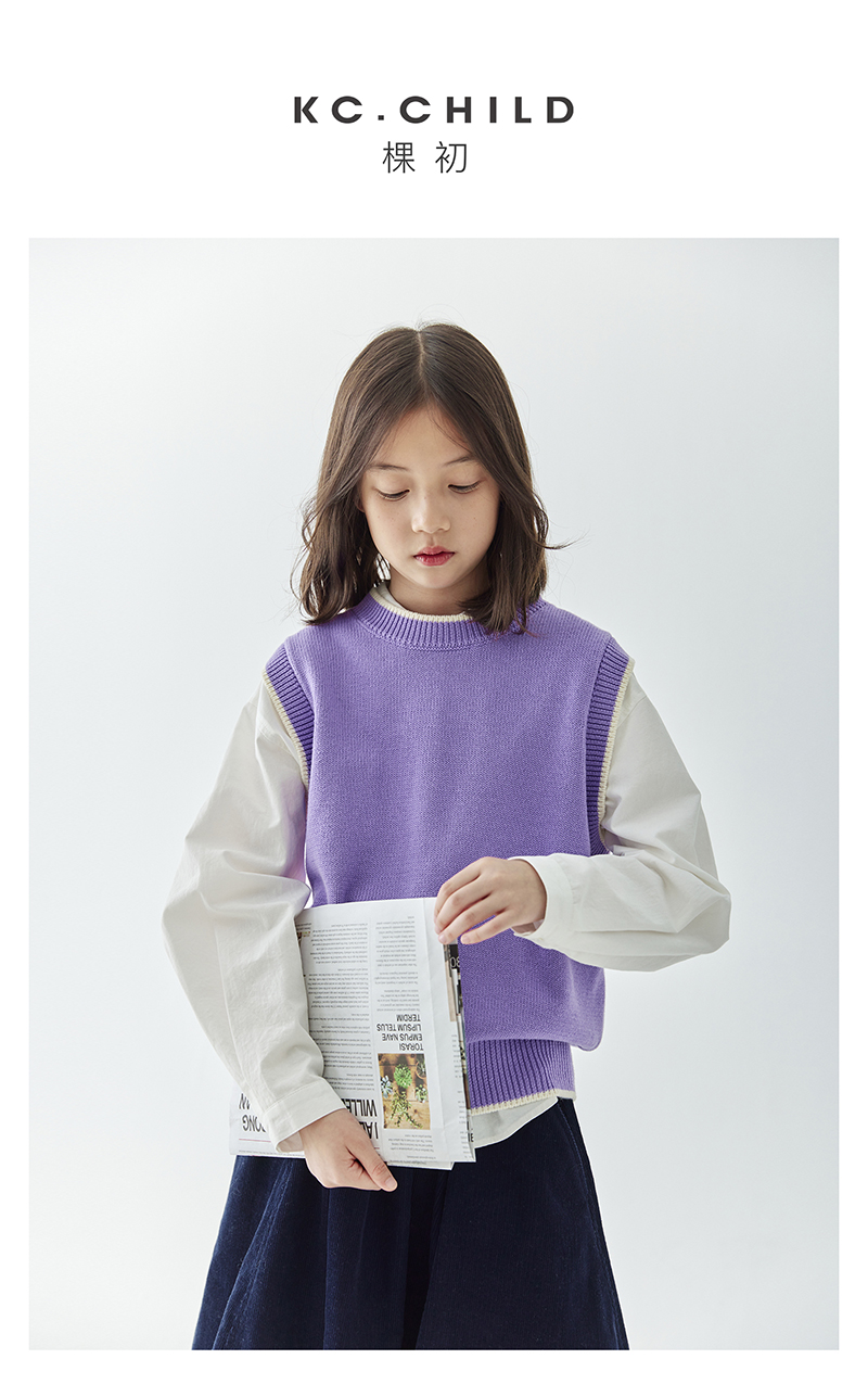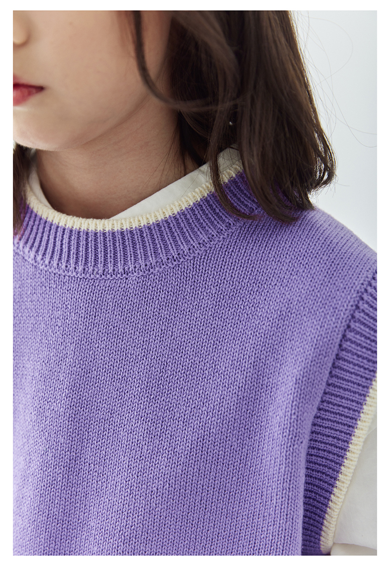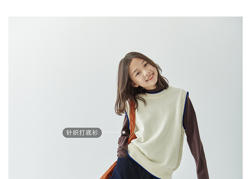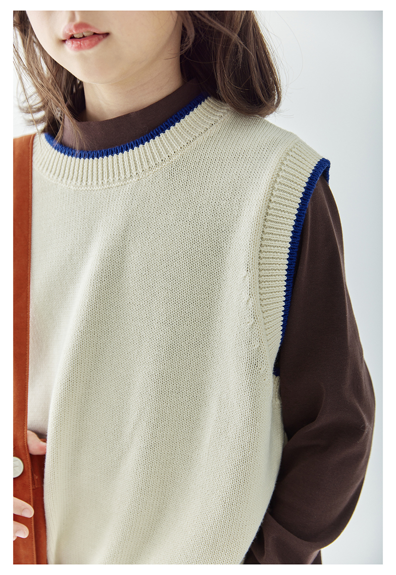 *【6折清仓】棵初新品秋季童装无袖针织背心女童叠穿简约休闲撞色马甲毛衣