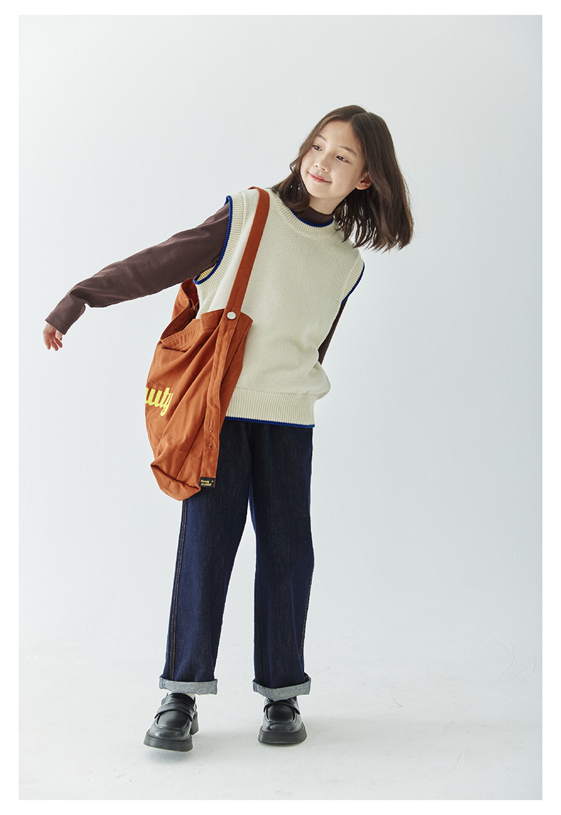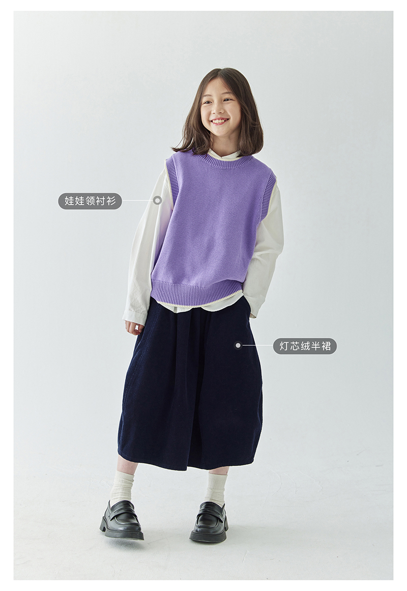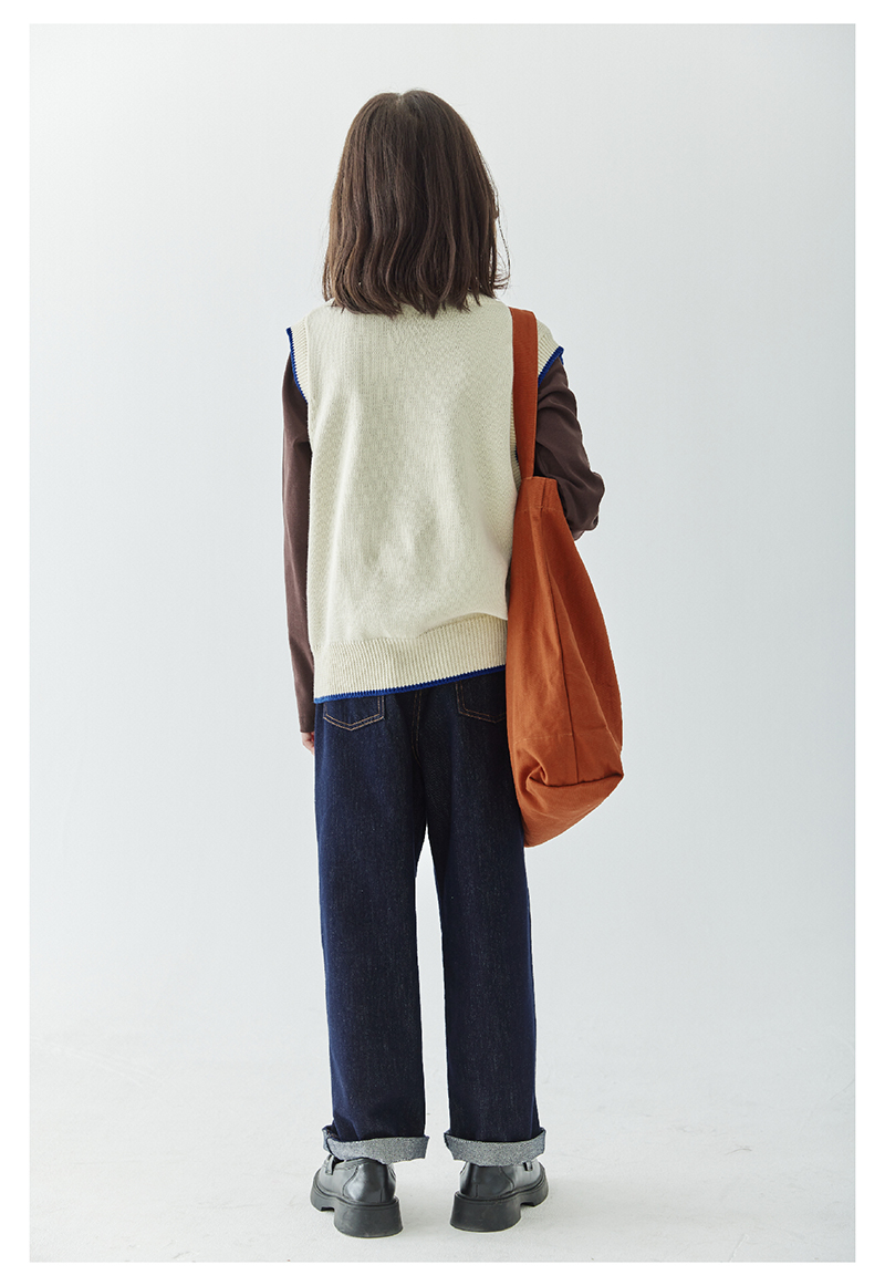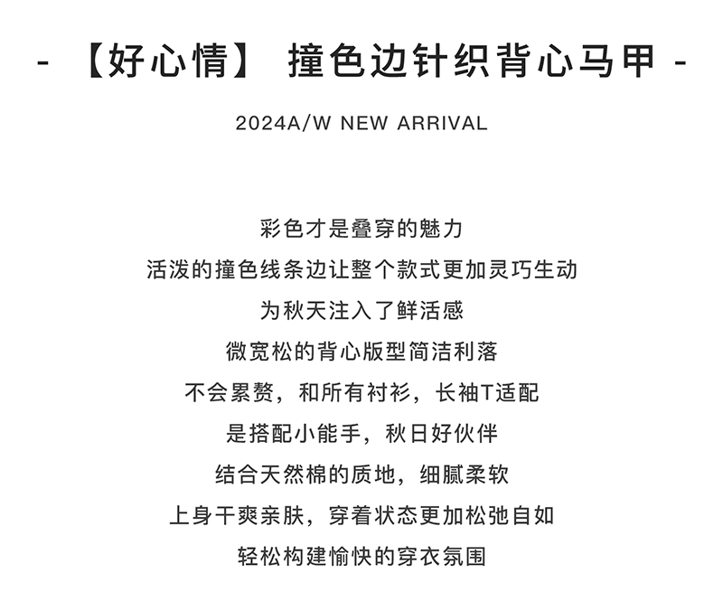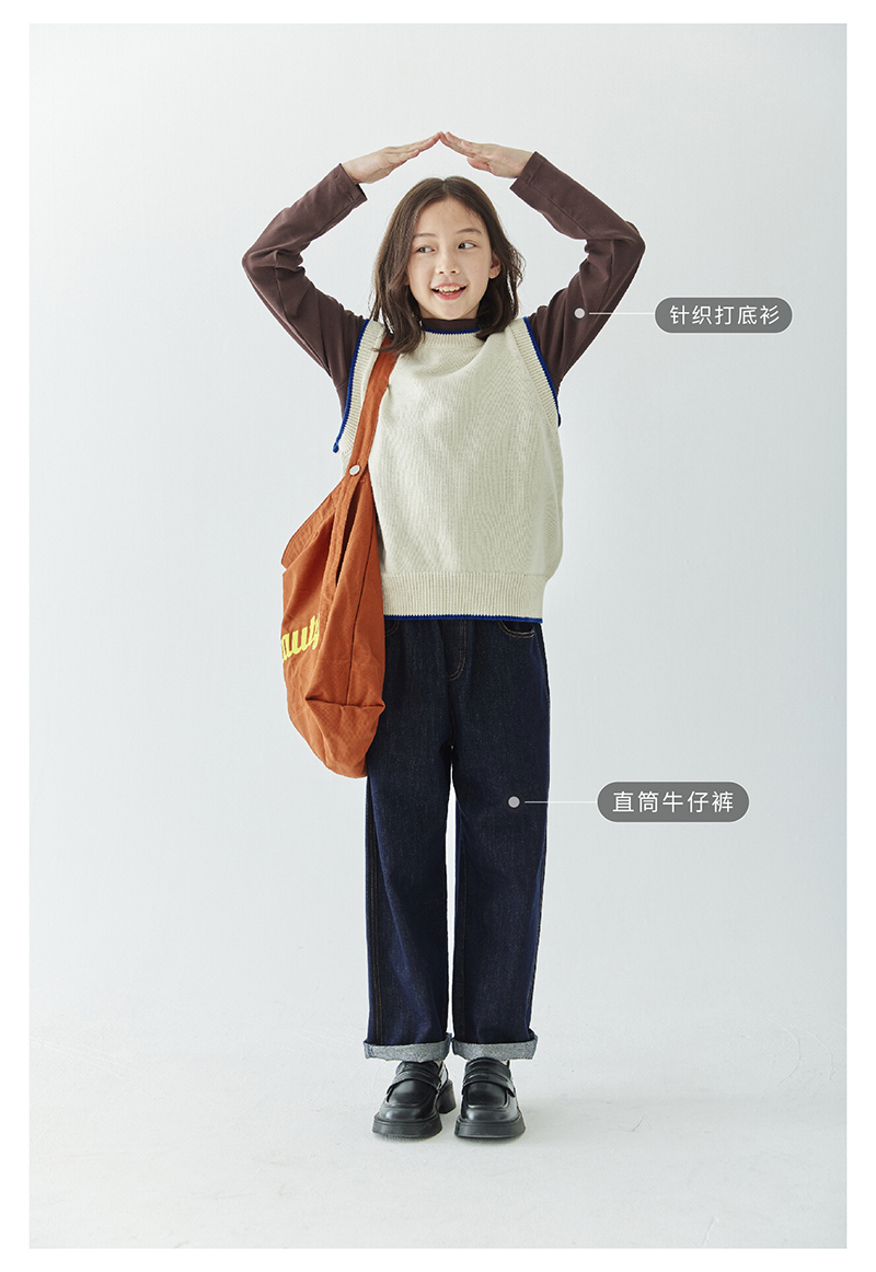 *【6折清仓】棵初新品秋季童装无袖针织背心女童叠穿简约休闲撞色马甲毛衣