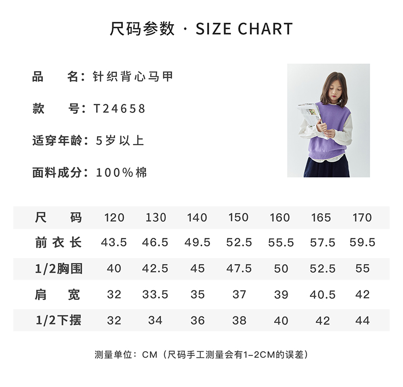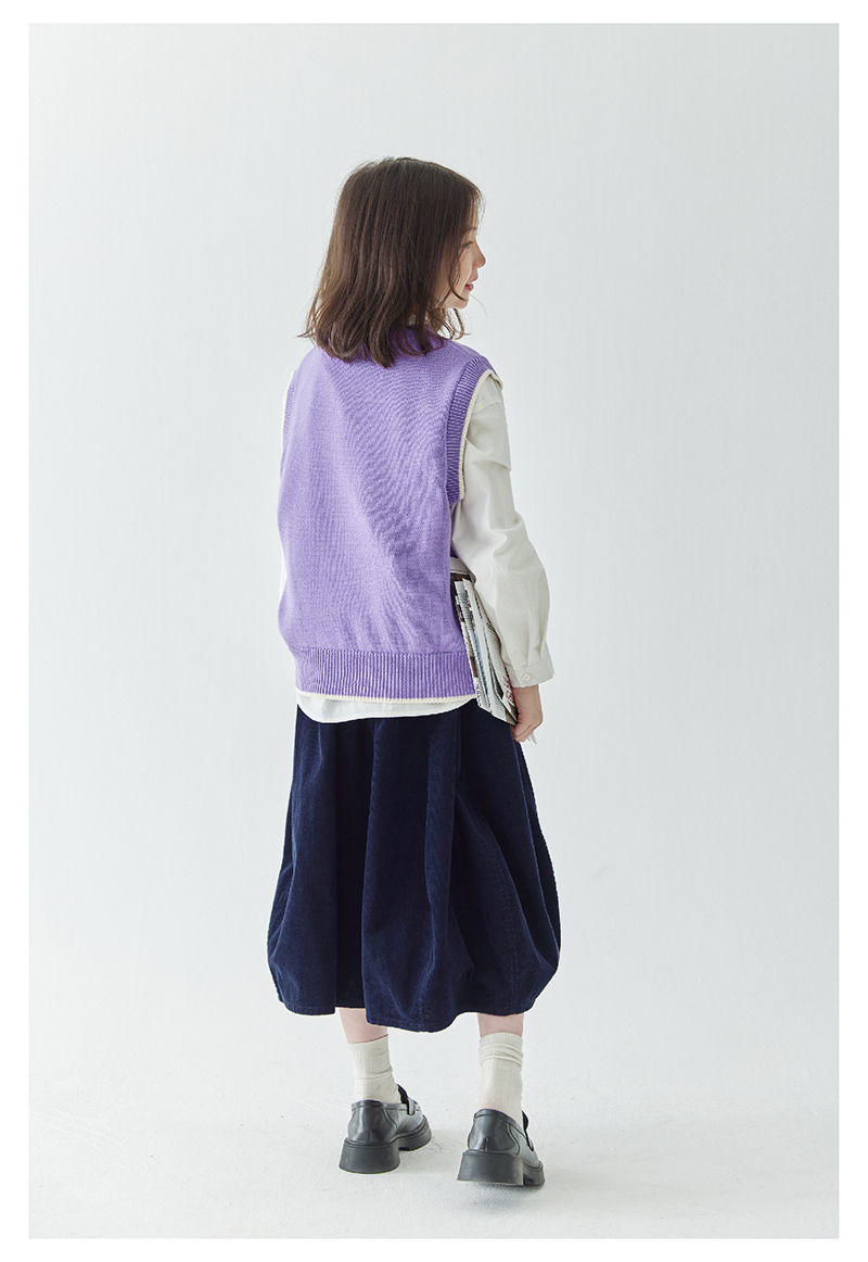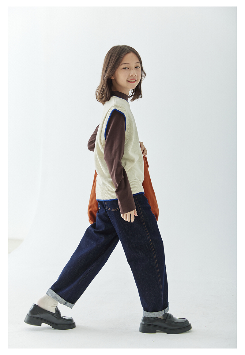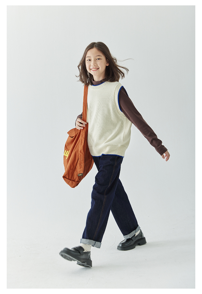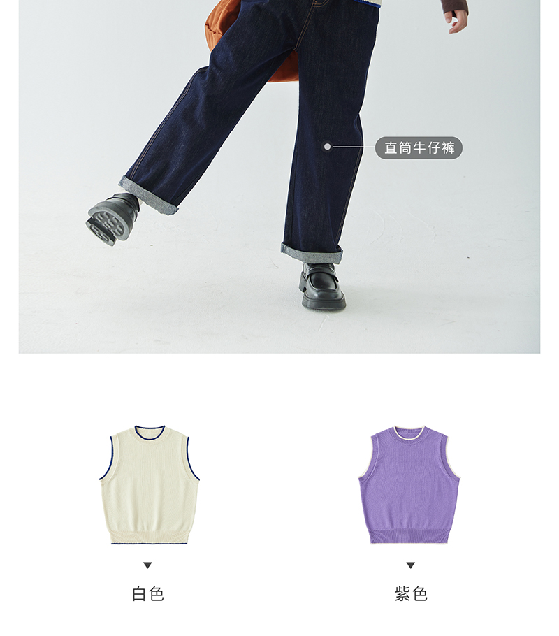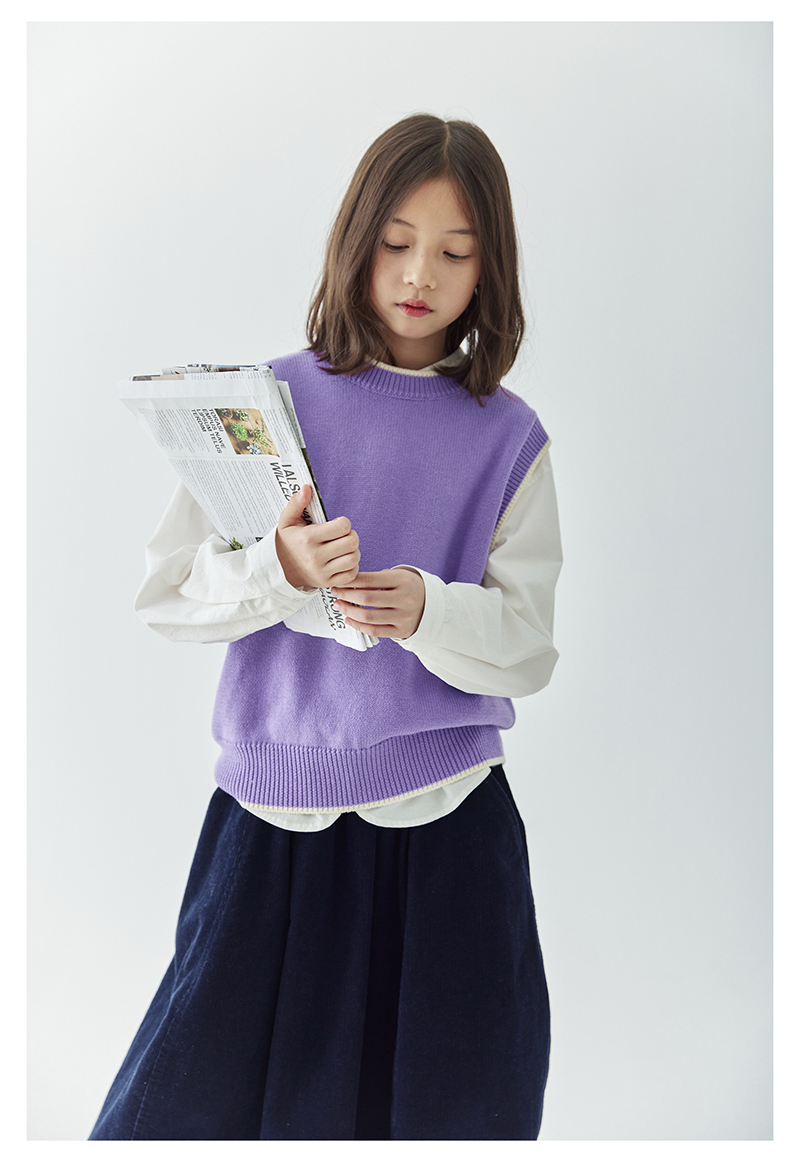 *【6折清仓】棵初新品秋季童装无袖针织背心女童叠穿简约休闲撞色马甲毛衣