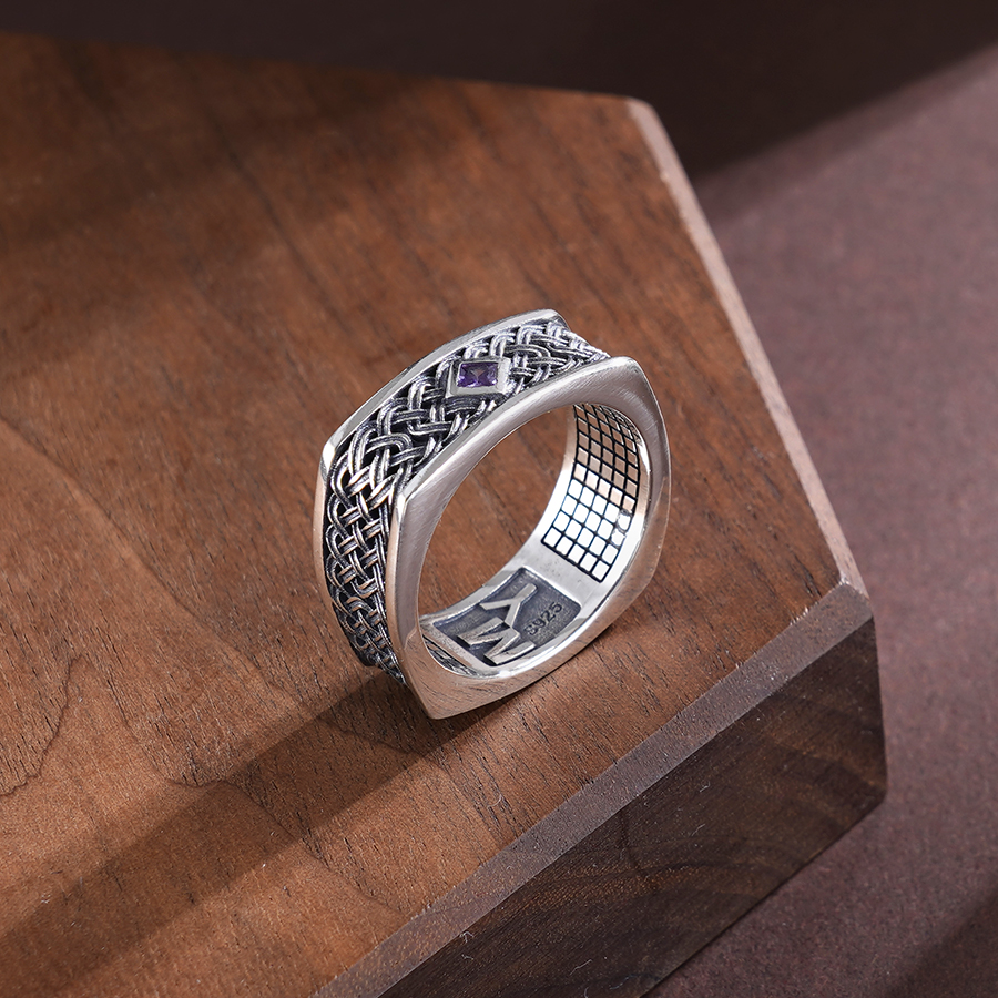 子佩集S925银【睿者风华】戒指【RJJDR617】纯银内圆外方闭口菱形交织仿古男士2504