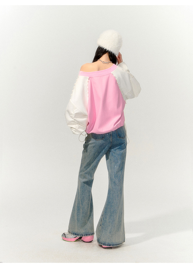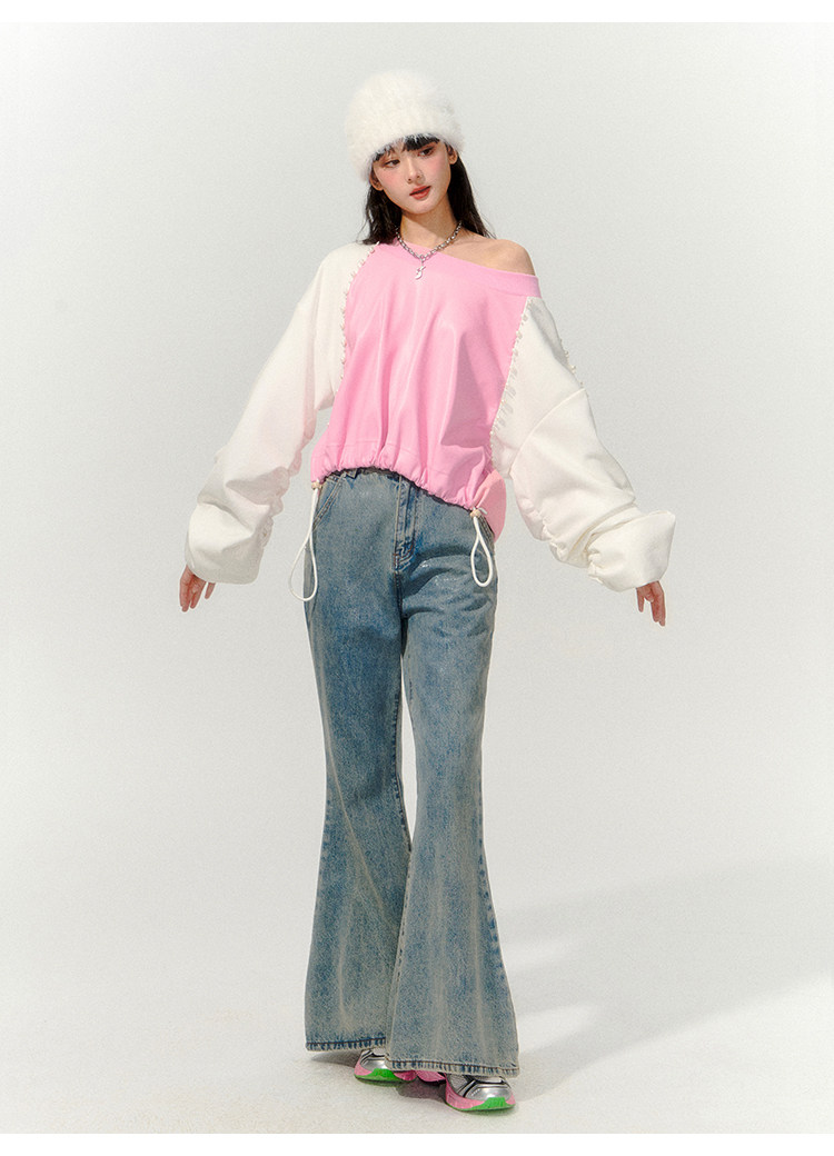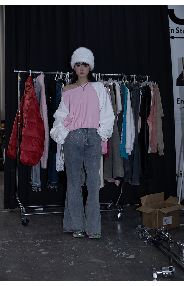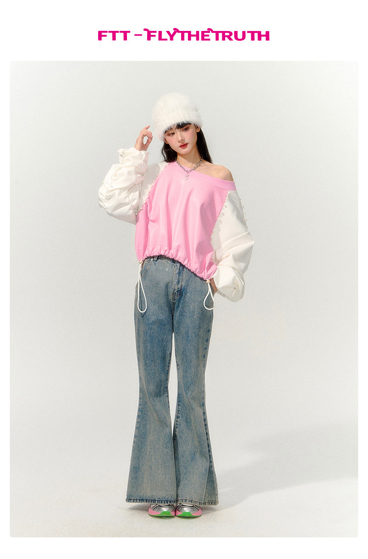 FTT Flythetruth 甜蜜暴击 美式撞色圆领卫衣女秋季百搭宽松上衣