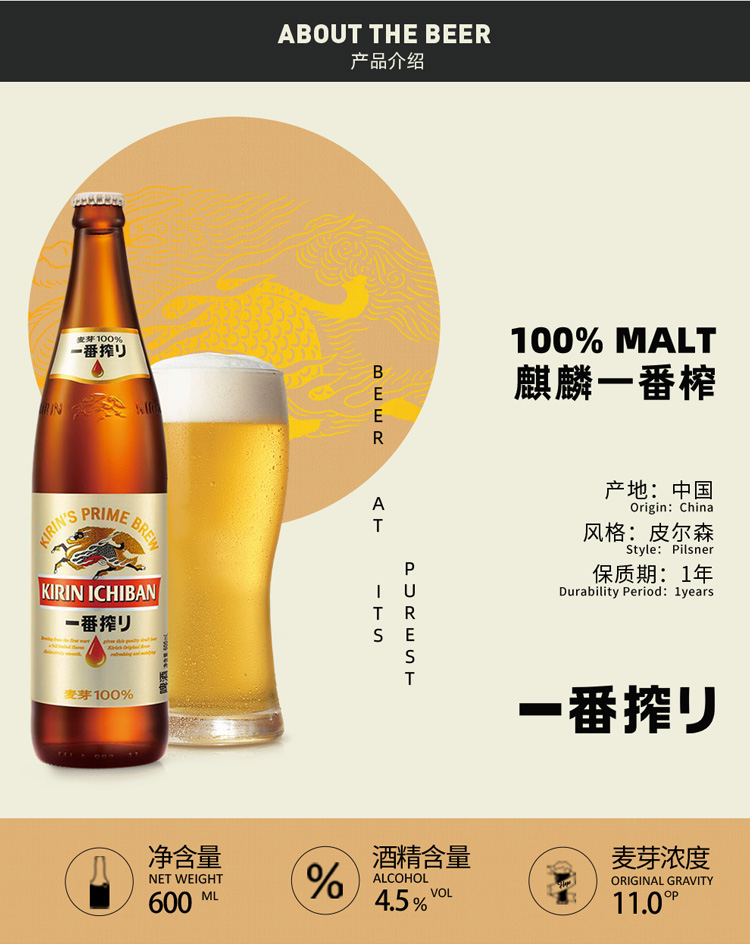 麒麟一番榨600ML啤酒(瓶装)